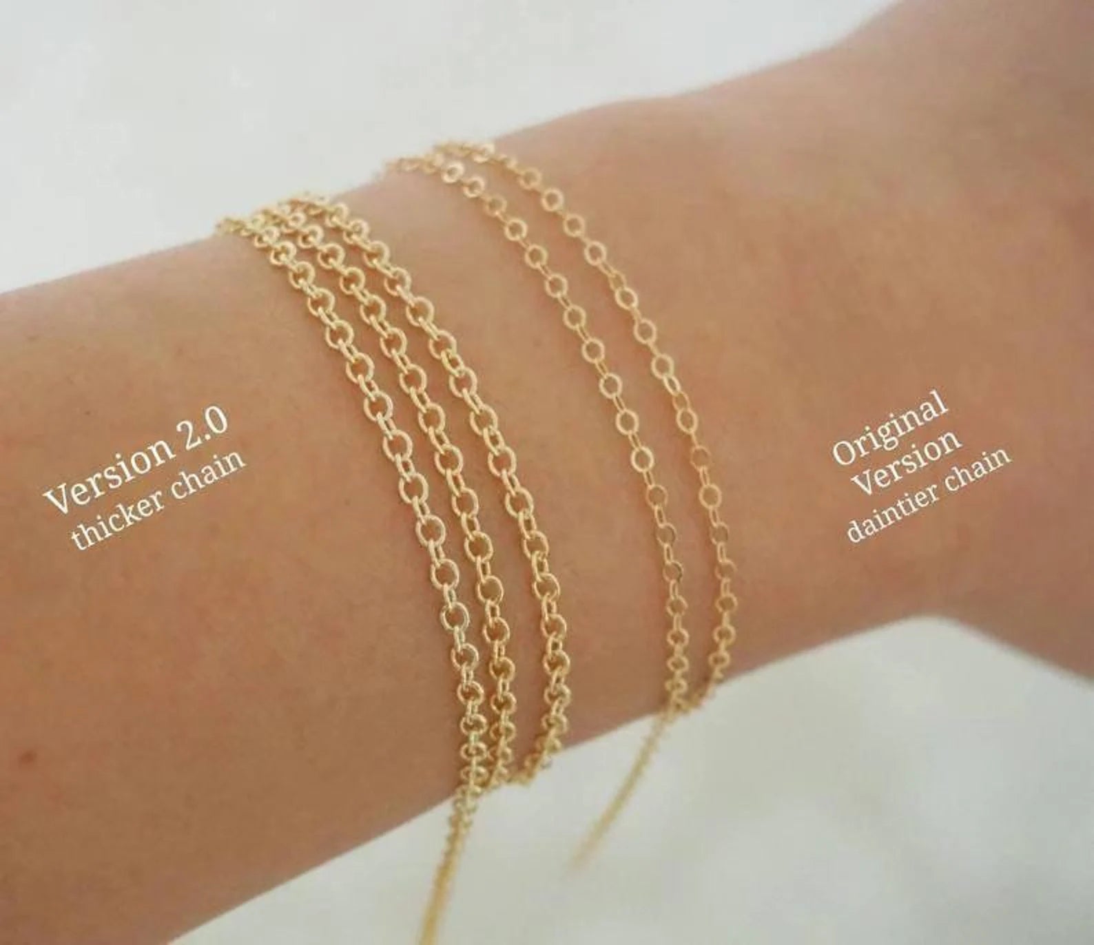 VERSION 2.0 designs are based off of older classic and best selling body chains. VERSION 2.0 designs are made with thicker 14k Gold Filled chain and components.