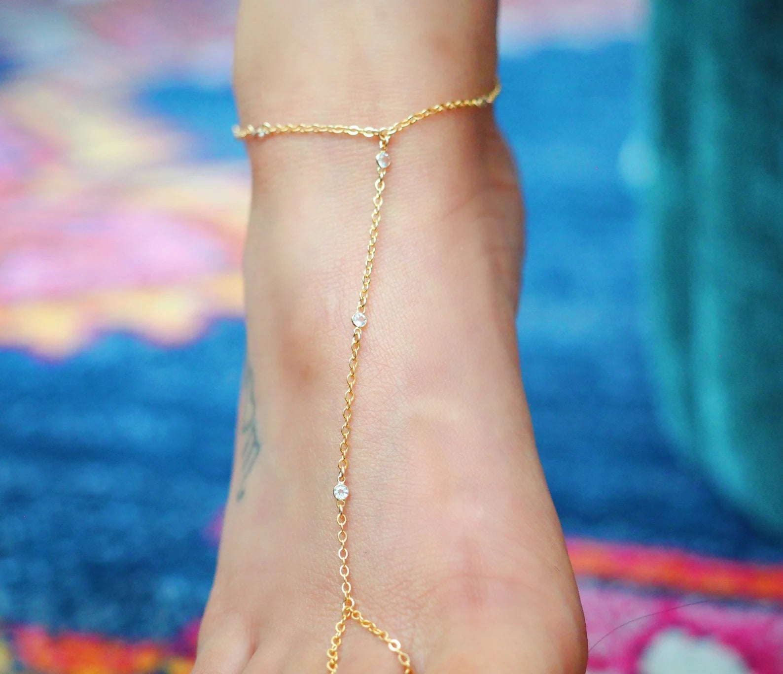 VERSION 2.0 14k Gold Filled & 14k Solid Gold White Topaz Foot Piece Anklet