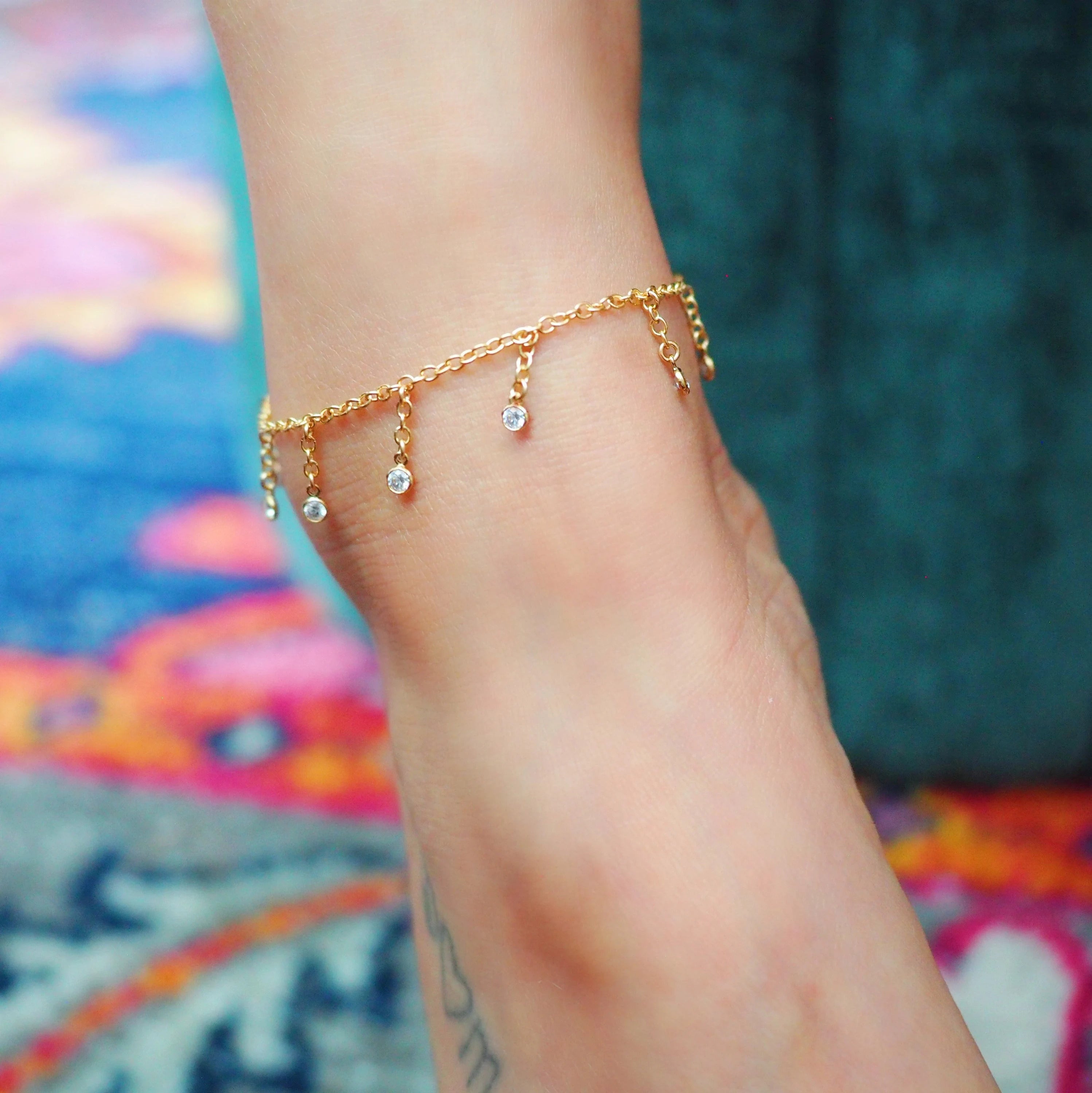 14k Gold Filled Dripping CZ Diamonds Dainty Anklet | VERSION 2.0