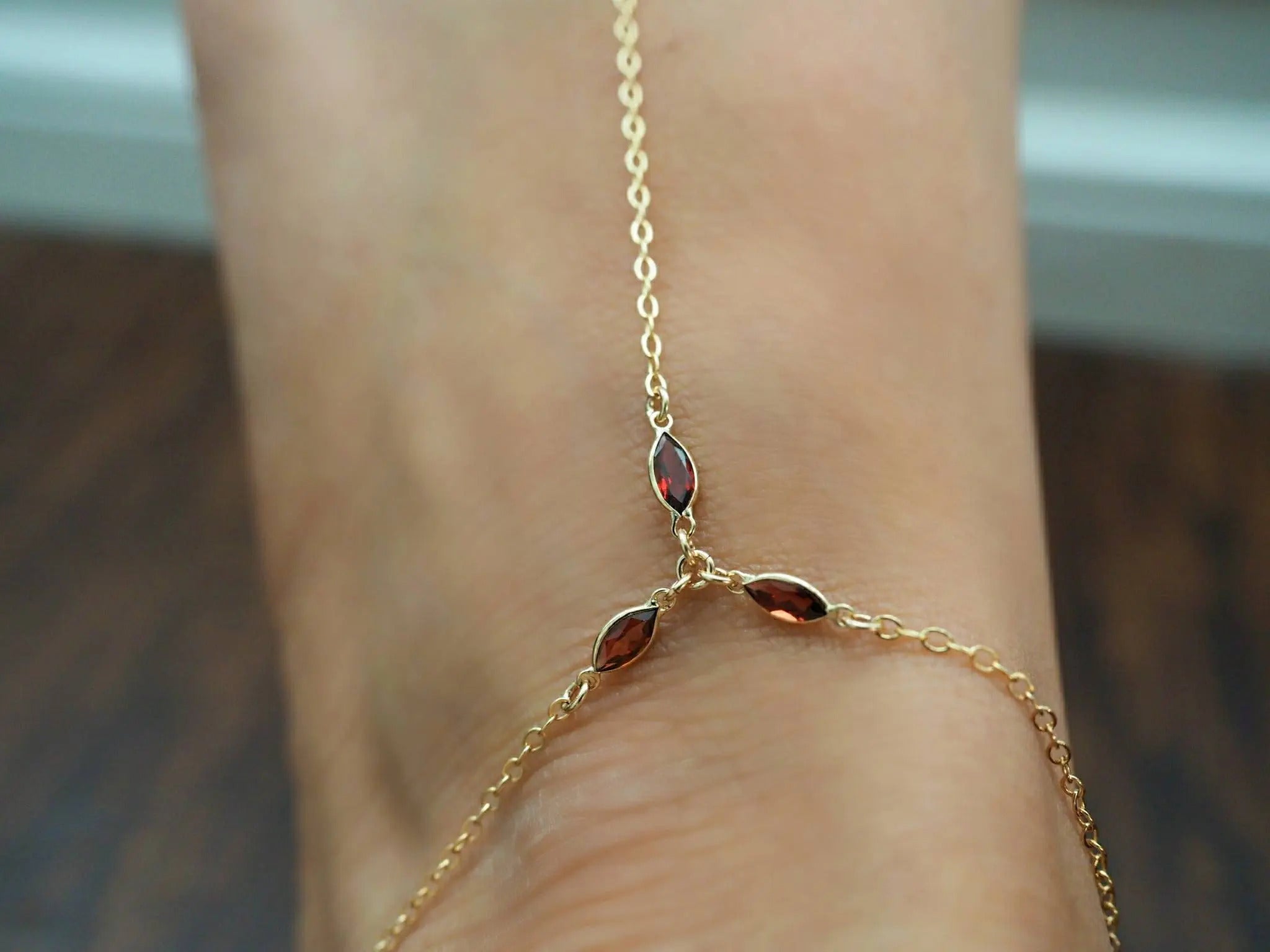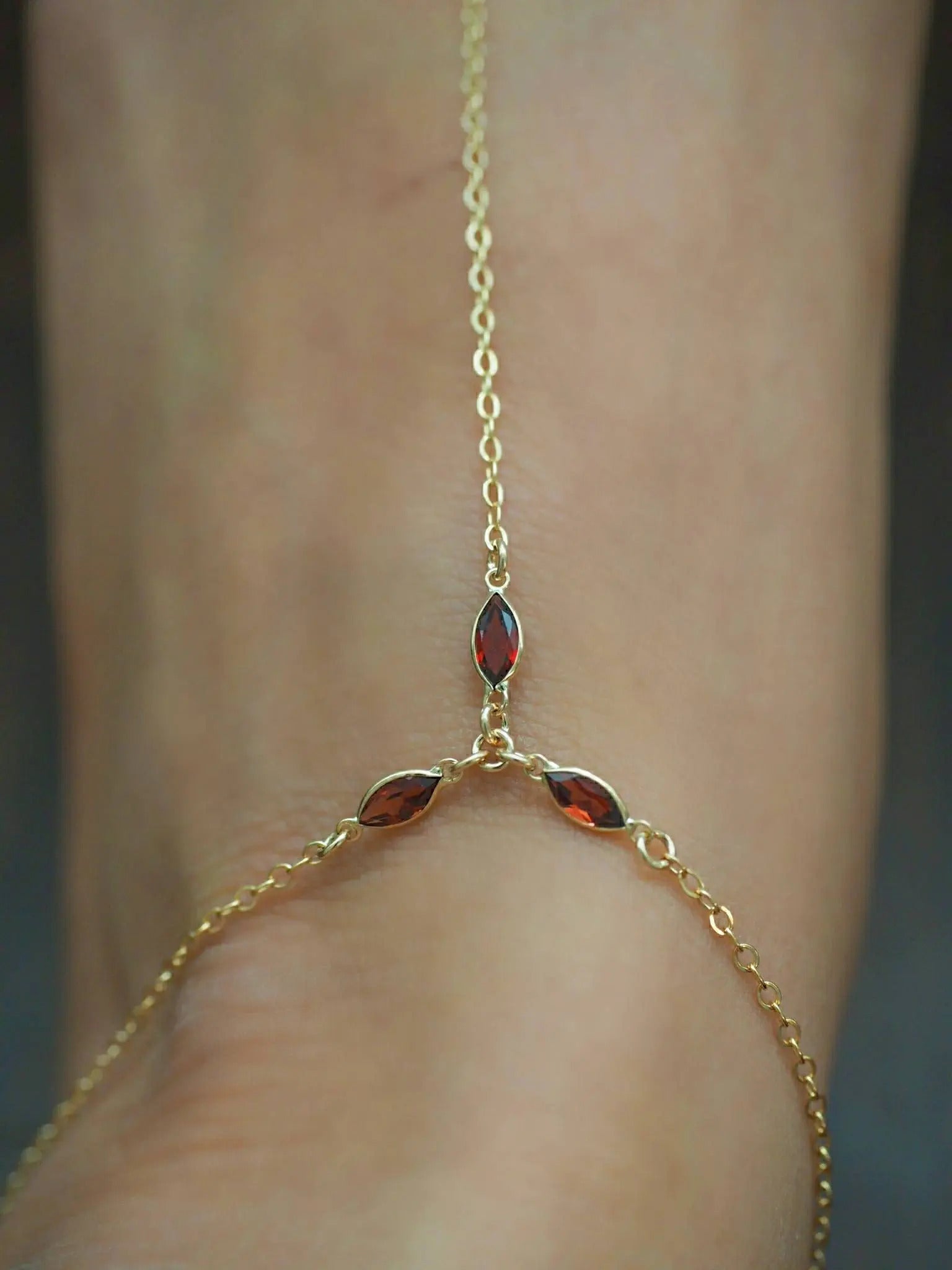 14k Gold Filled with 14k Solid Gold Garnet Triple Marquise Foot Piece Anklet