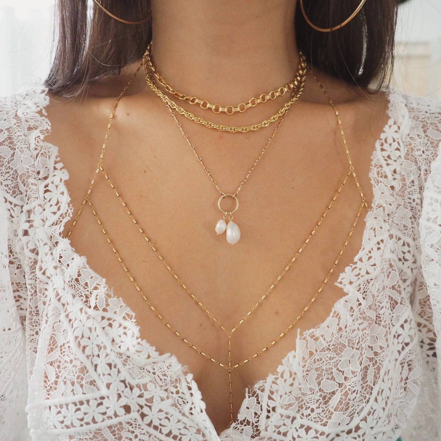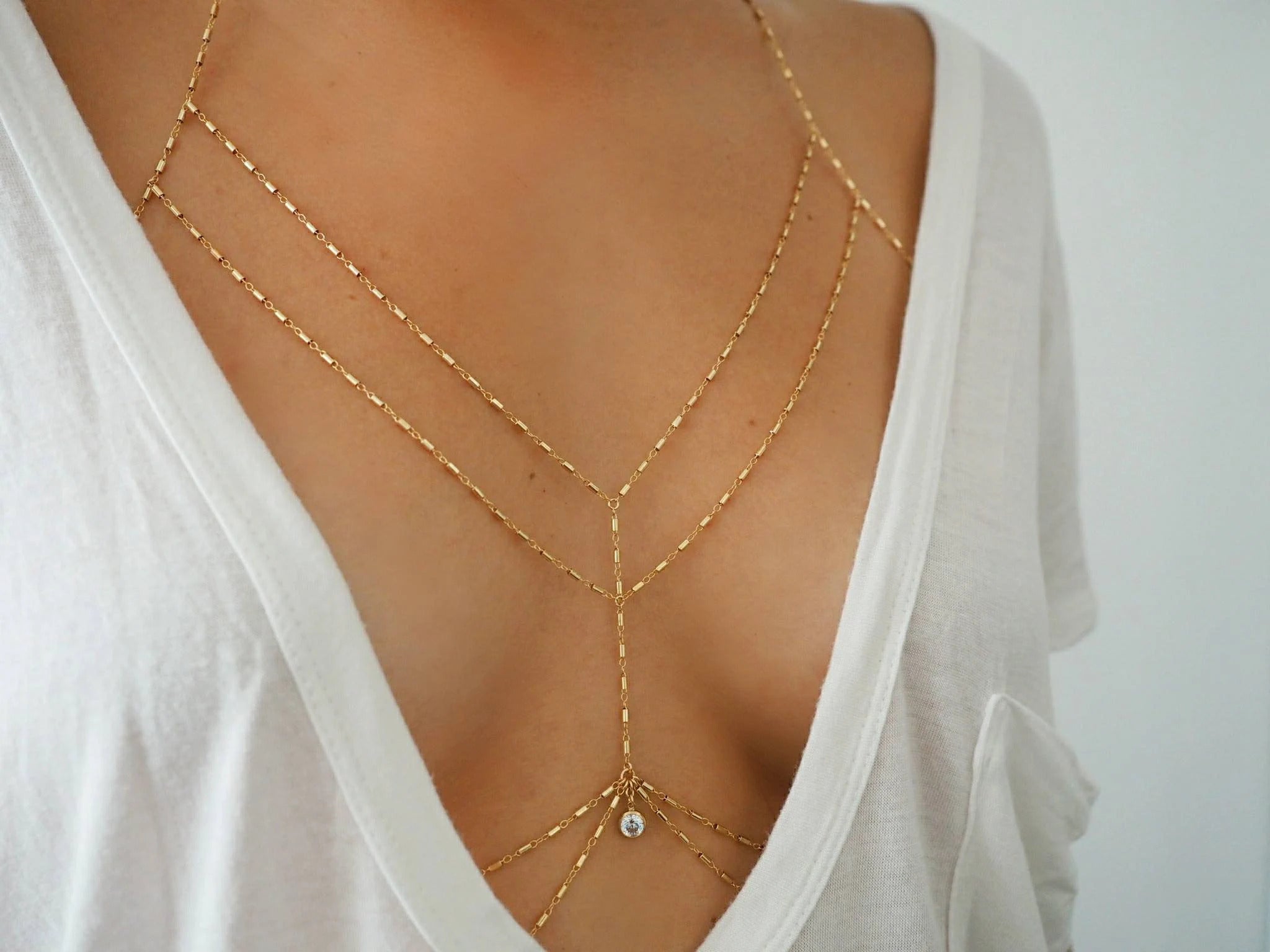 14k Gold Filled Bohemian Double Layer Dainty Chain Bralette Halter Top Body Chain
