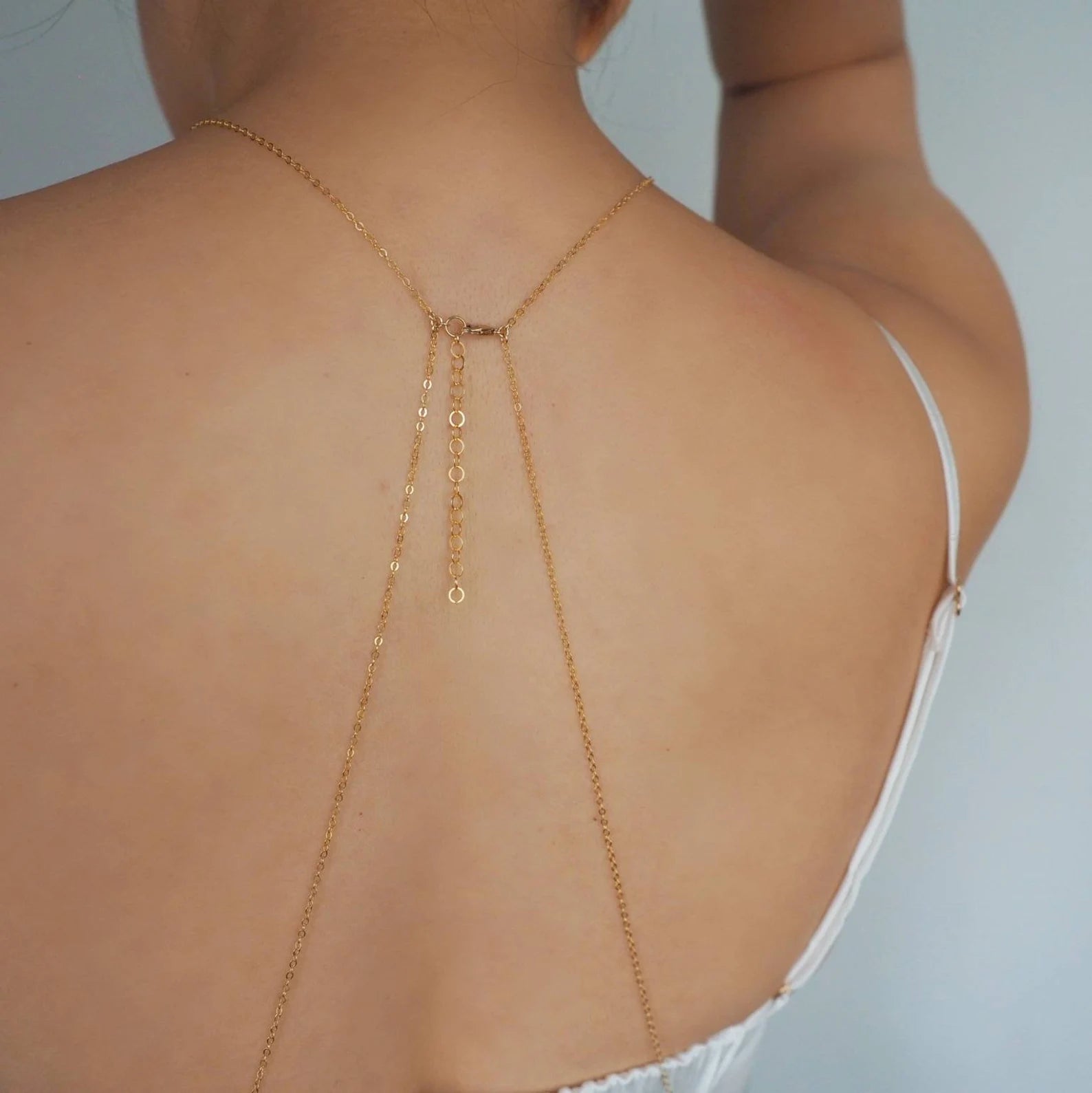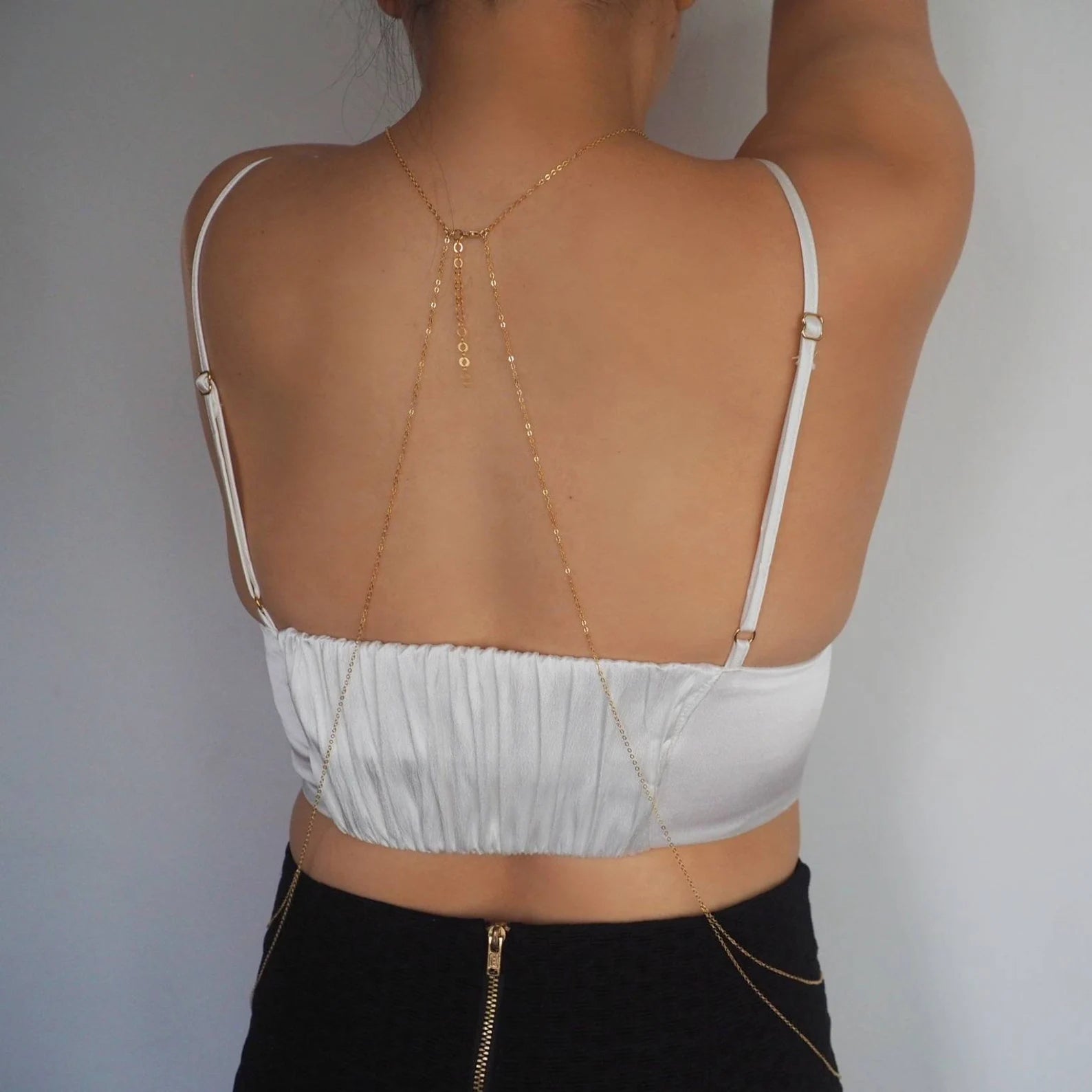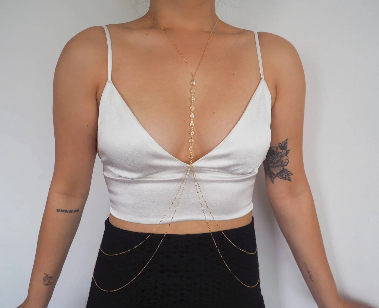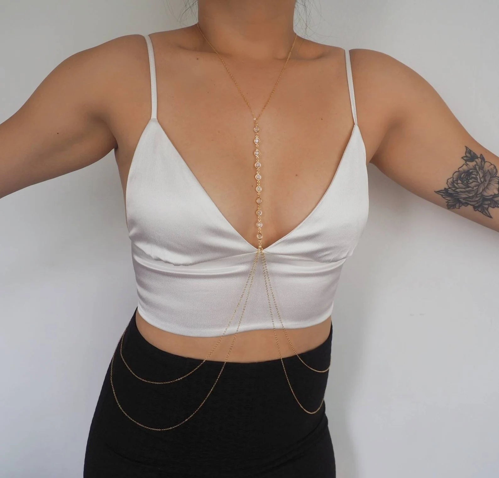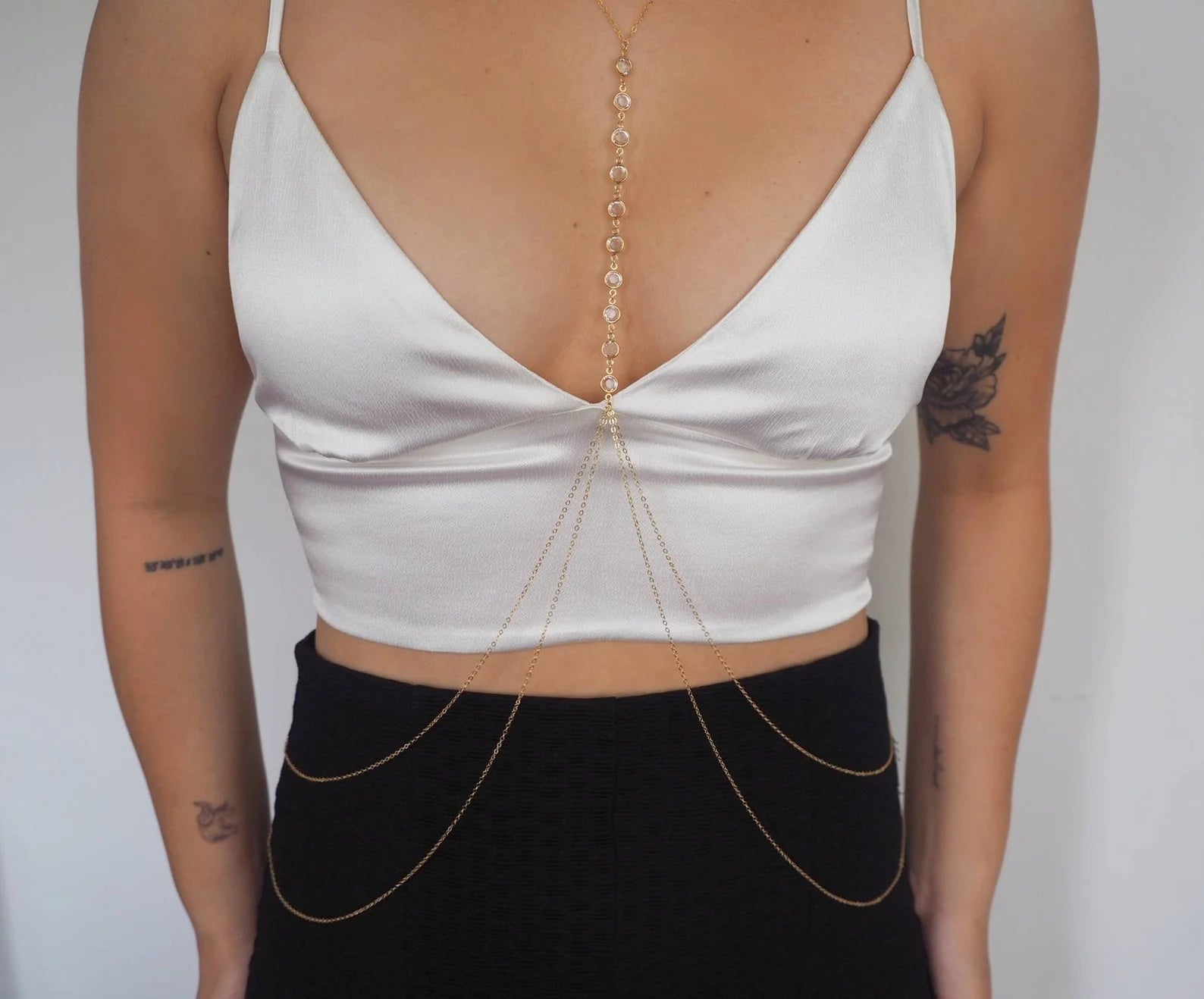 14k Gold Filled Double Layer DRAPED BACK Swarovski Crystal Line Body Chain