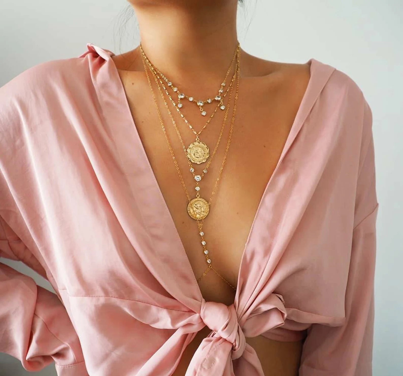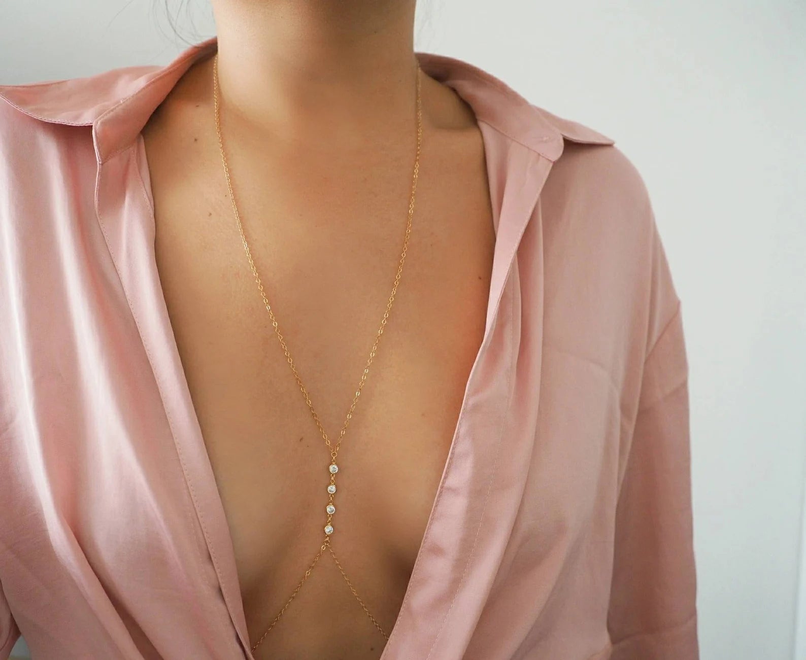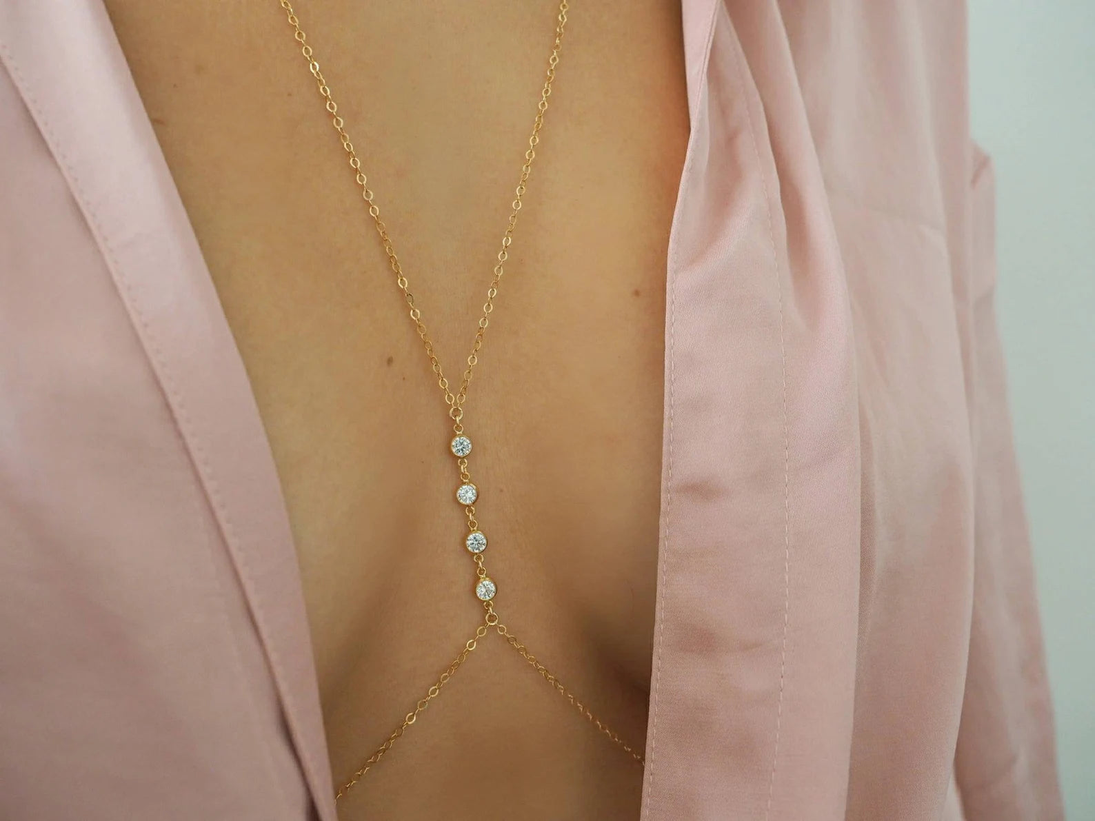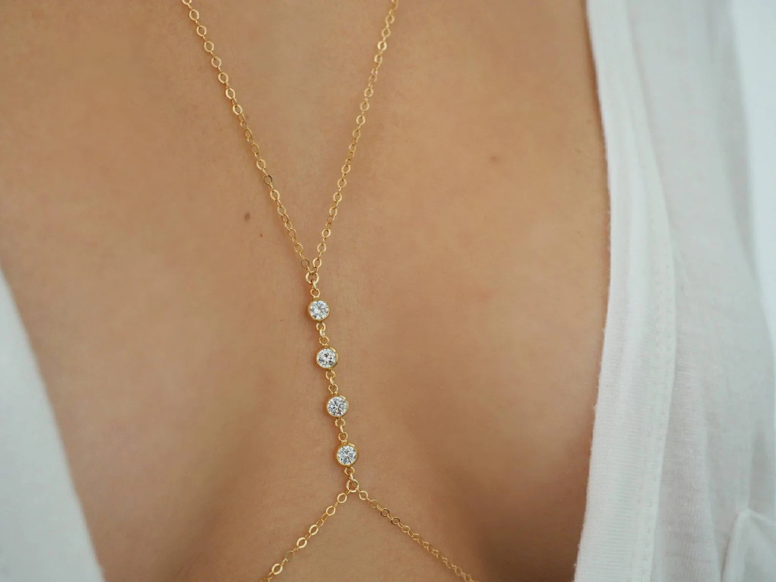 14k Gold Filled FOUR CZ Diamond Dainty Body Chain