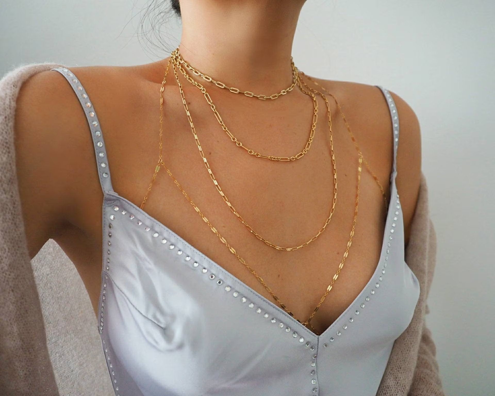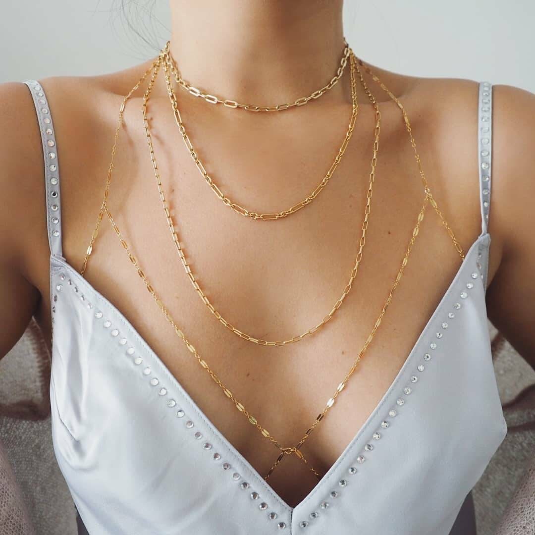 14k Gold Filled Sparkle Bar Chain Halter Top Body Chain