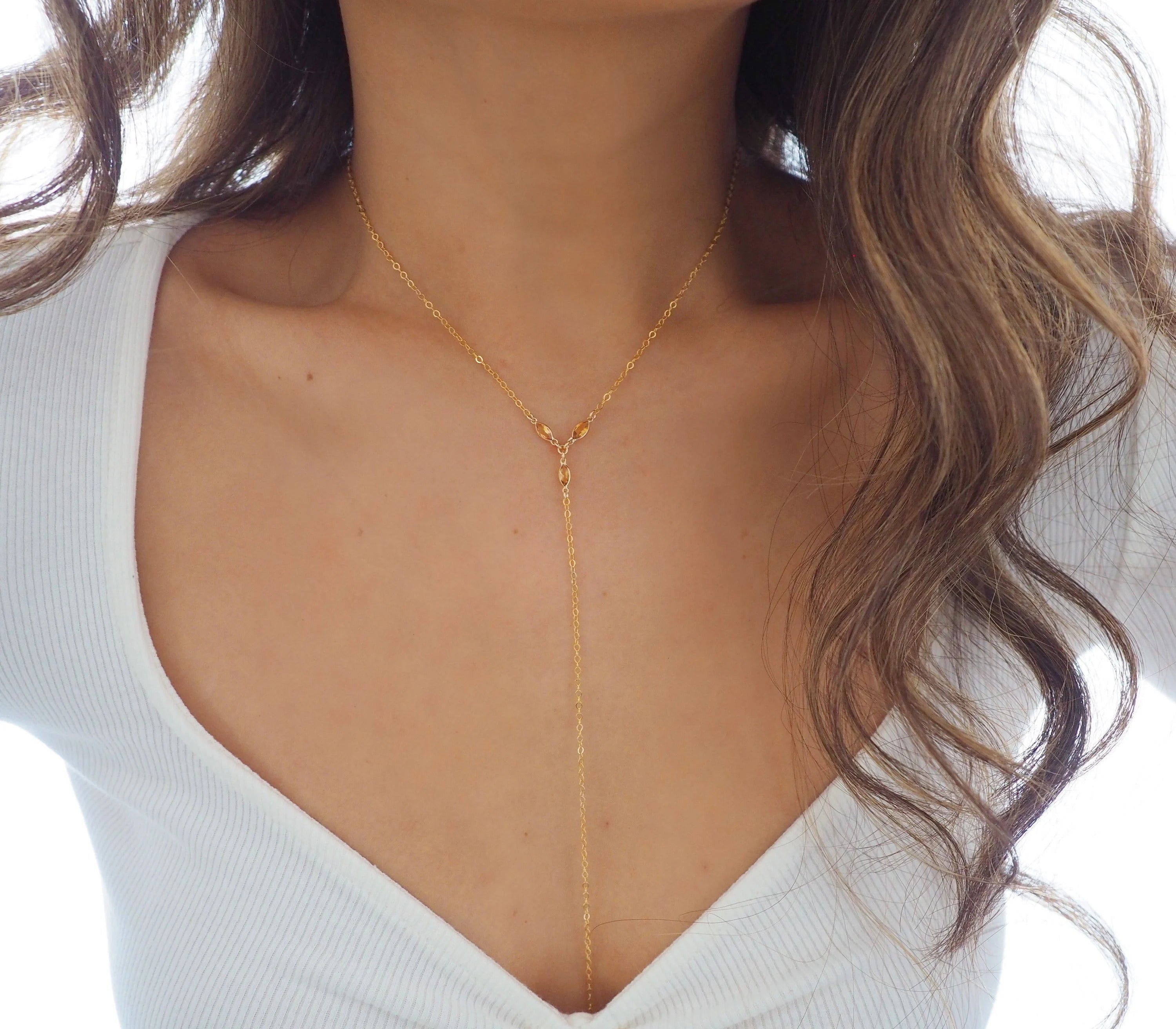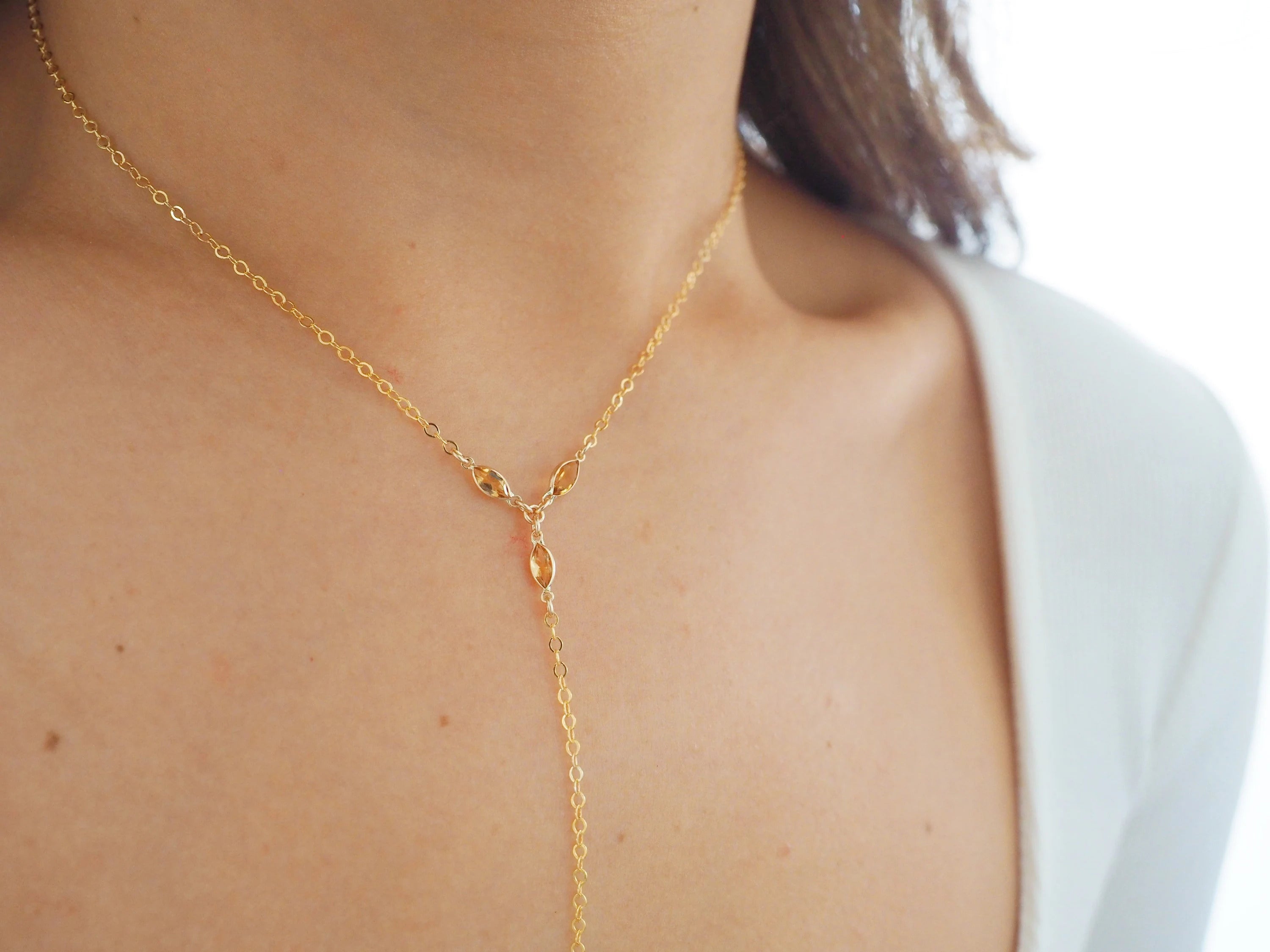 14k Gold Filled with 14k Solid Gold Citrine Triple Marquise Dainty Line Body Chain