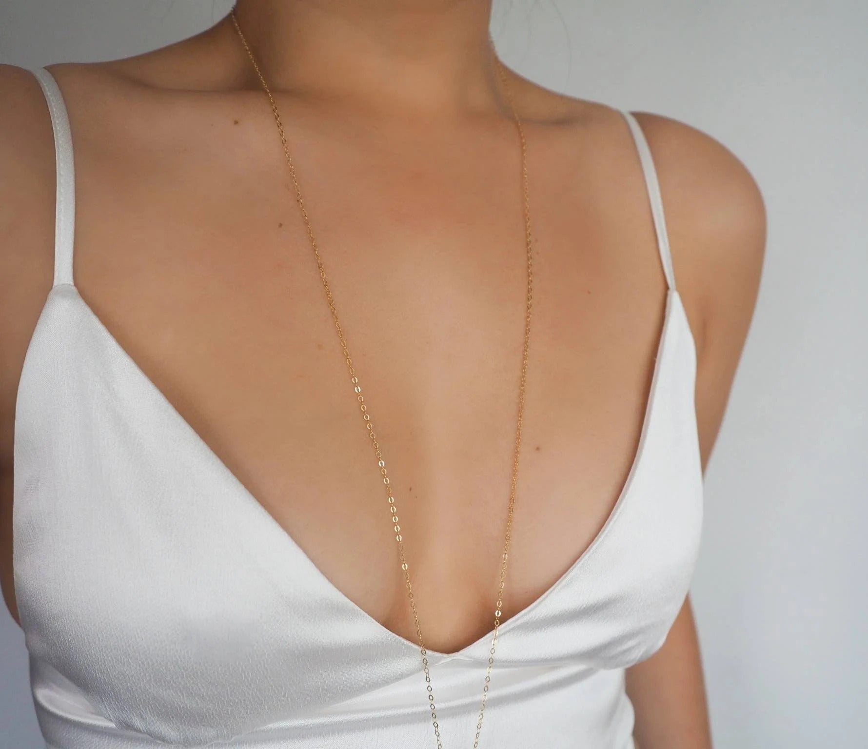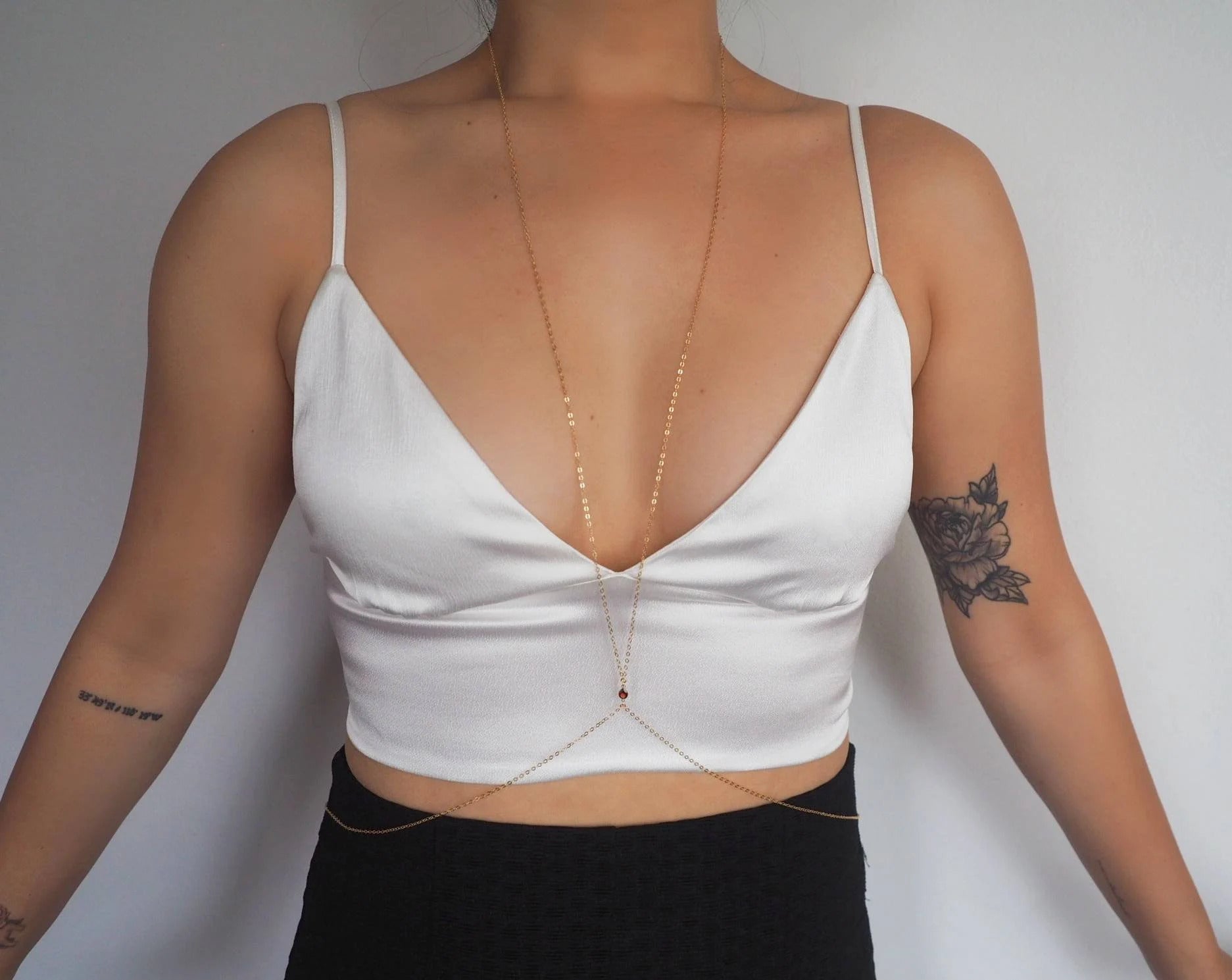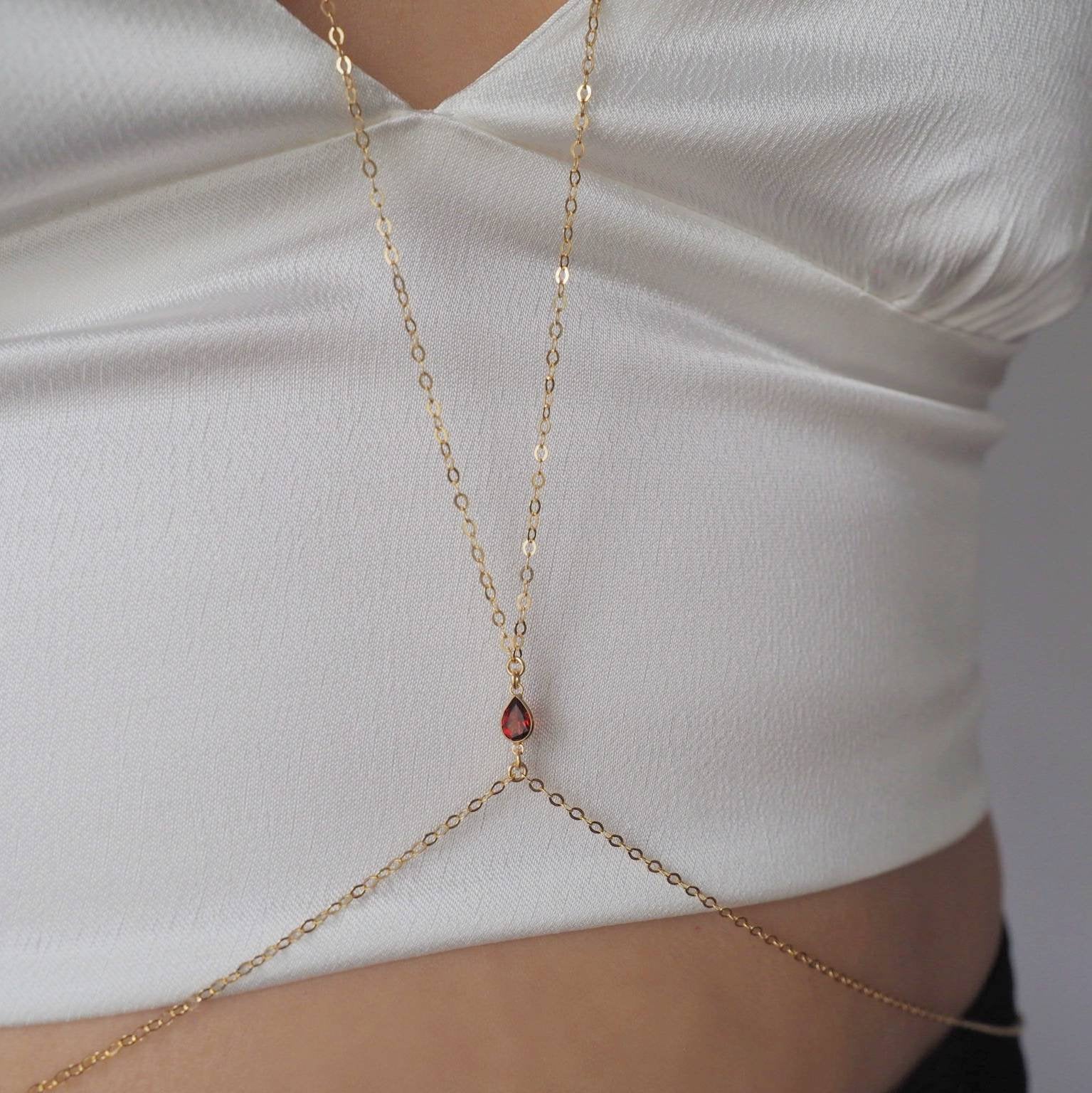 14k Gold Filled with 14k Solid Gold Garnet Stone Low Hanging V Dainty Body Chain