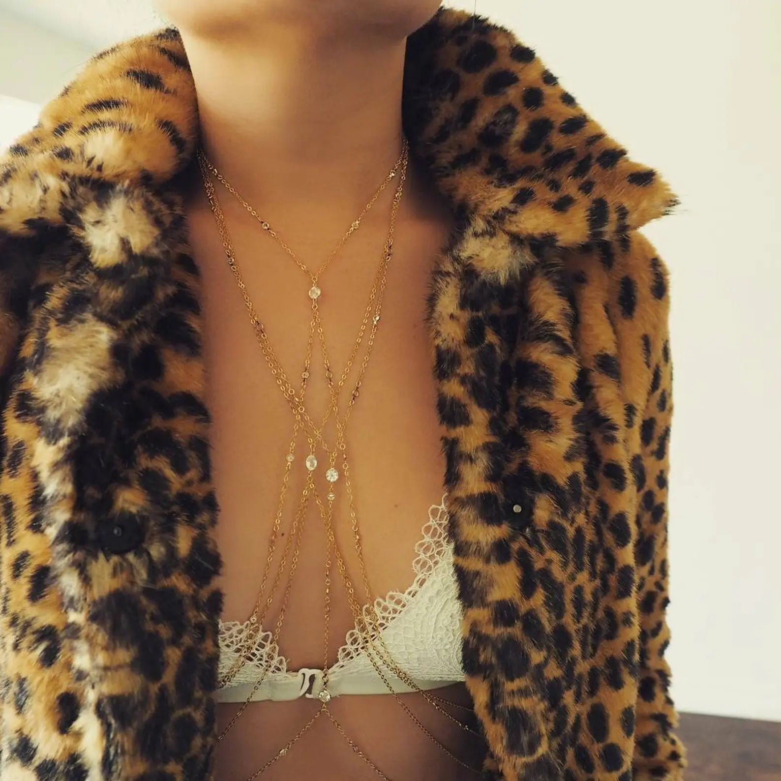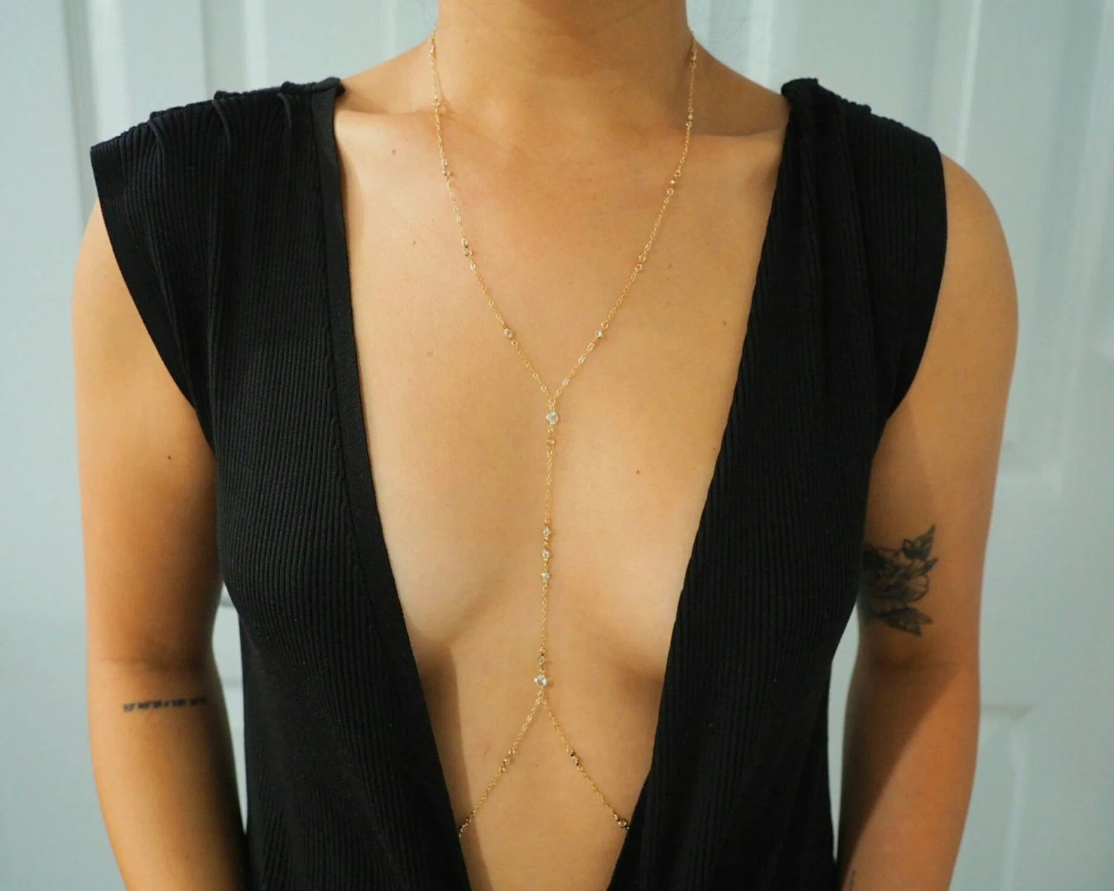14k Gold Filled with 14k Solid Gold White Topaz & Swarovski Crystals Dainty Line Body Chain
