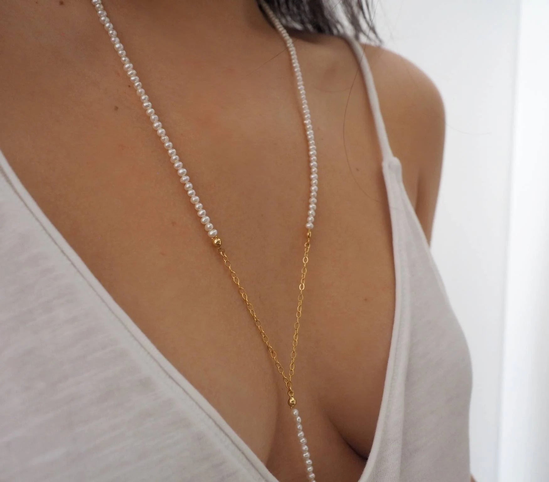 14k Gold Filled with Tiny Freshwater Pearl Dainty Body Chain