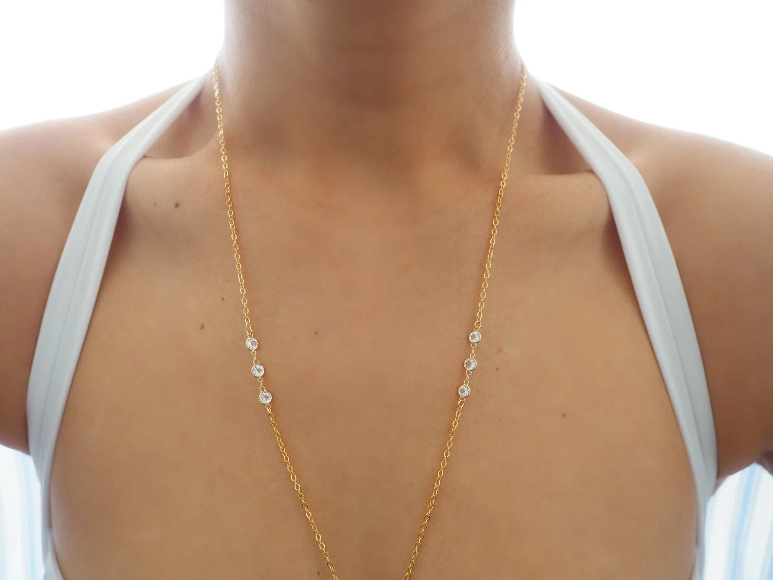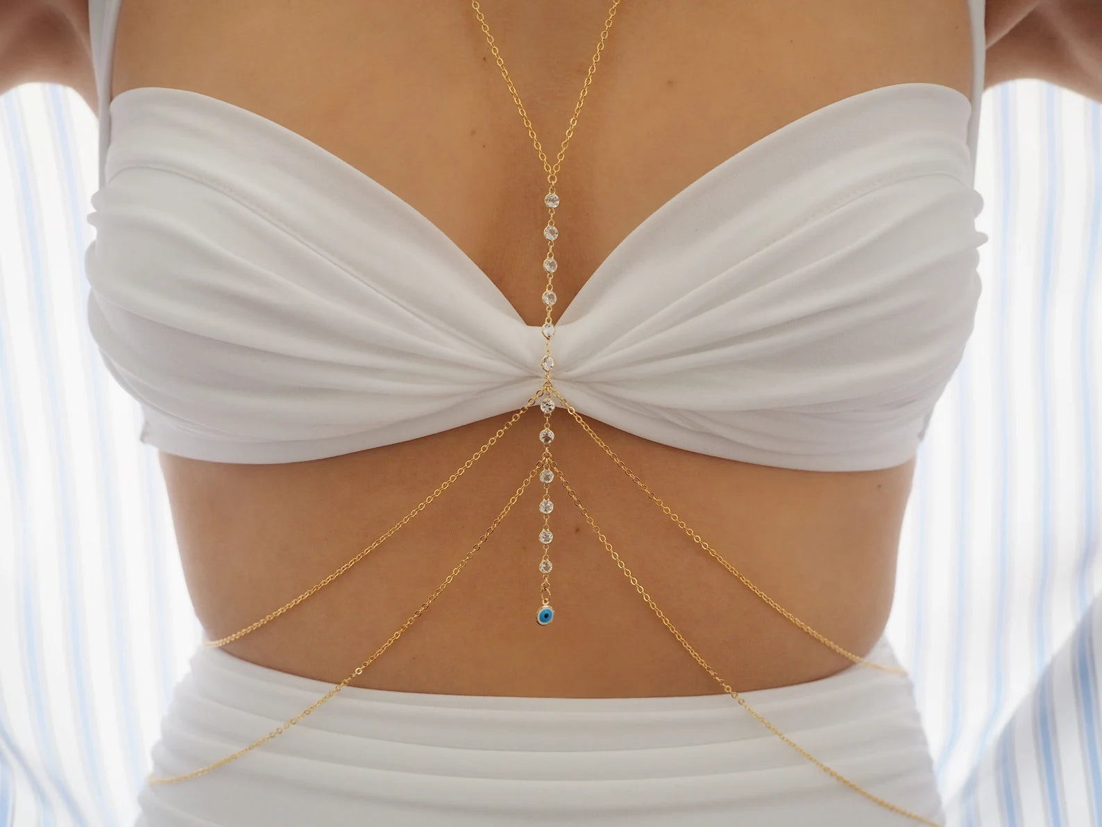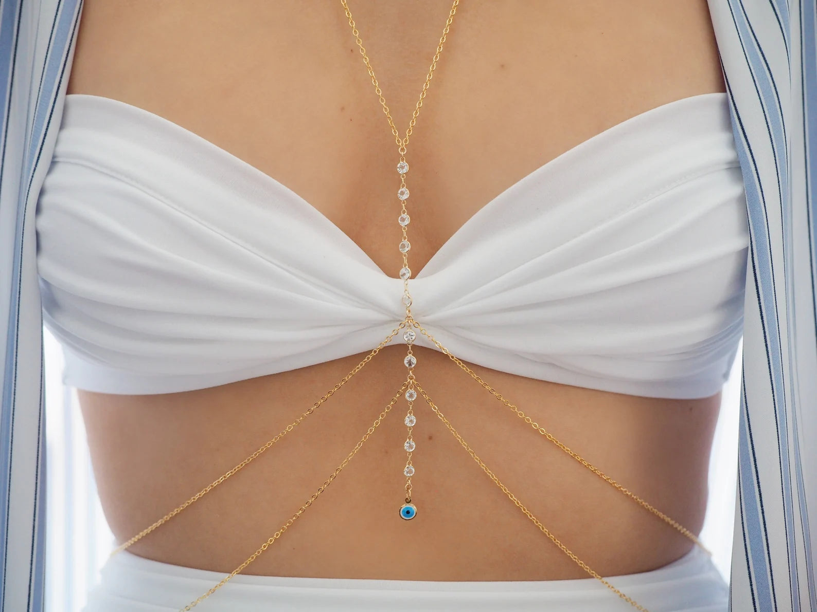 VERSION 2.0 | 14k Gold Filled with 14k Solid Gold White Topaz Evil Eye Dainty Double Layer Body Chain