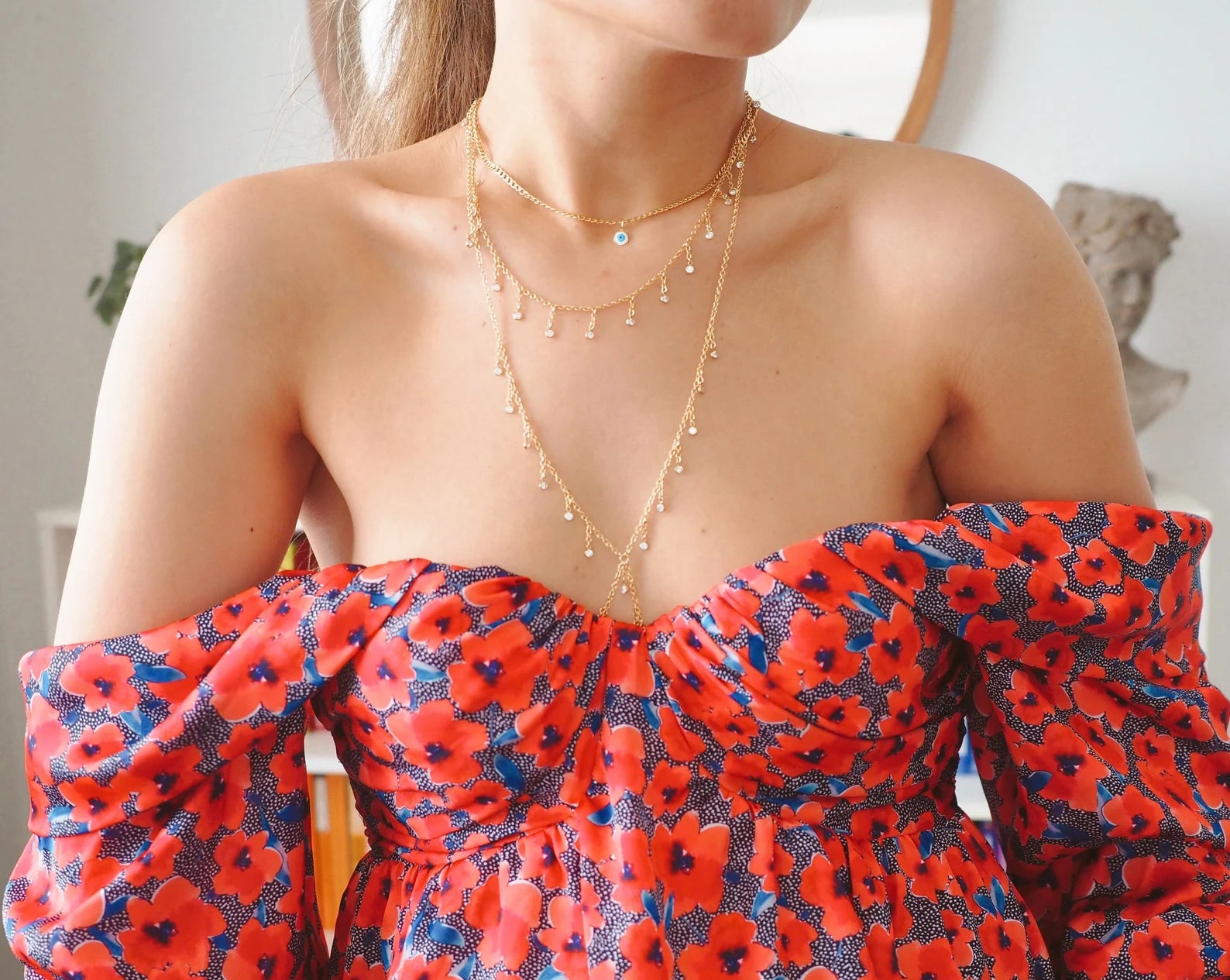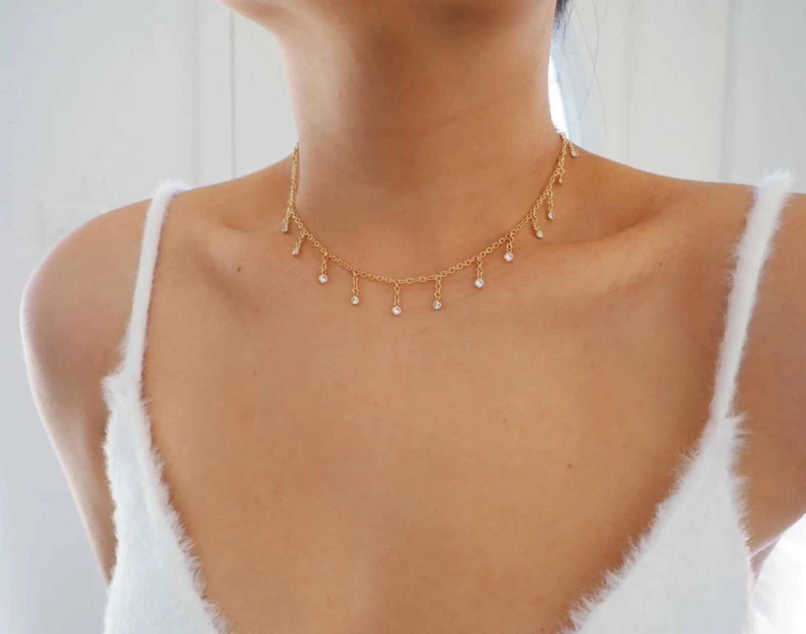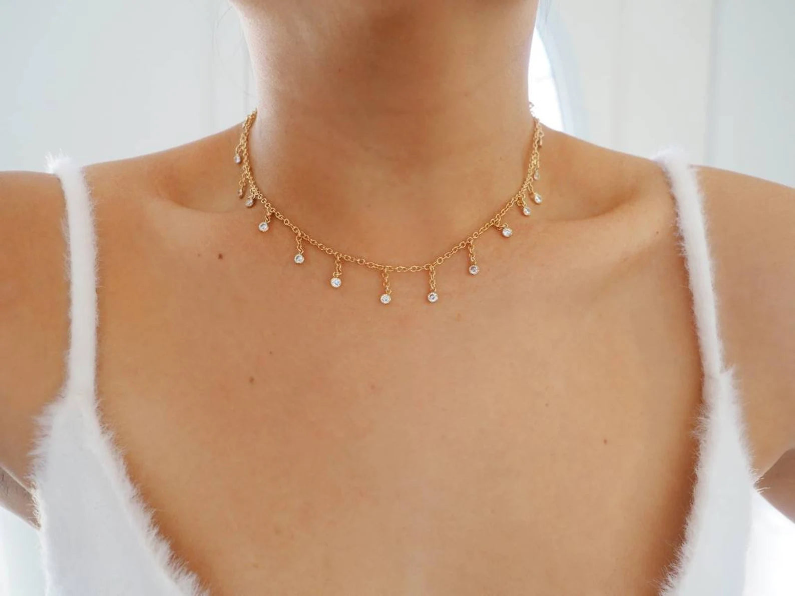14k Gold Filled Dripping CZ Diamonds Shaker Necklace