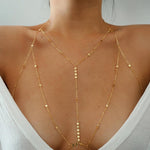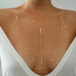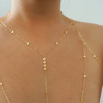 14k Gold Filled Tiny Coins T-Row Dainty Chain Bralette Halter Top Body Chain