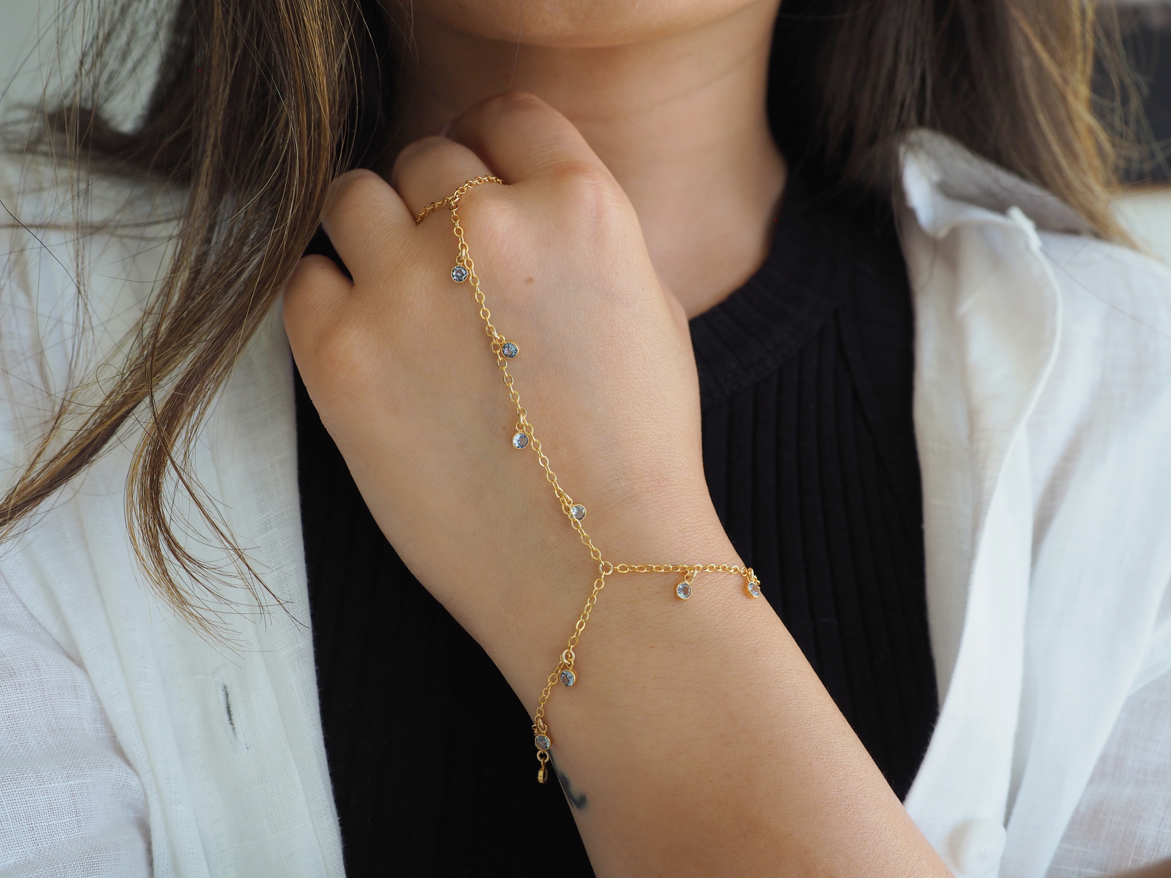 14k Gold Filled BLUE TOPAZ CZ Shaker Dainty Hand Piece