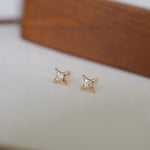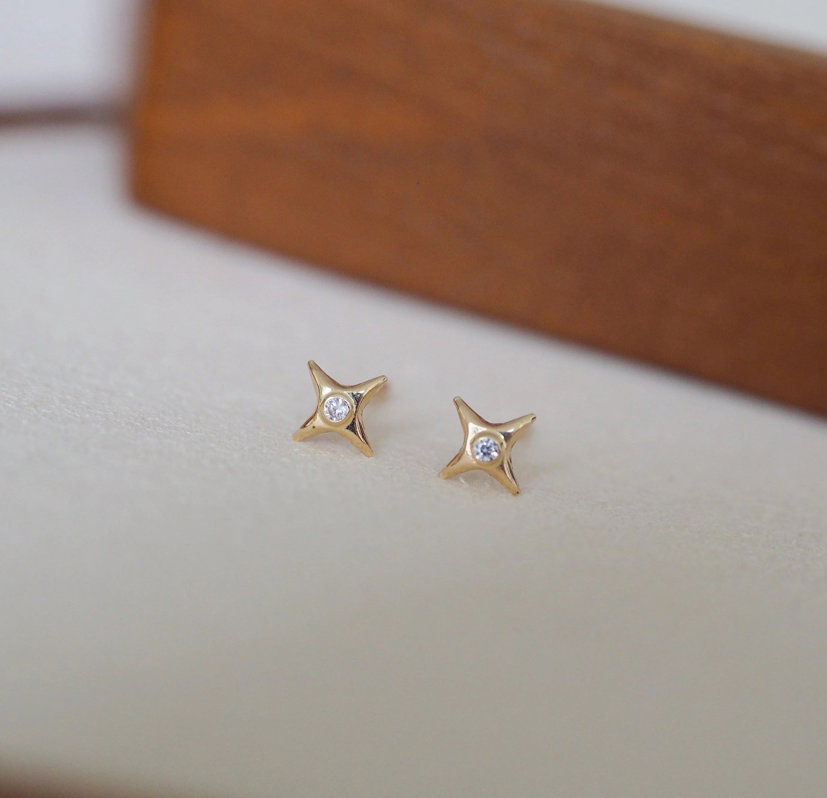 14k Solid Gold CZ Tiny Star Stud Earrings | Sold as Pair