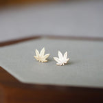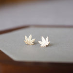 14k Solid Gold Marijuana Cannabis Leaf Stud Earrings | Sold as Pair