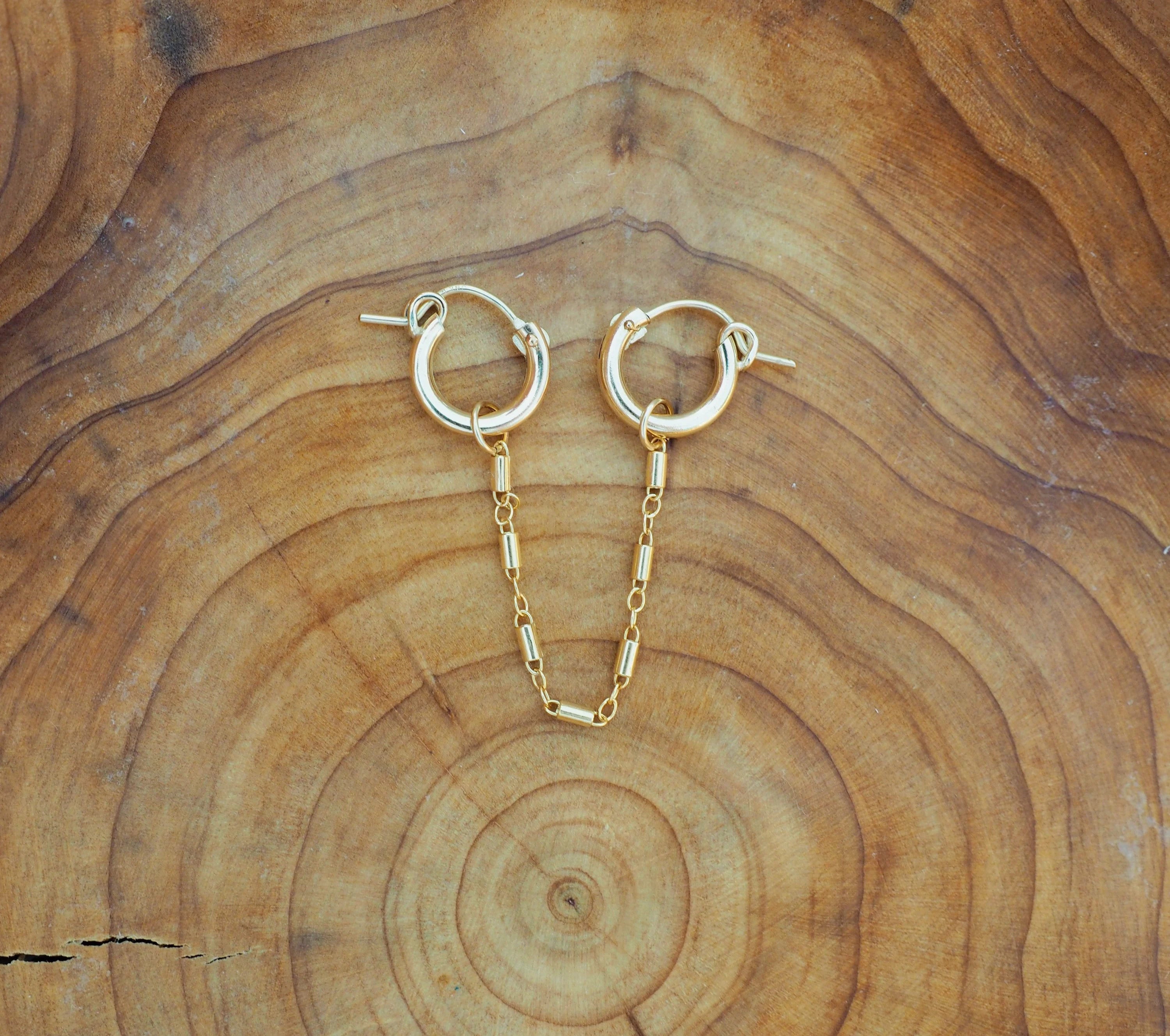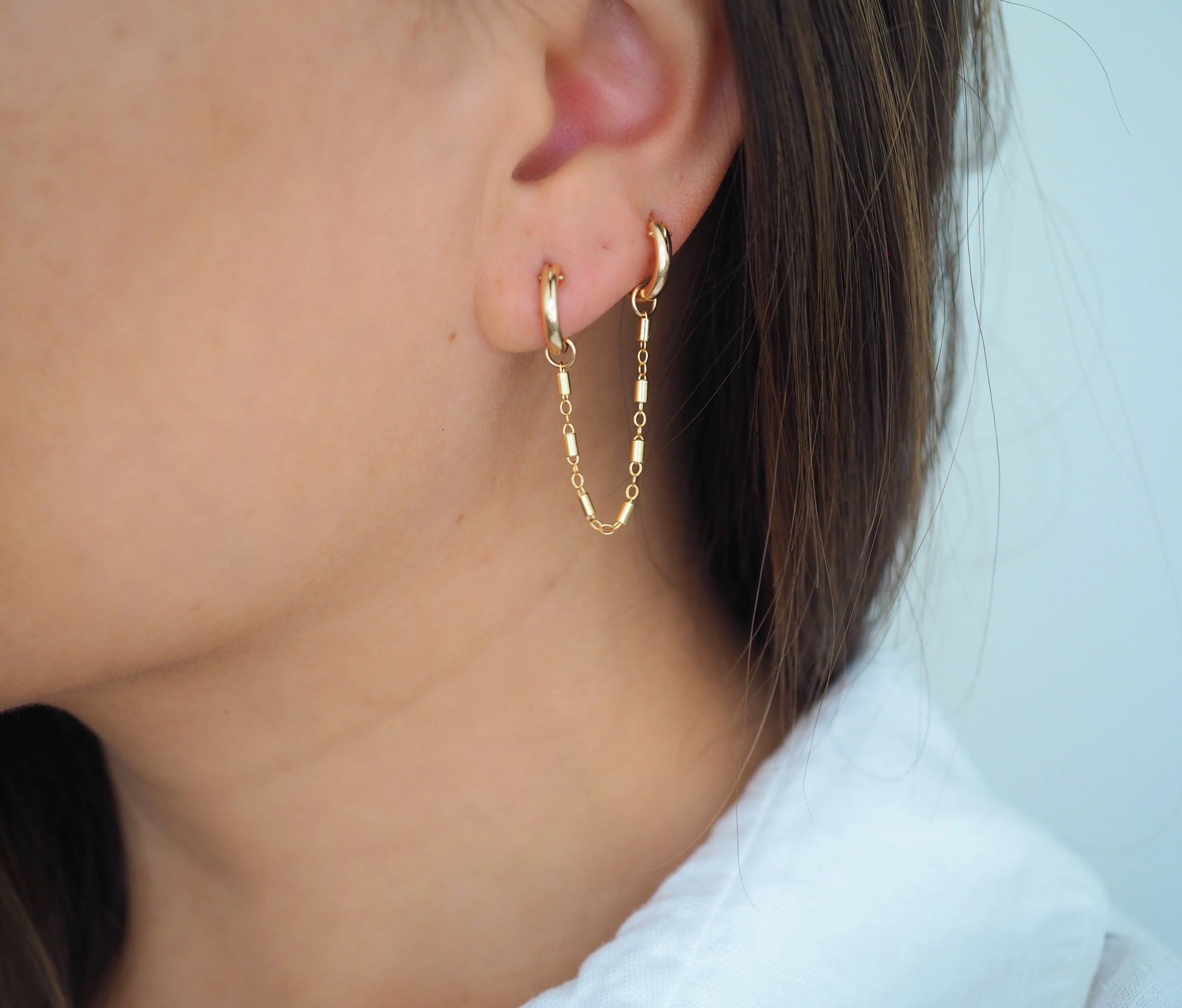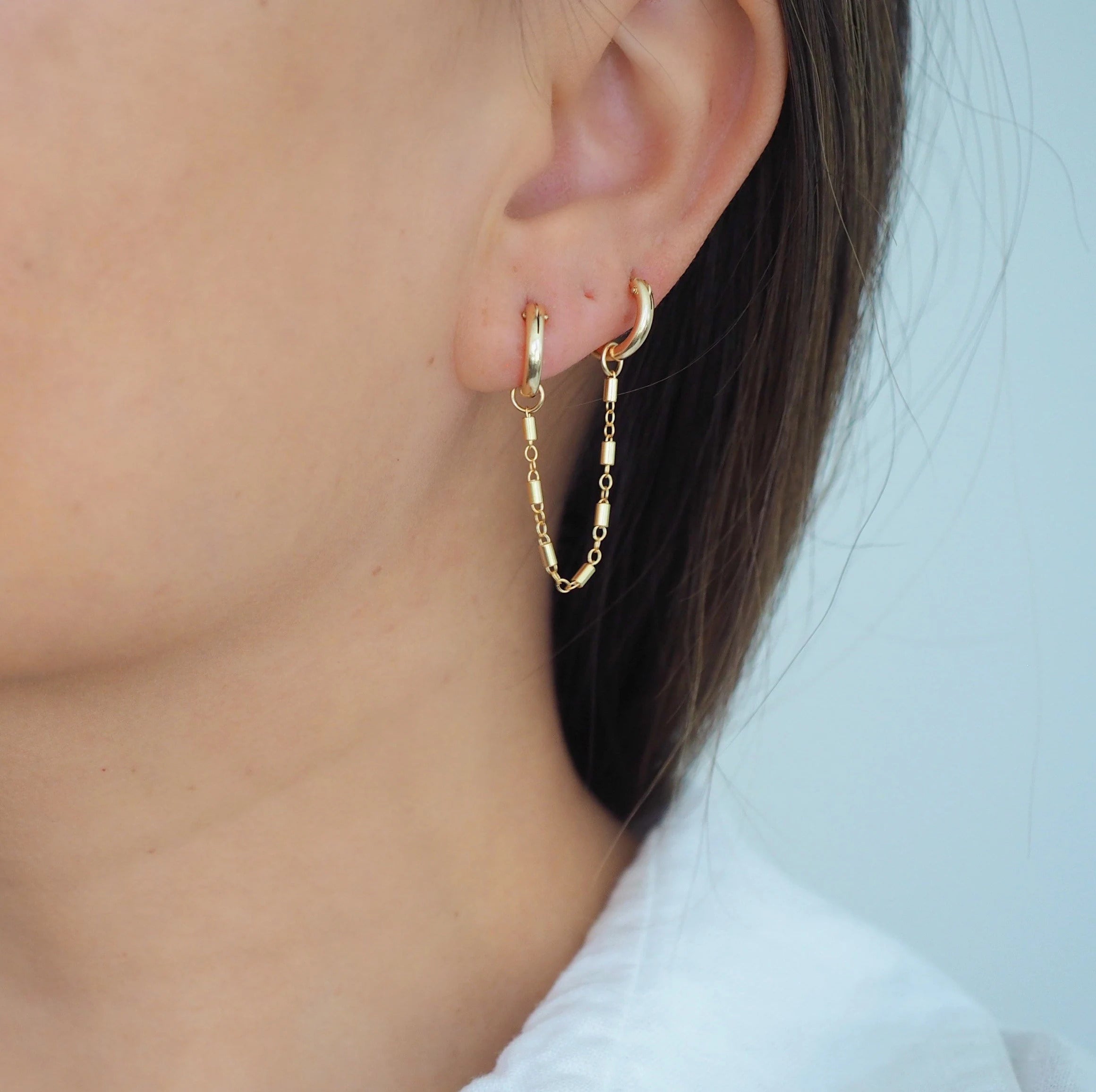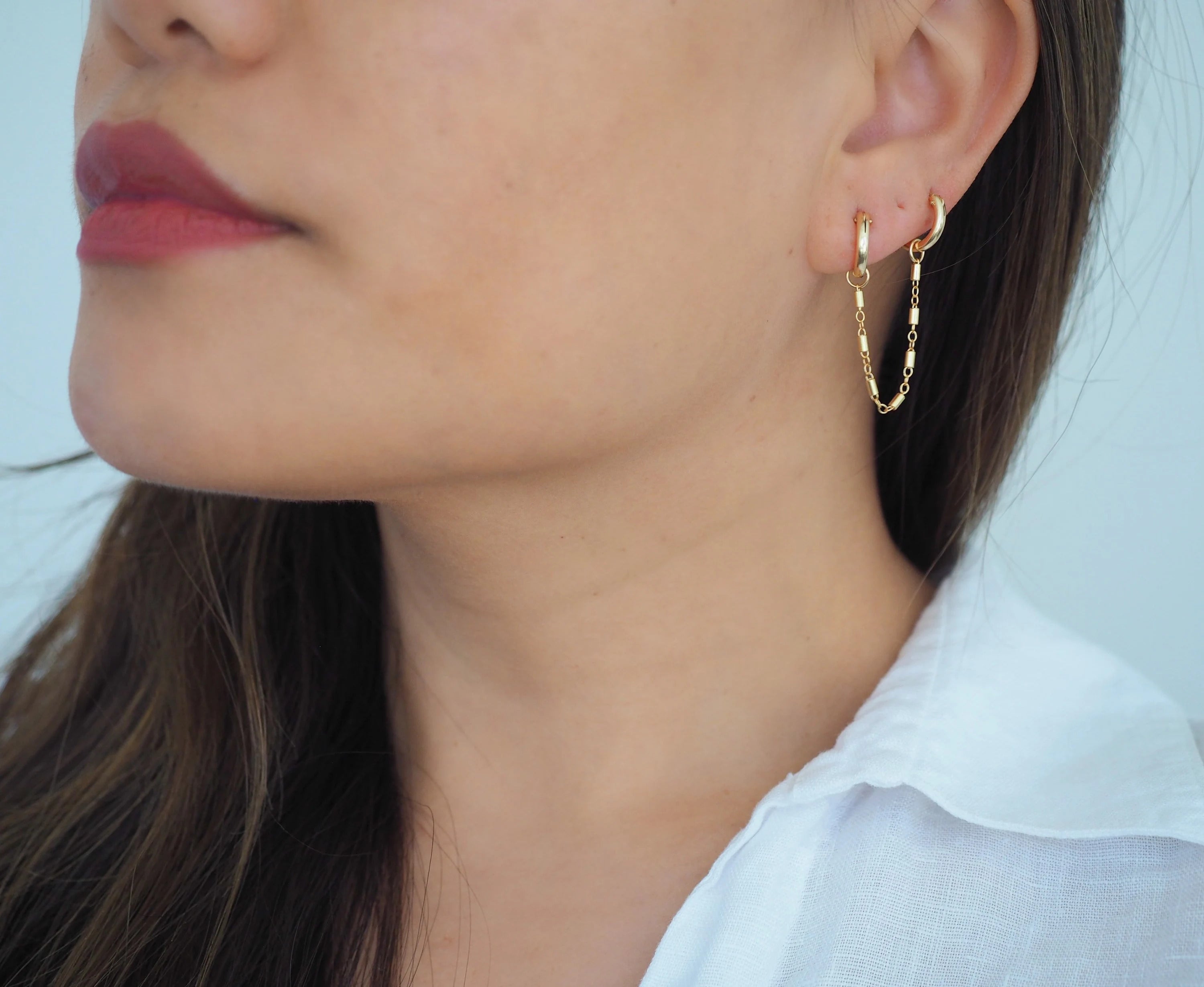 14k Gold Filled Bohemian Double Chain Mini Hoops