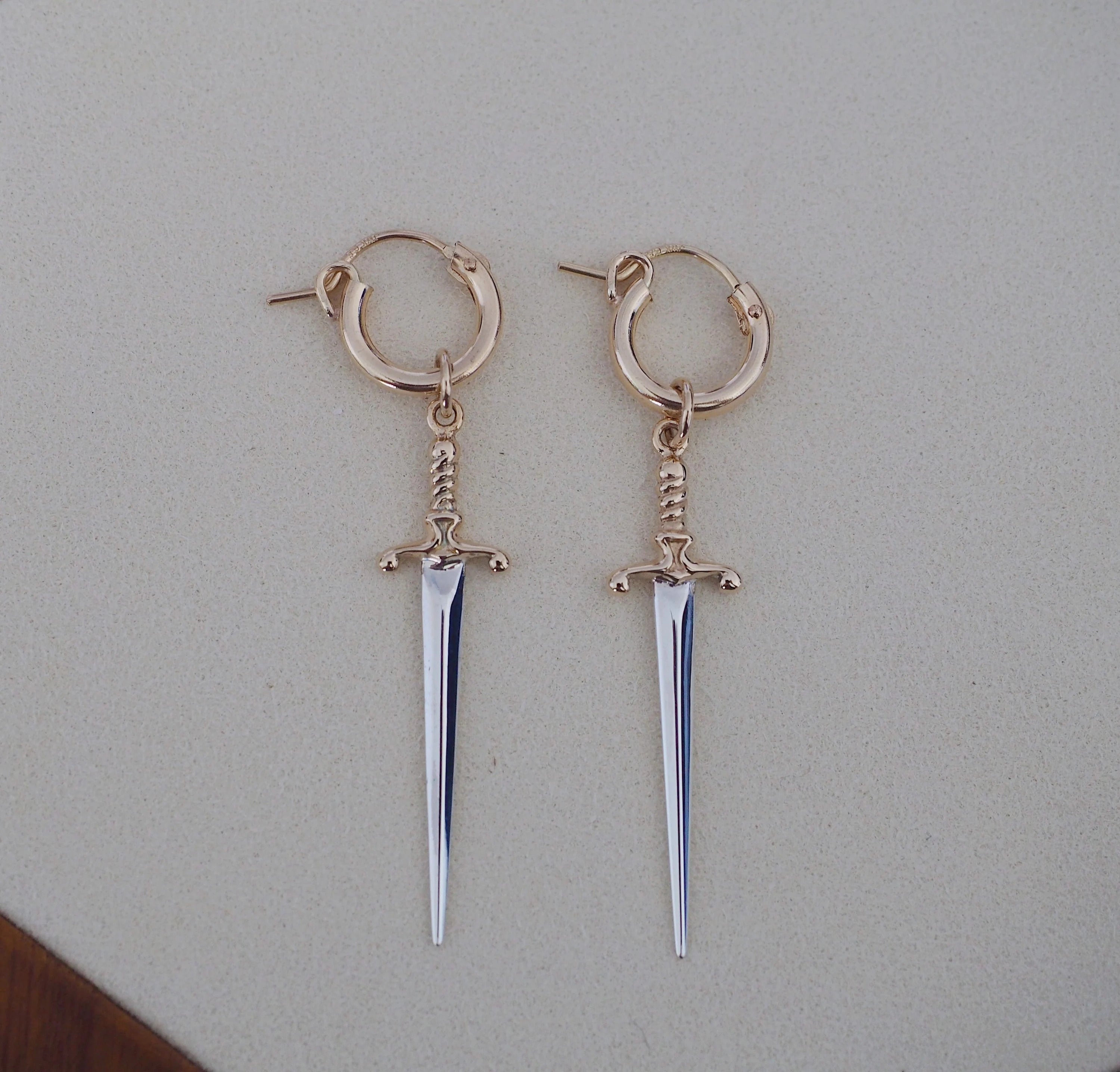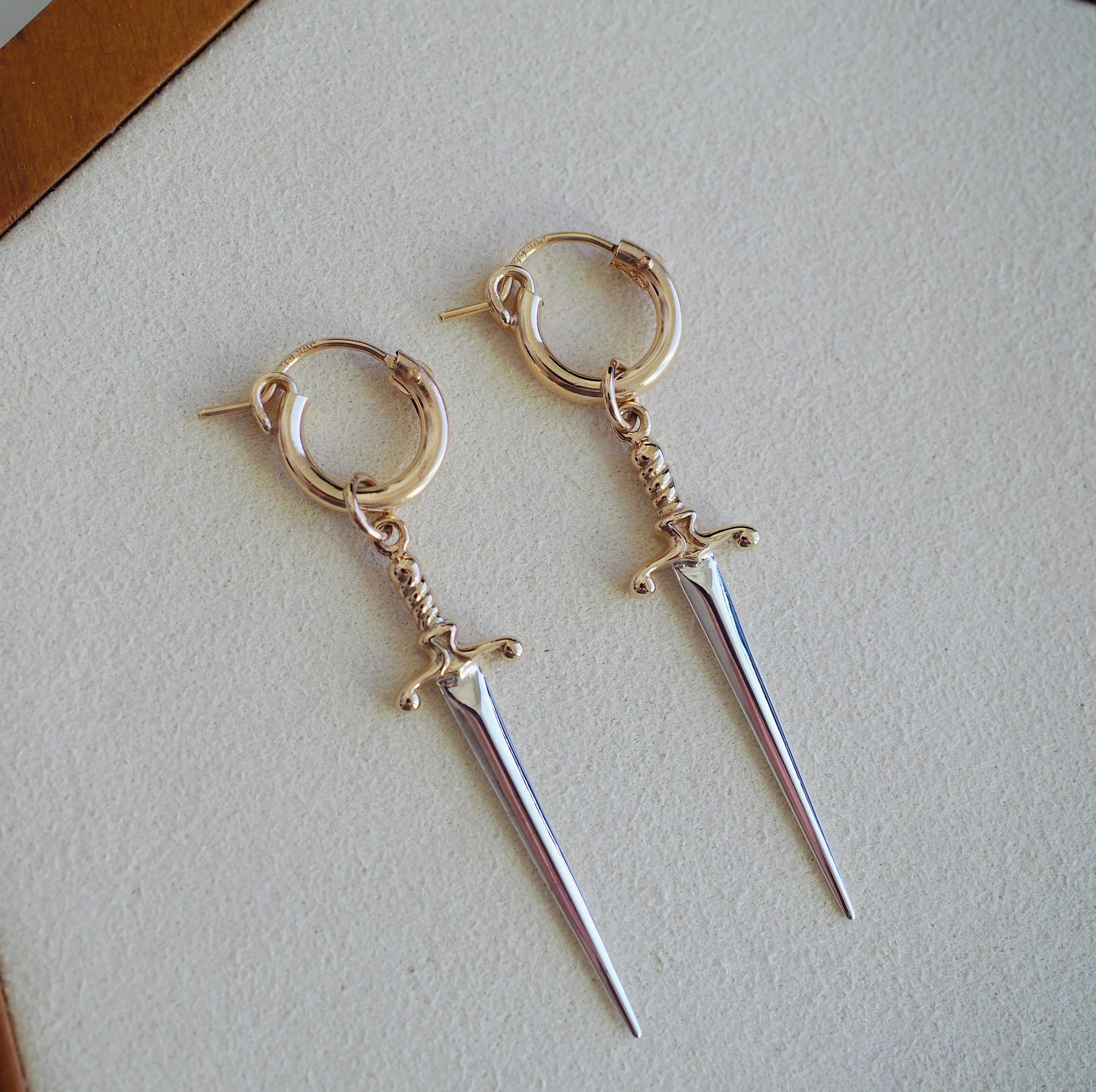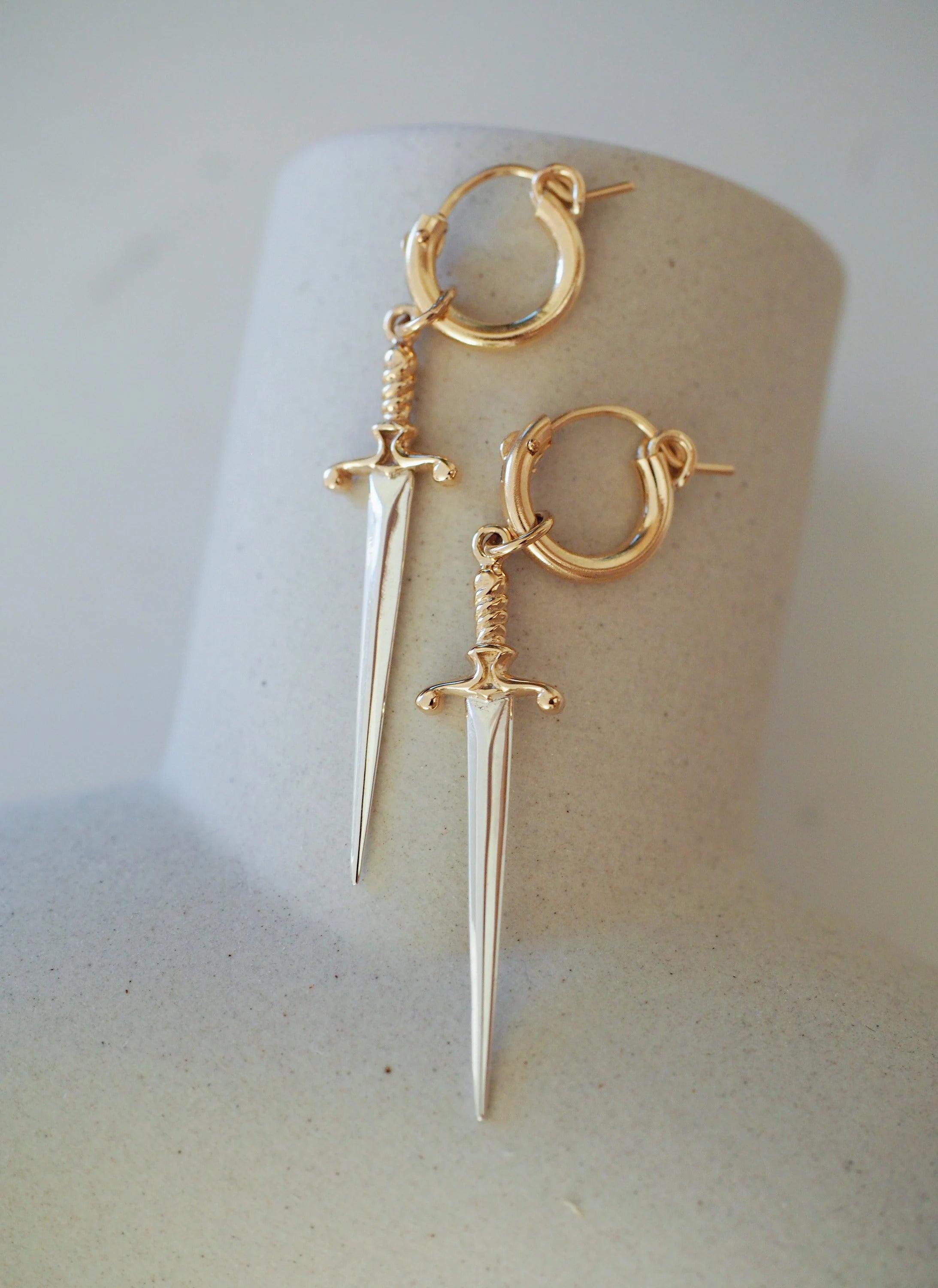 14k Gold Filled Hoops with Sword Charm | Sold as Pair