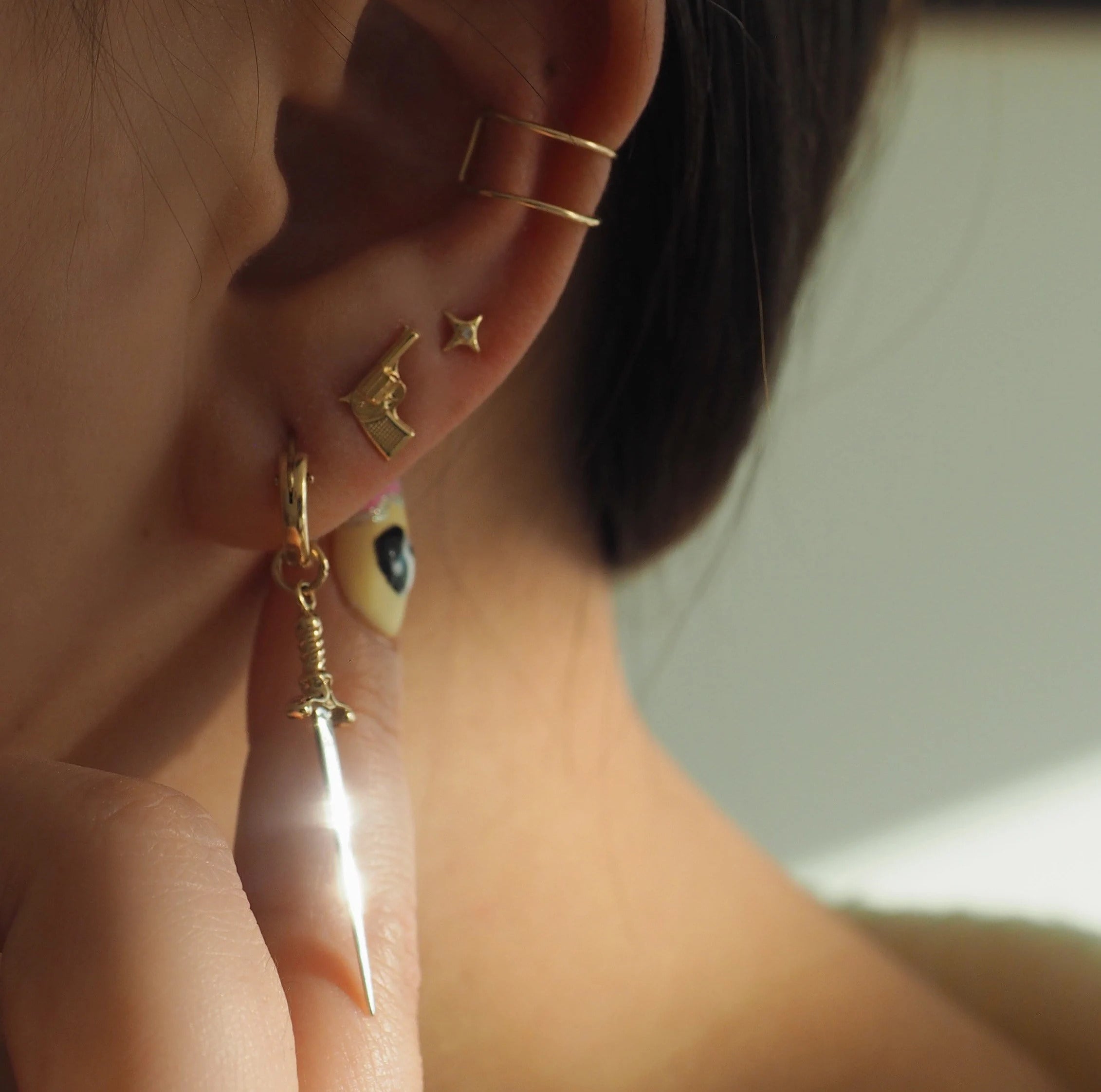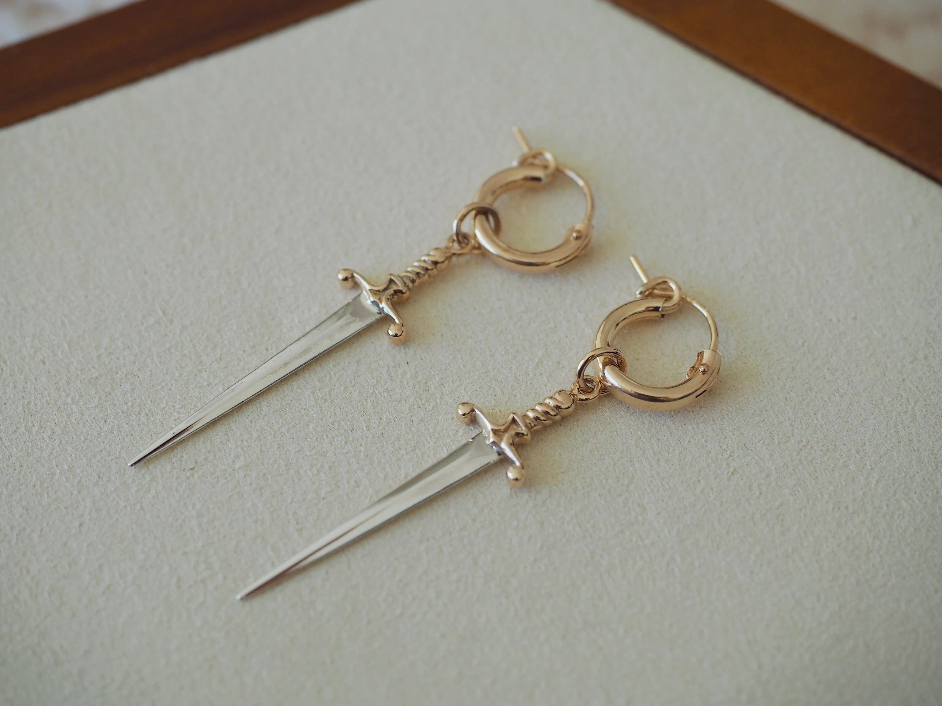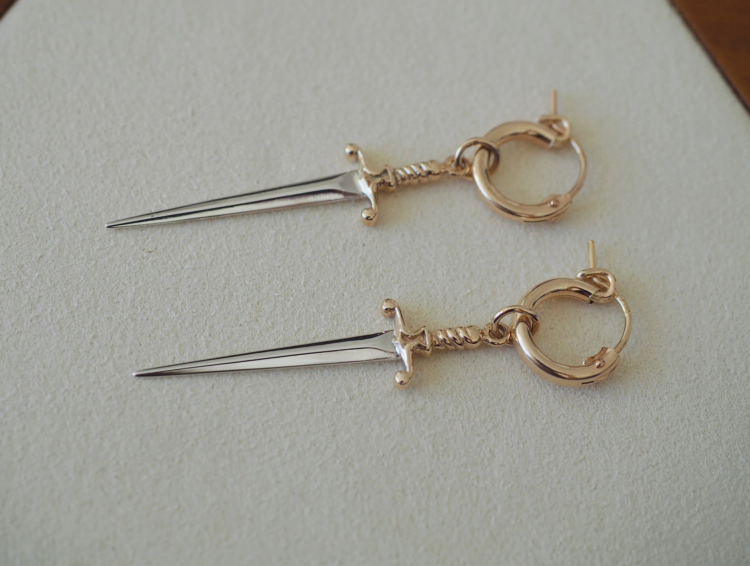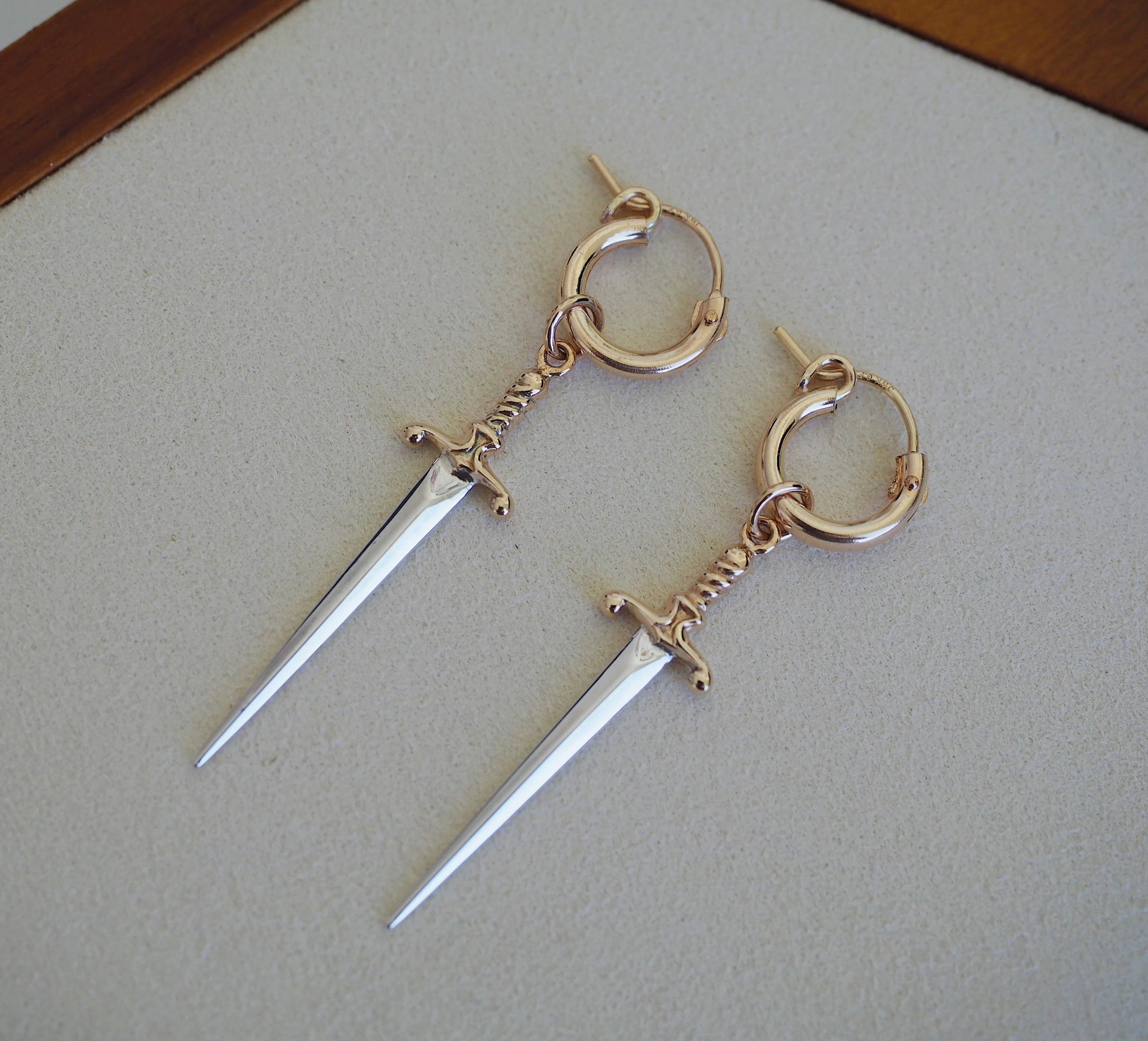14k Gold Filled Hoops with Sword Charm | Sold as Pair