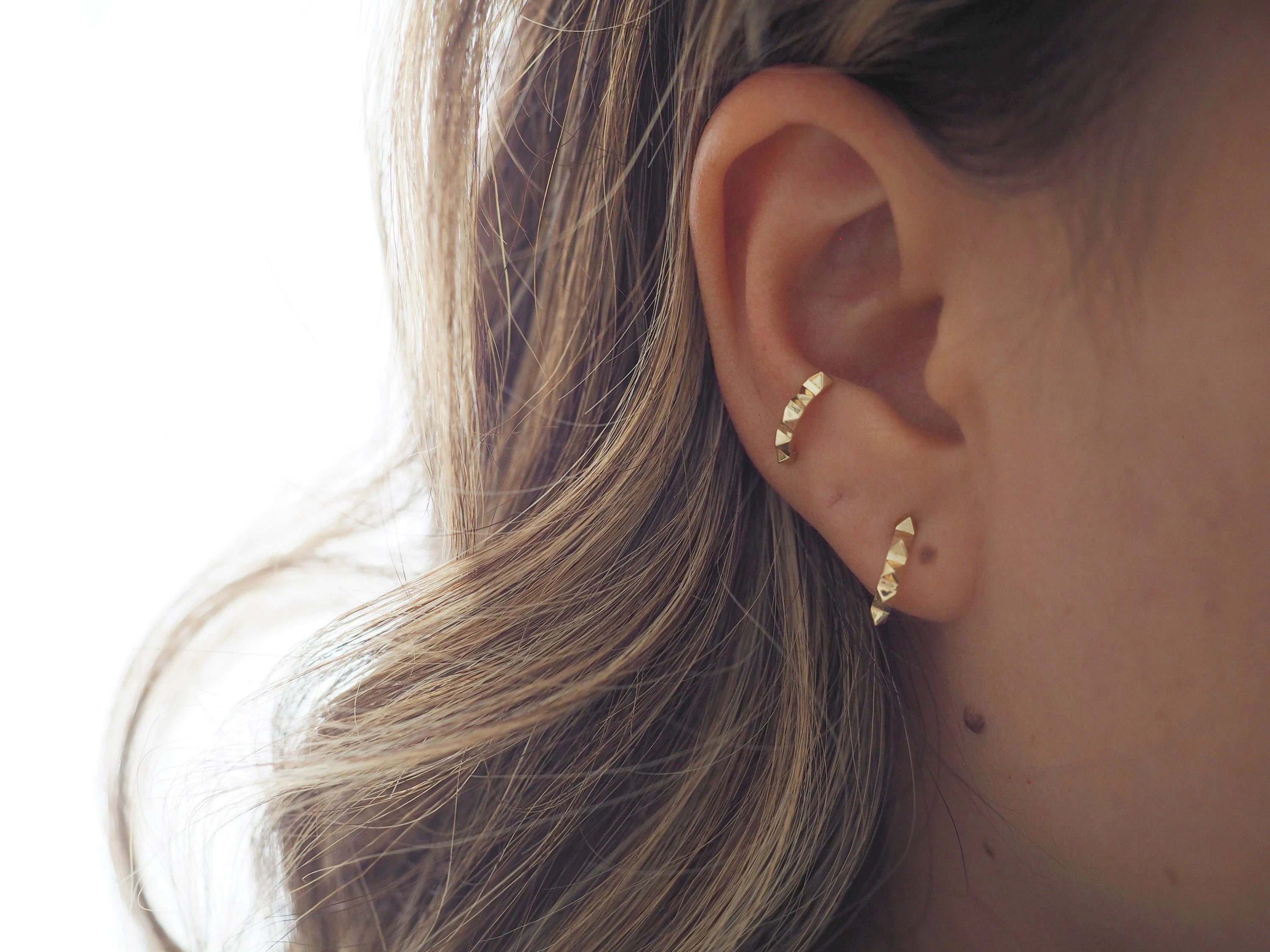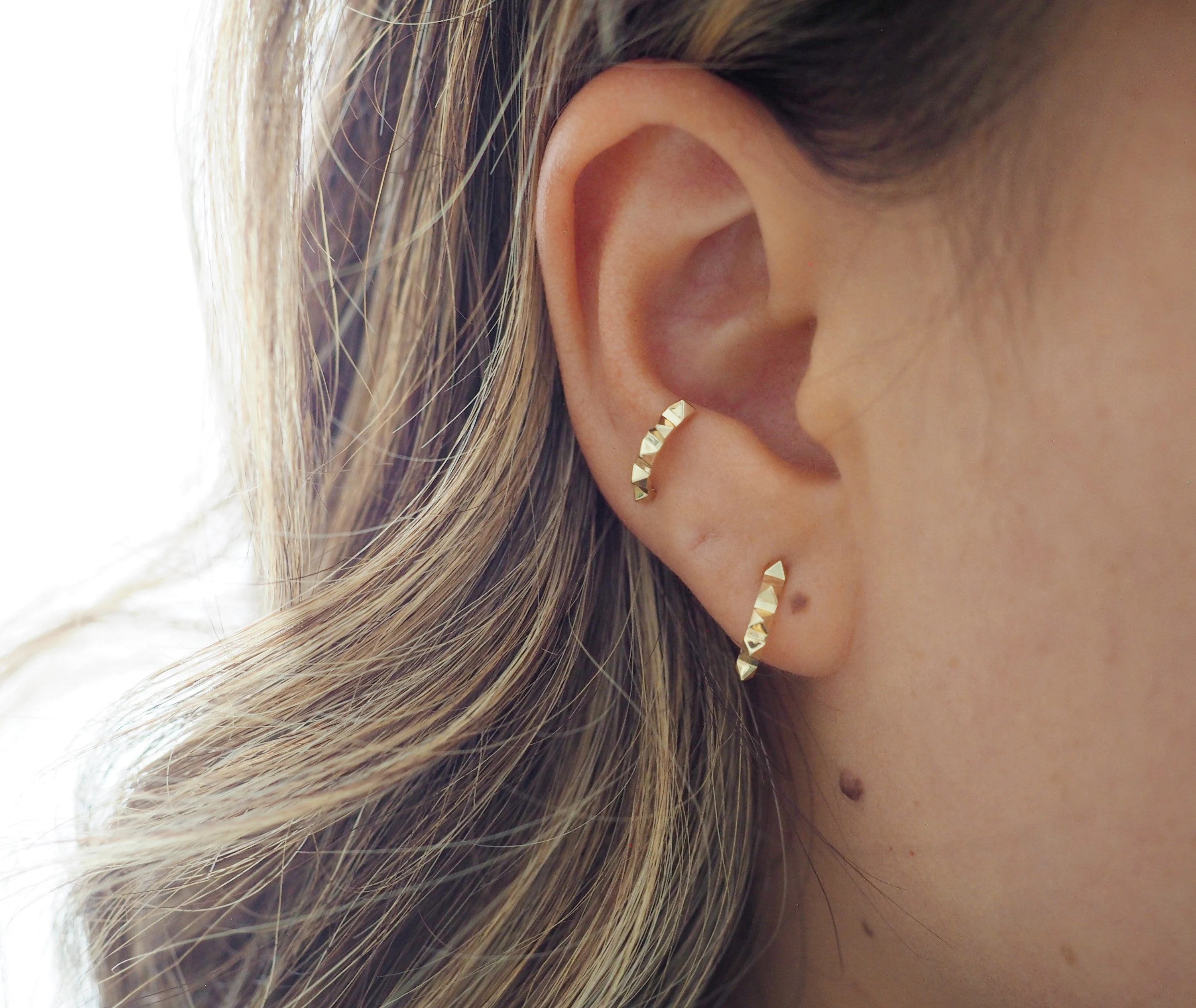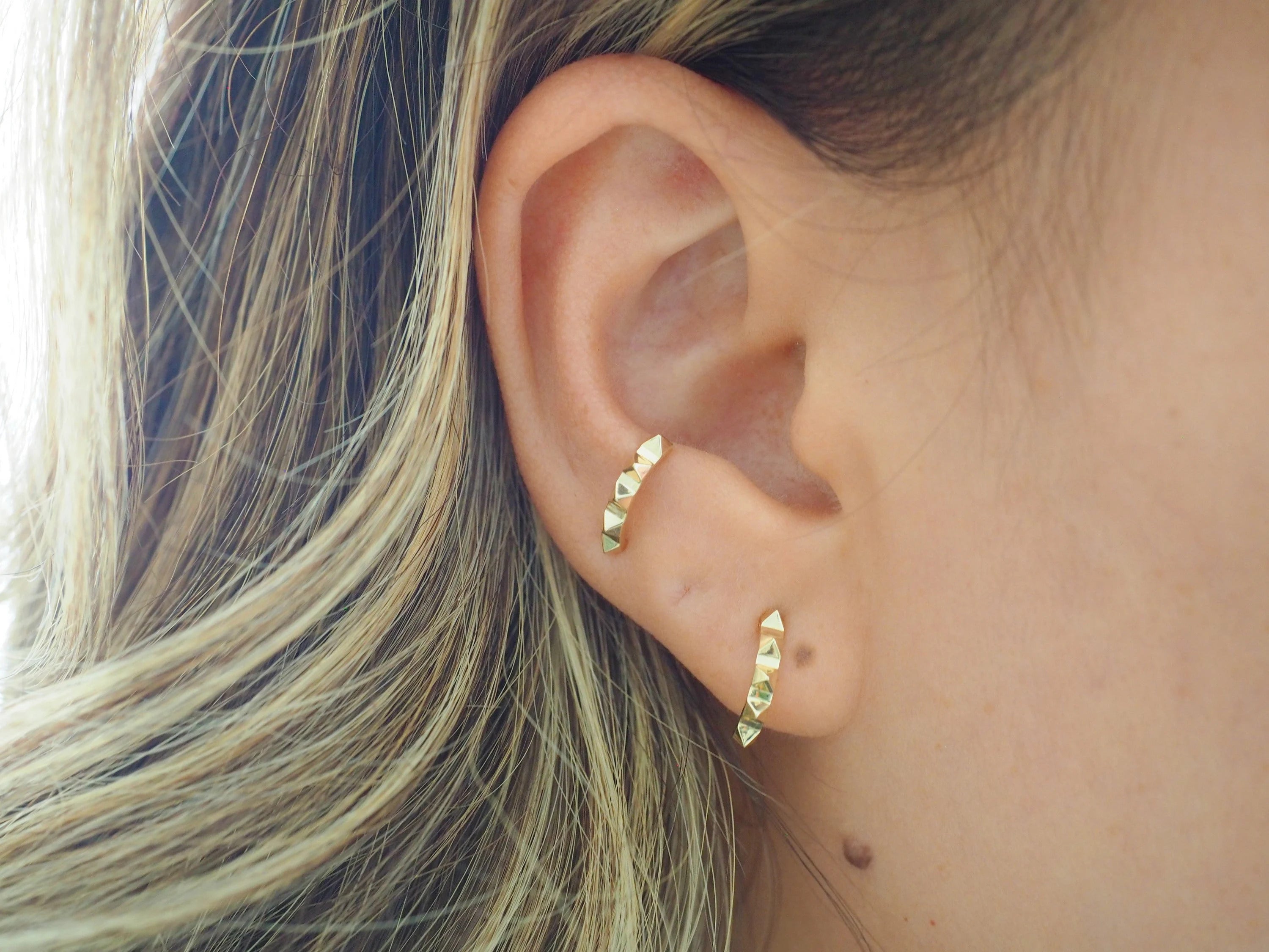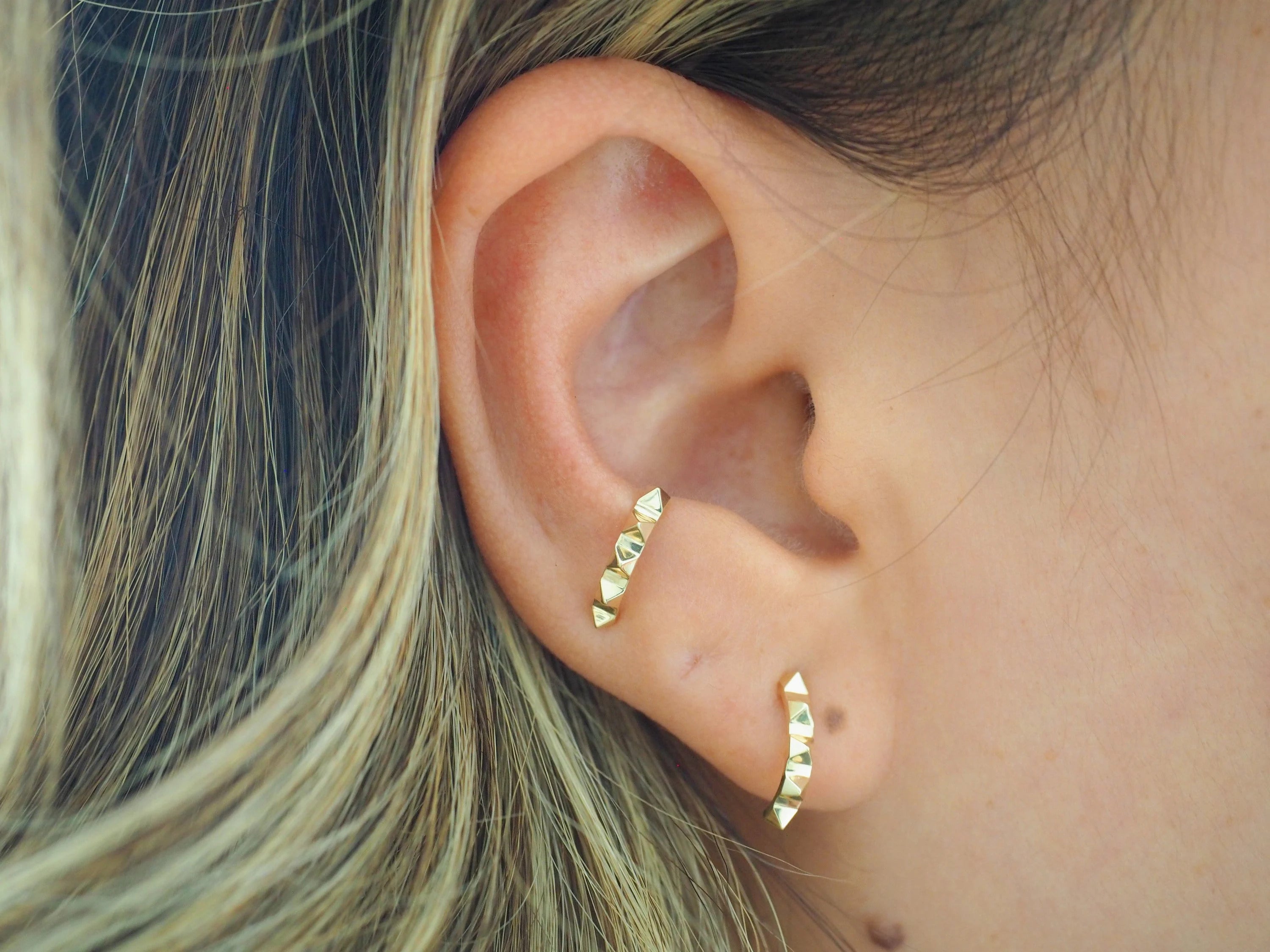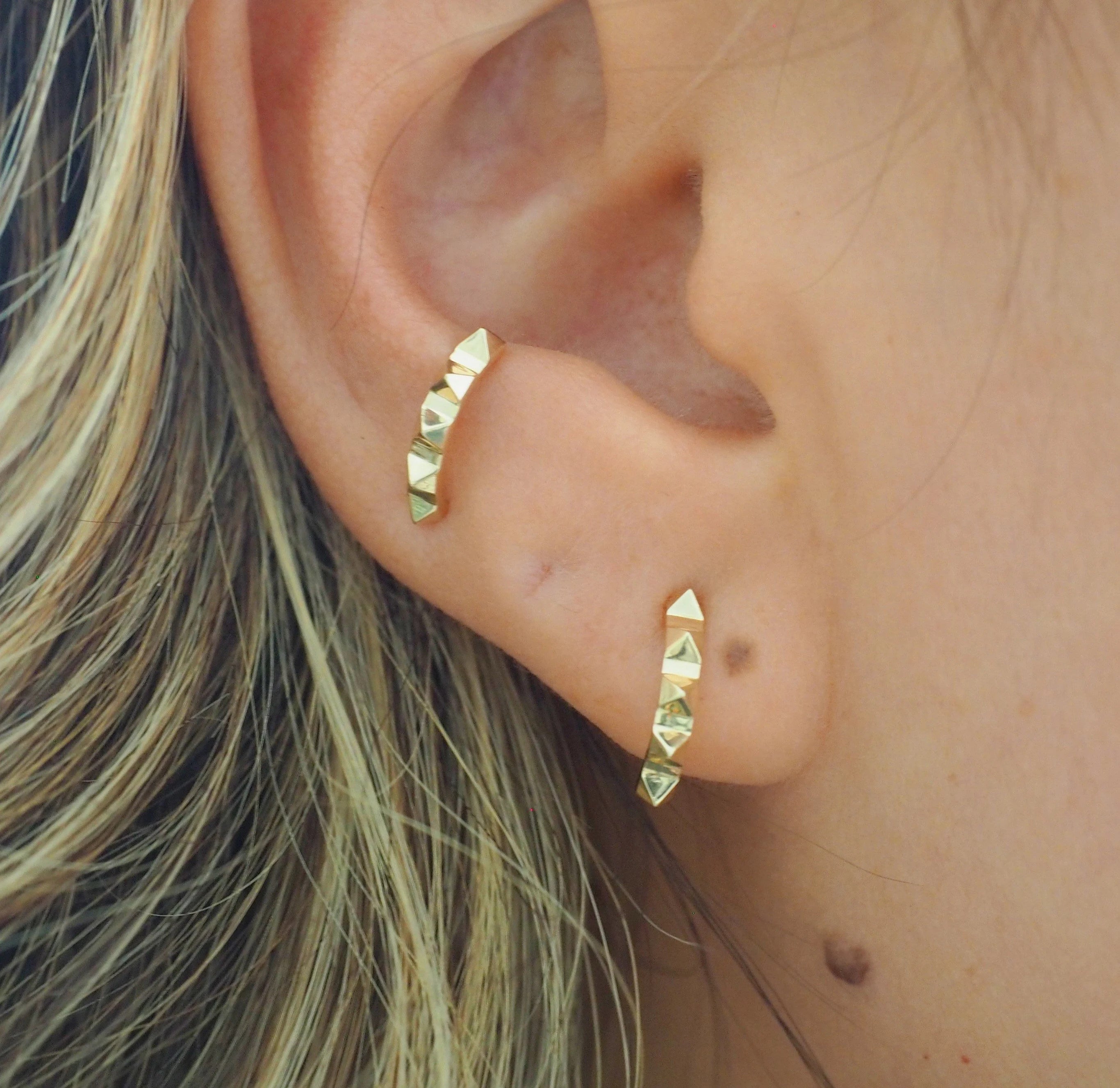 14k SOLID GOLD Mini Spike Half Hoop Earrings | Sold As Pair