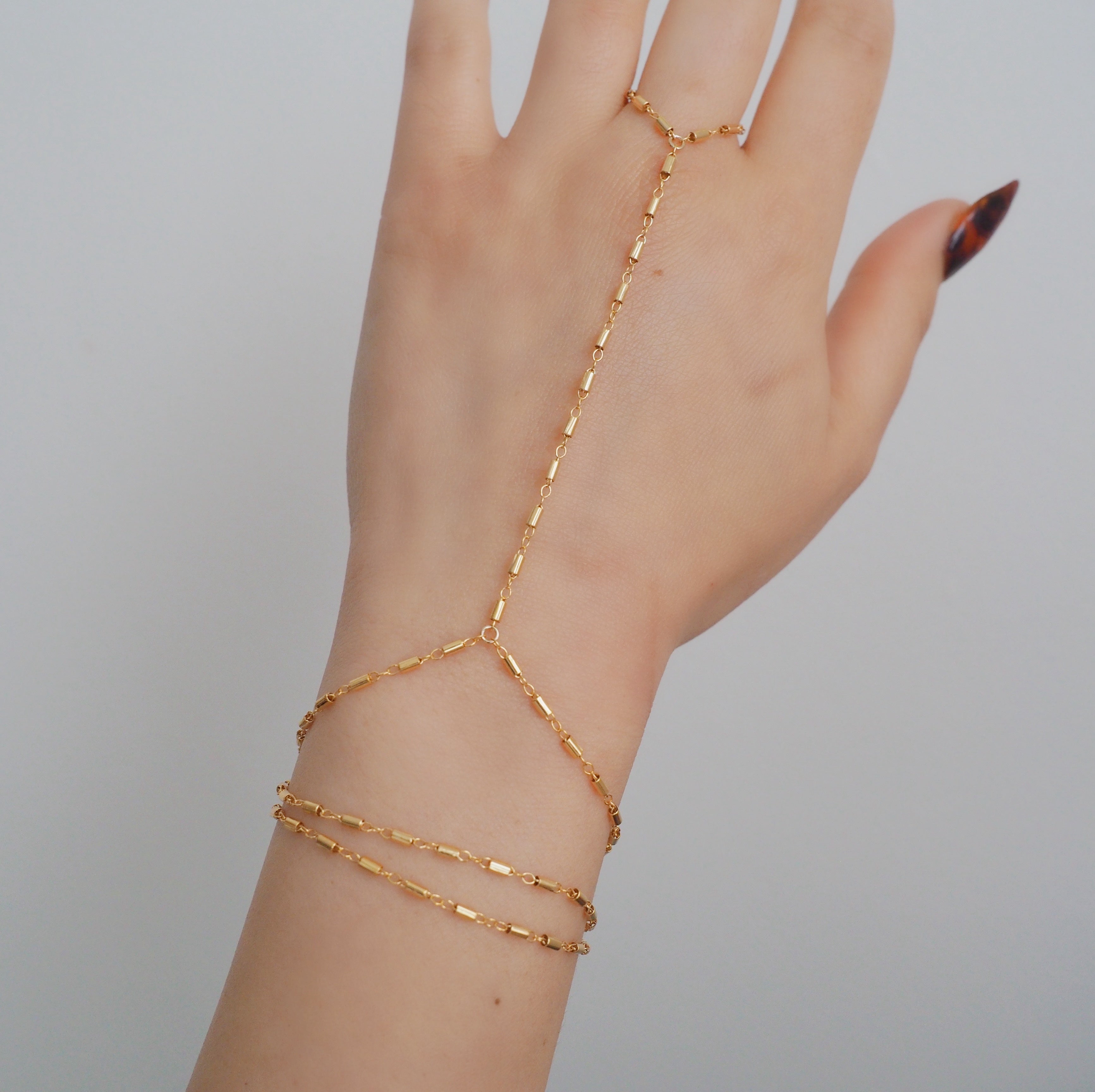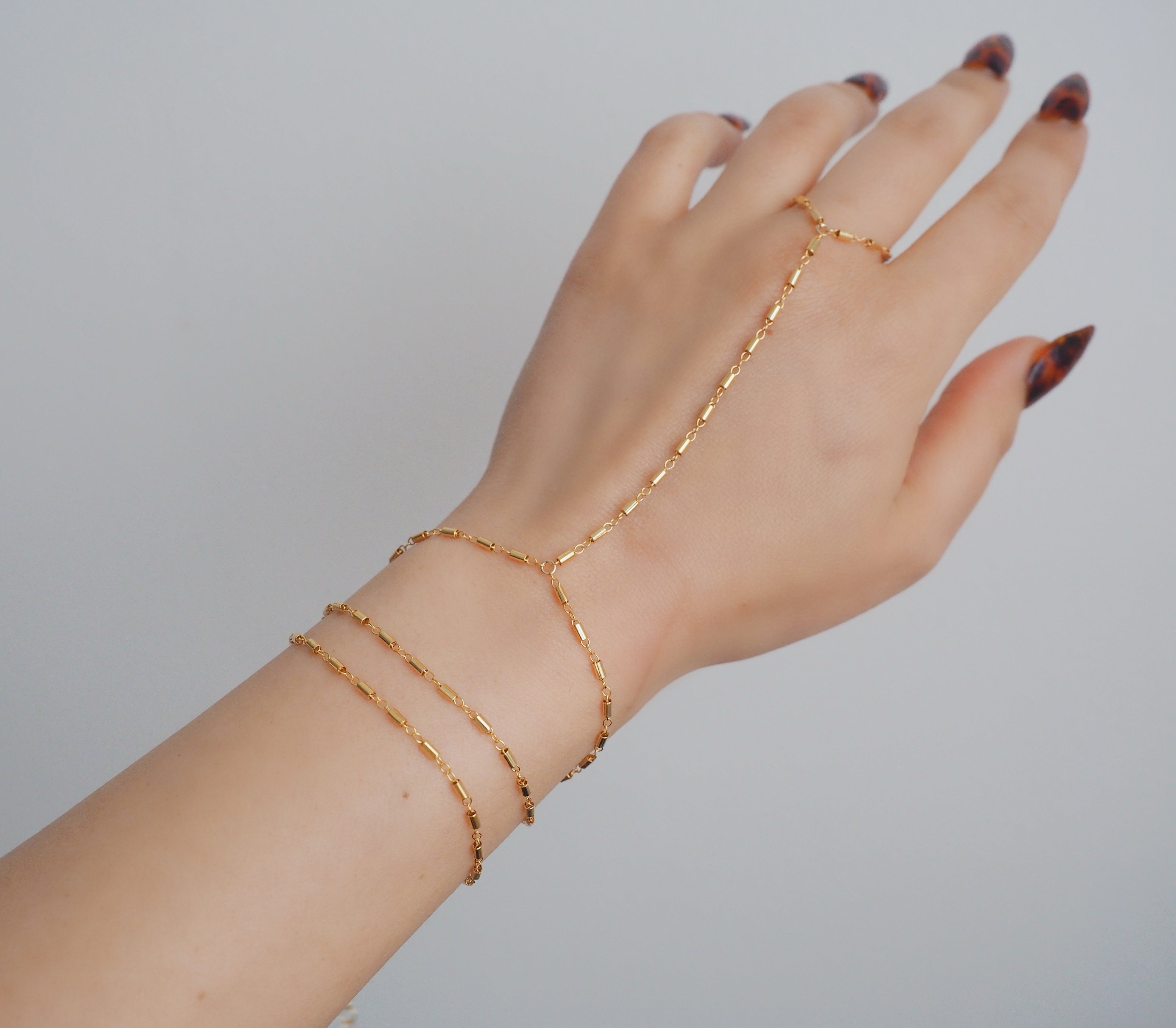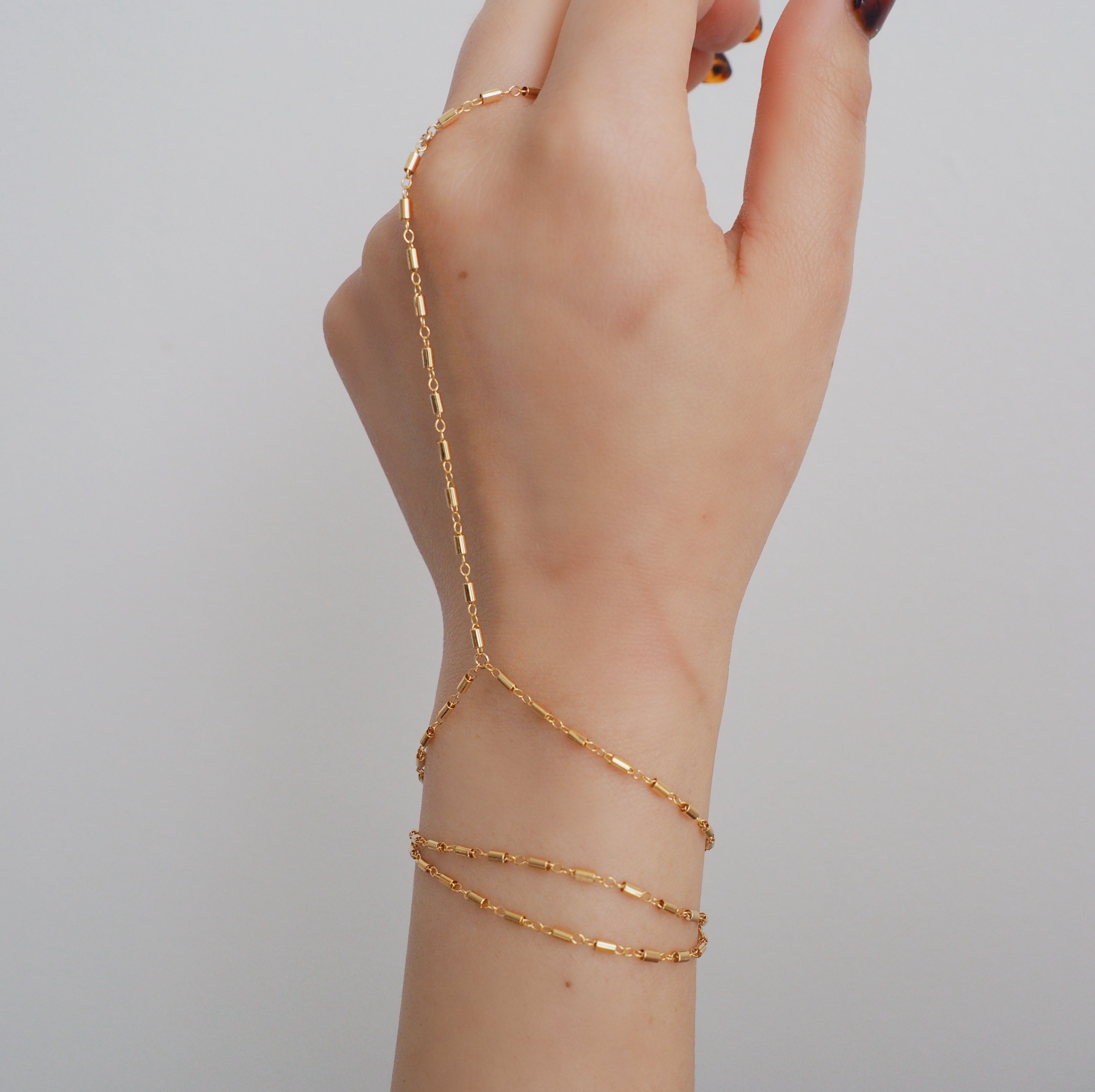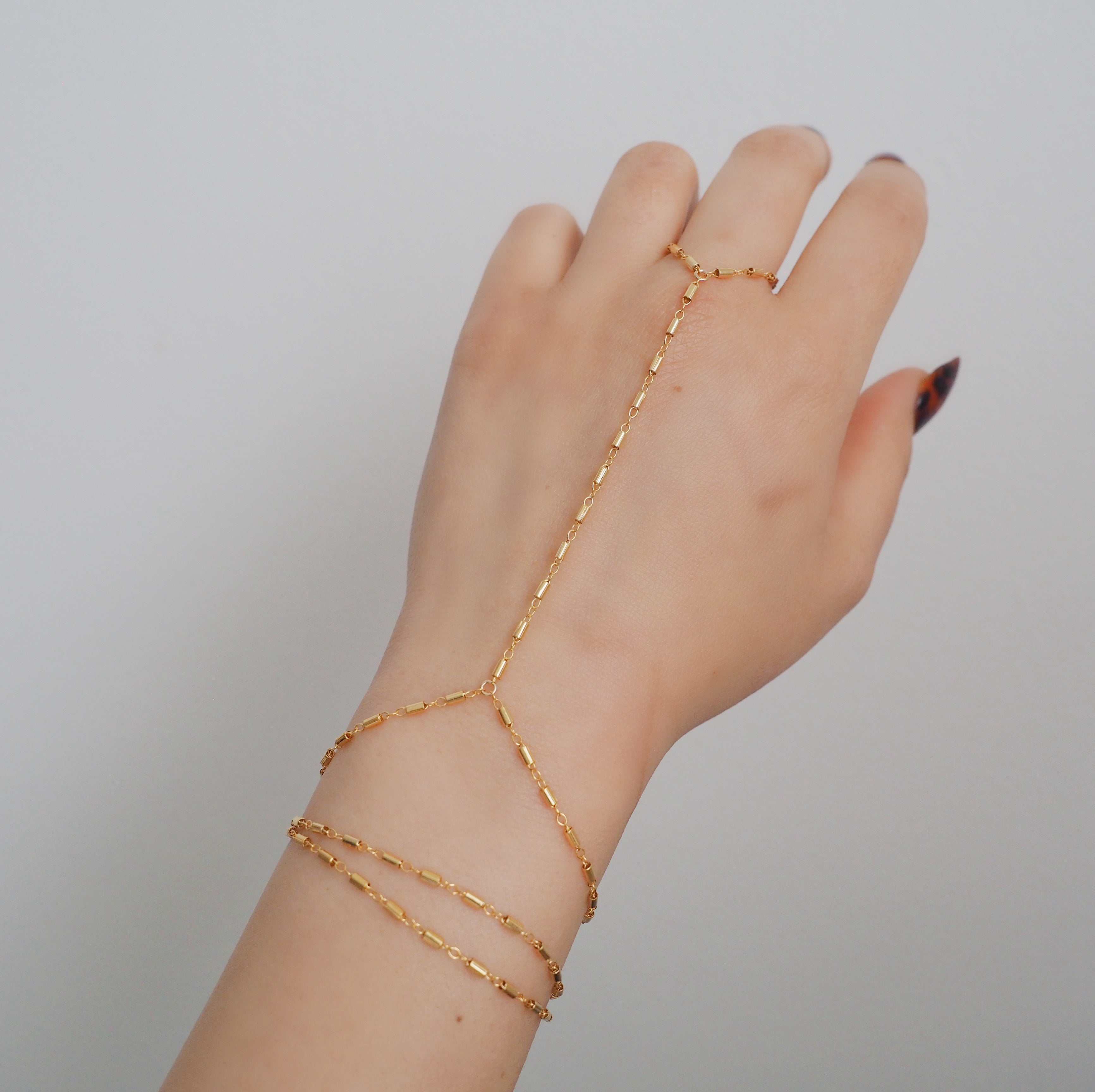 14k Gold Filled Bohemian Wrap Hand Piece Bracelet