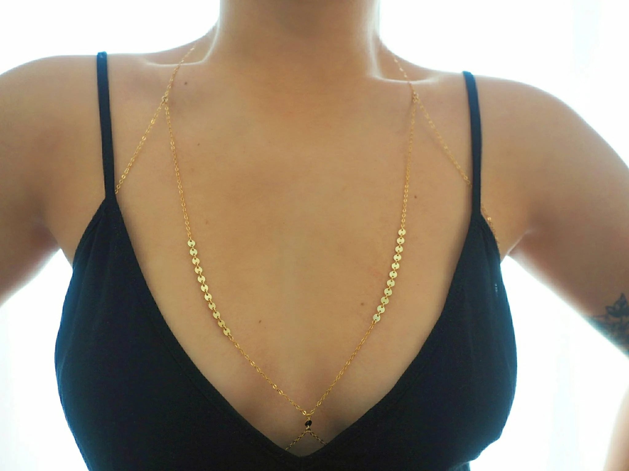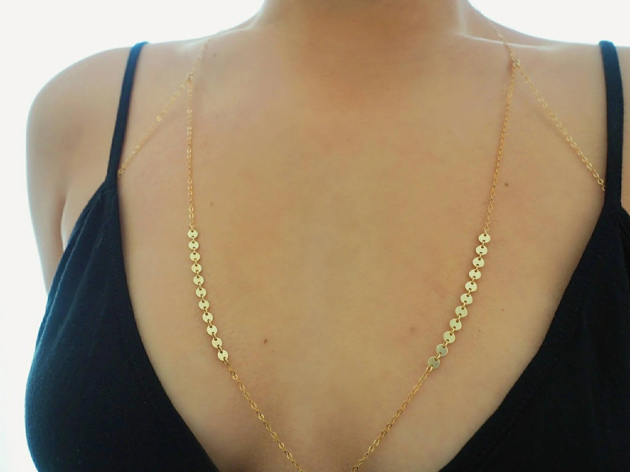 14k Gold Filled Coin Discs Dainty Chain Bralette Halter Top Body Chain VERSION 2.0