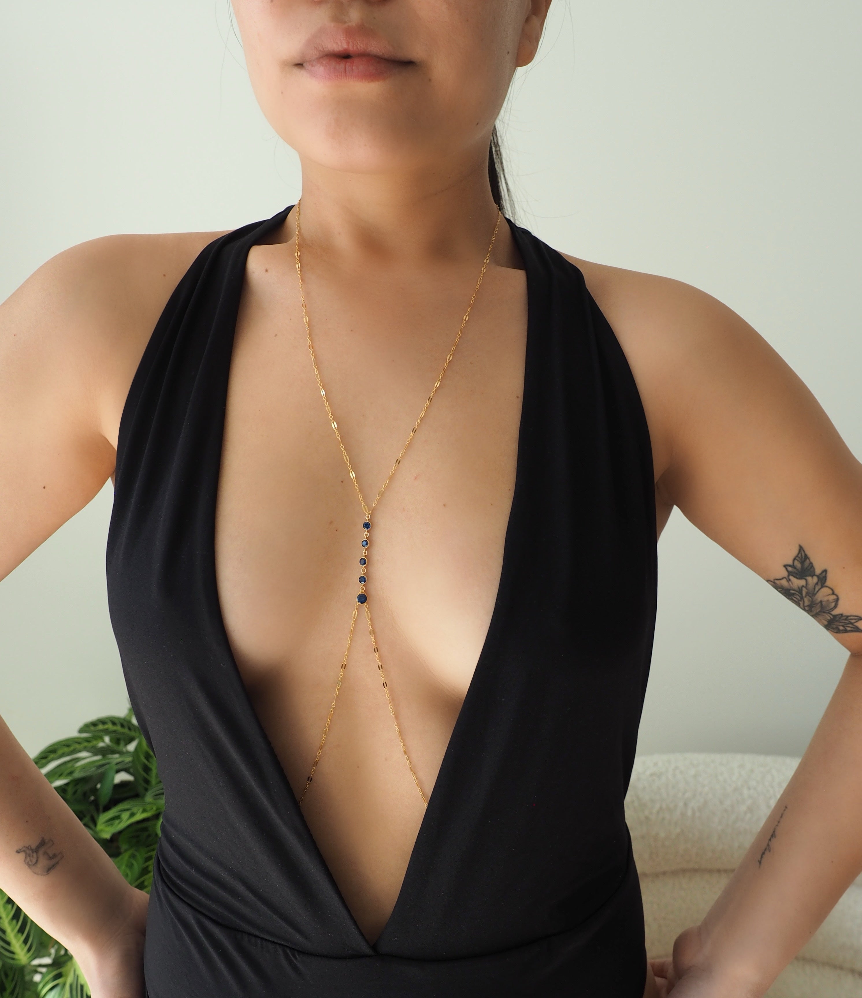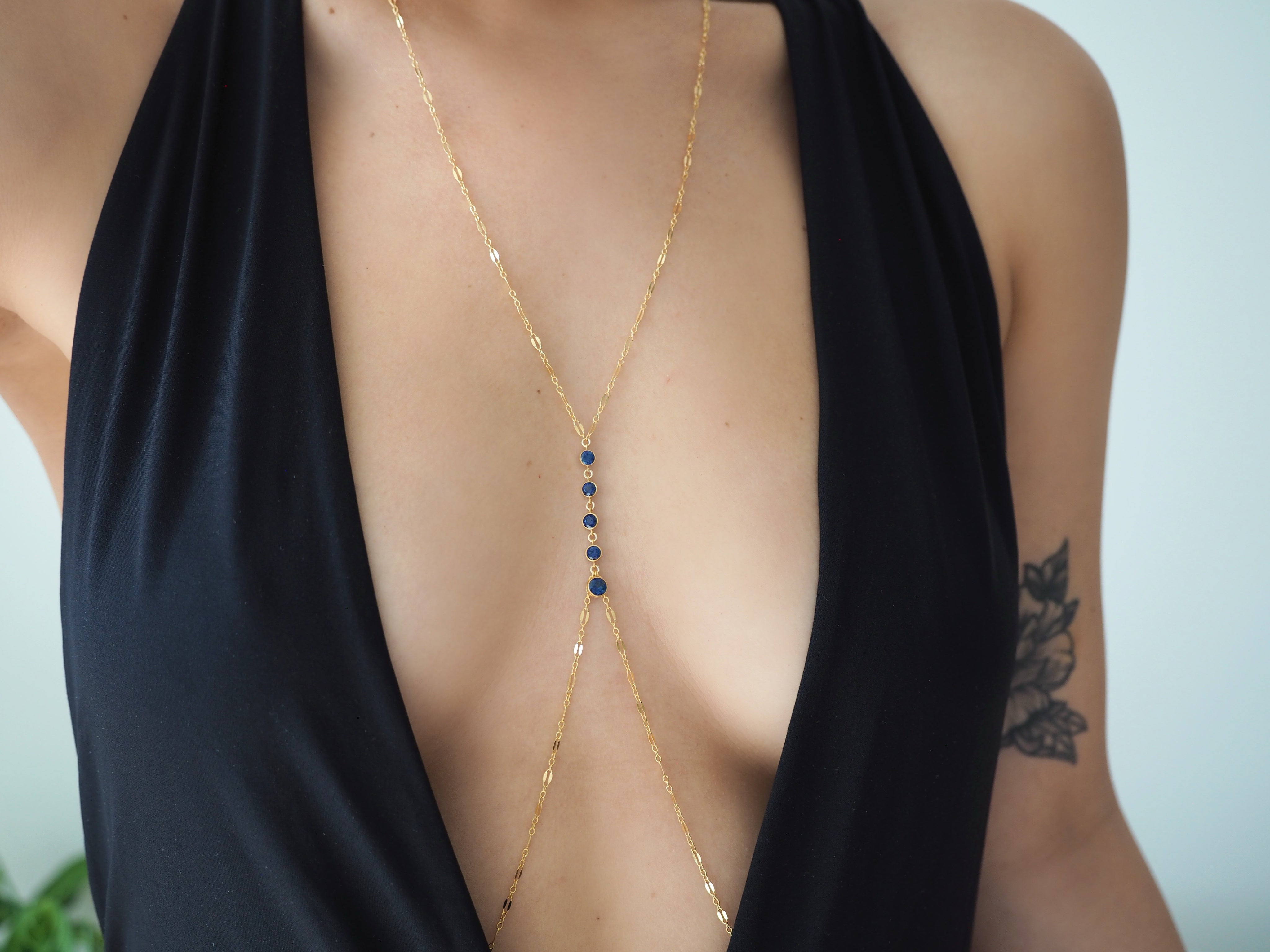 14k Gold Filled Dangling SAPPHIRE CZ Sparkle Bar Body Chain