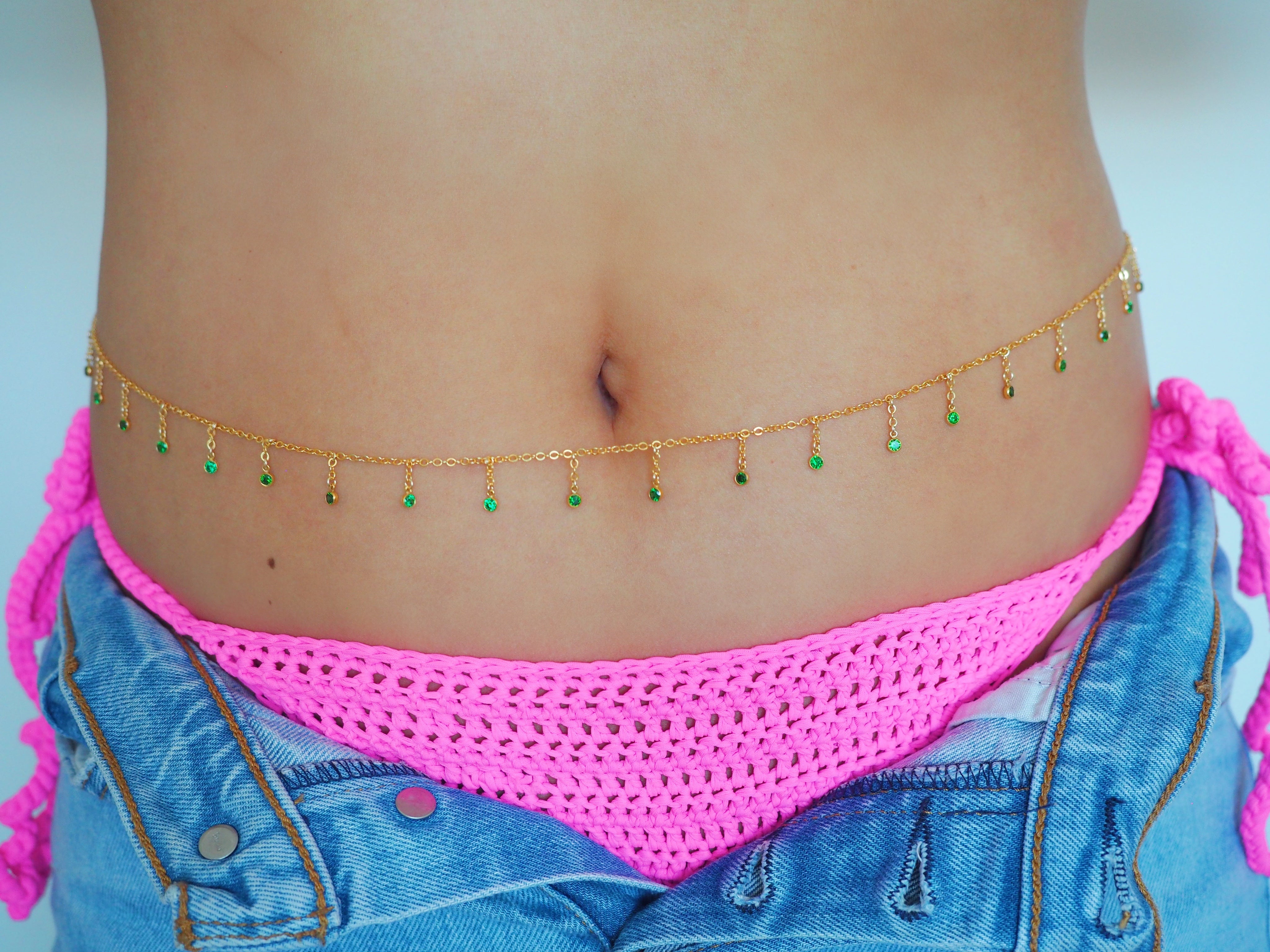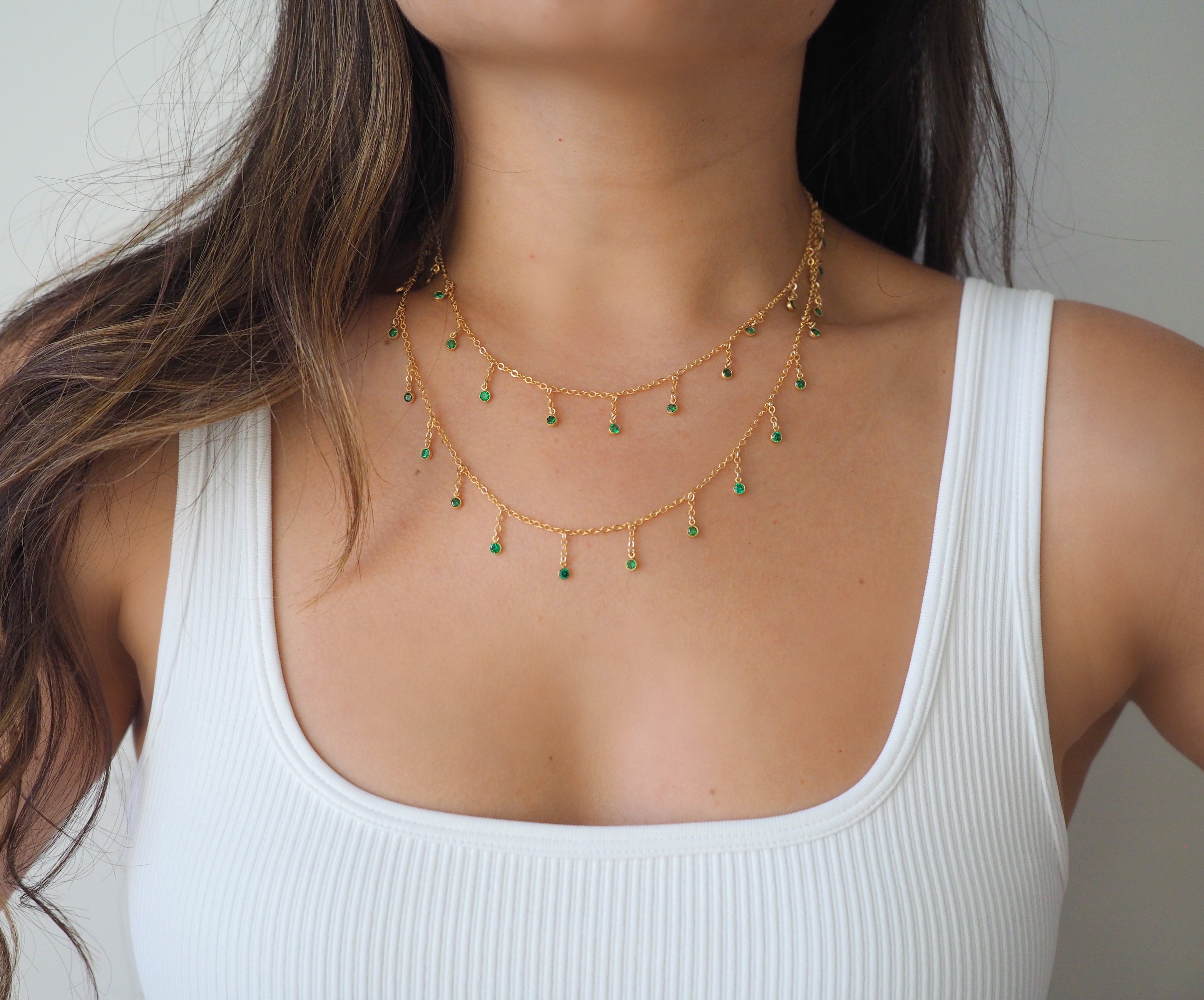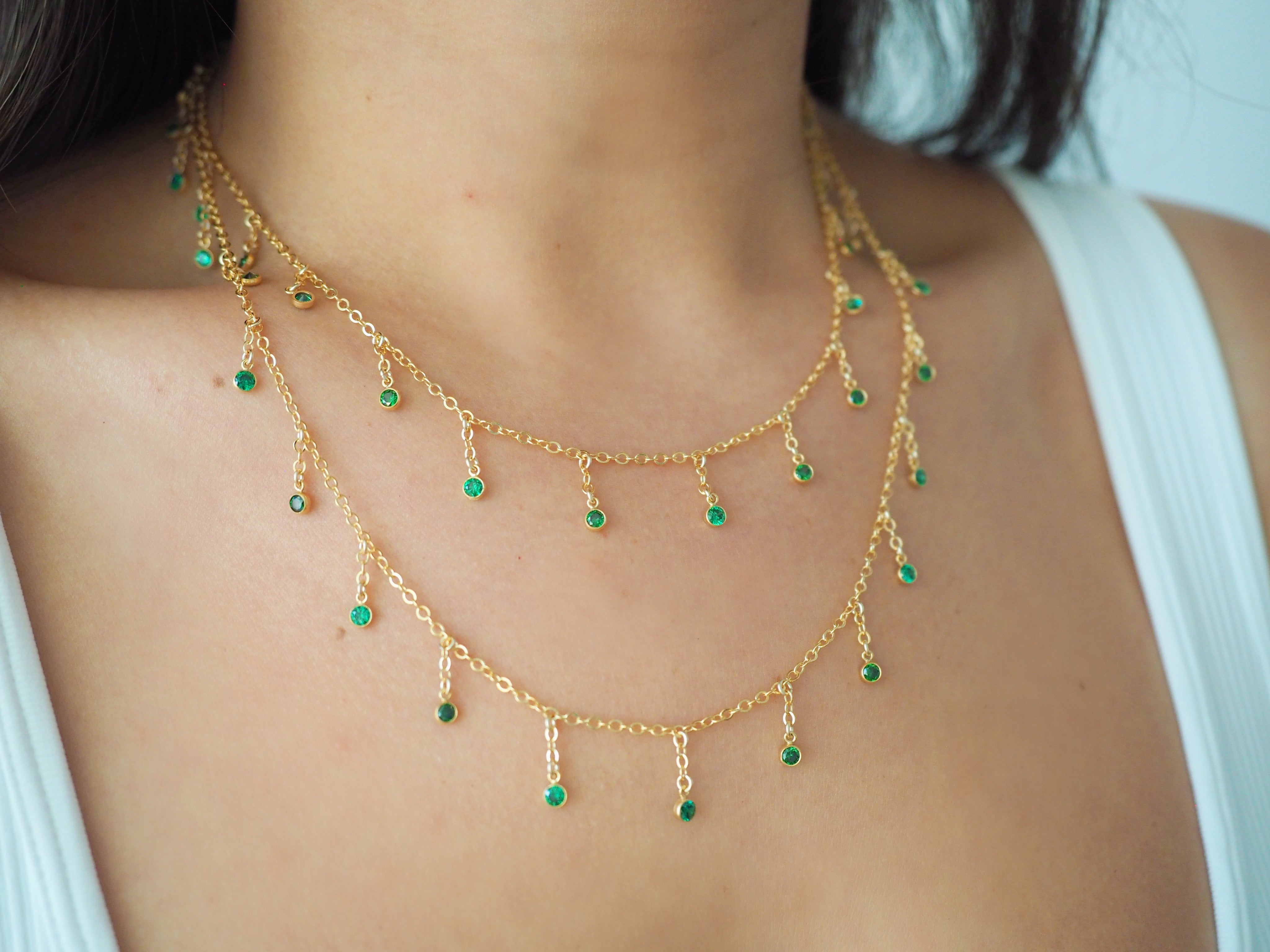 14k Gold Filled Dripping EMERALD CZ Shaker Multiway Necklace, Belly Chain, Bracelet | VERSION 2.0