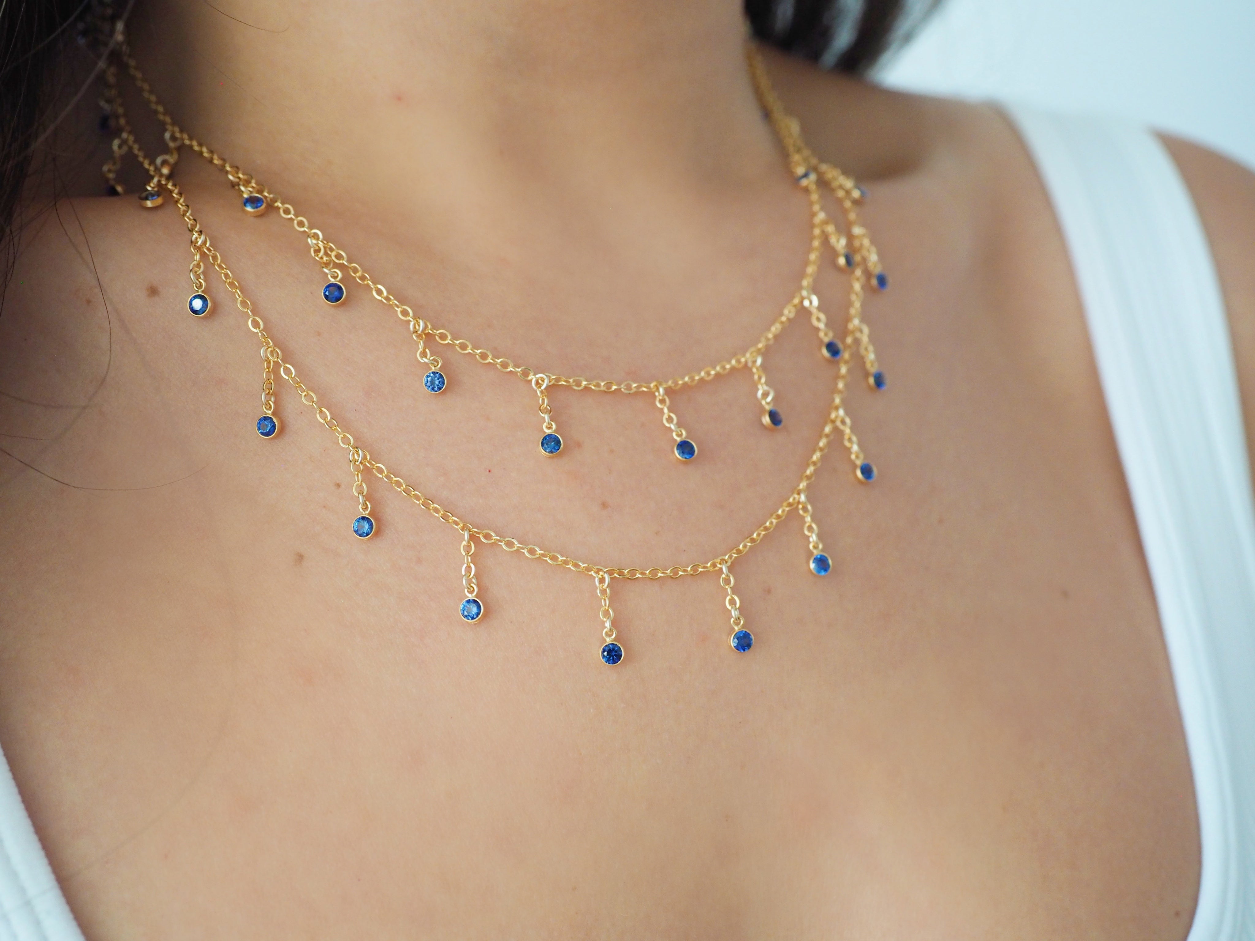 14k Gold Filled Dripping SAPPHIRE CZ Shaker Multiway Necklace, Belly Chain, Bracelet | VERSION 2.0