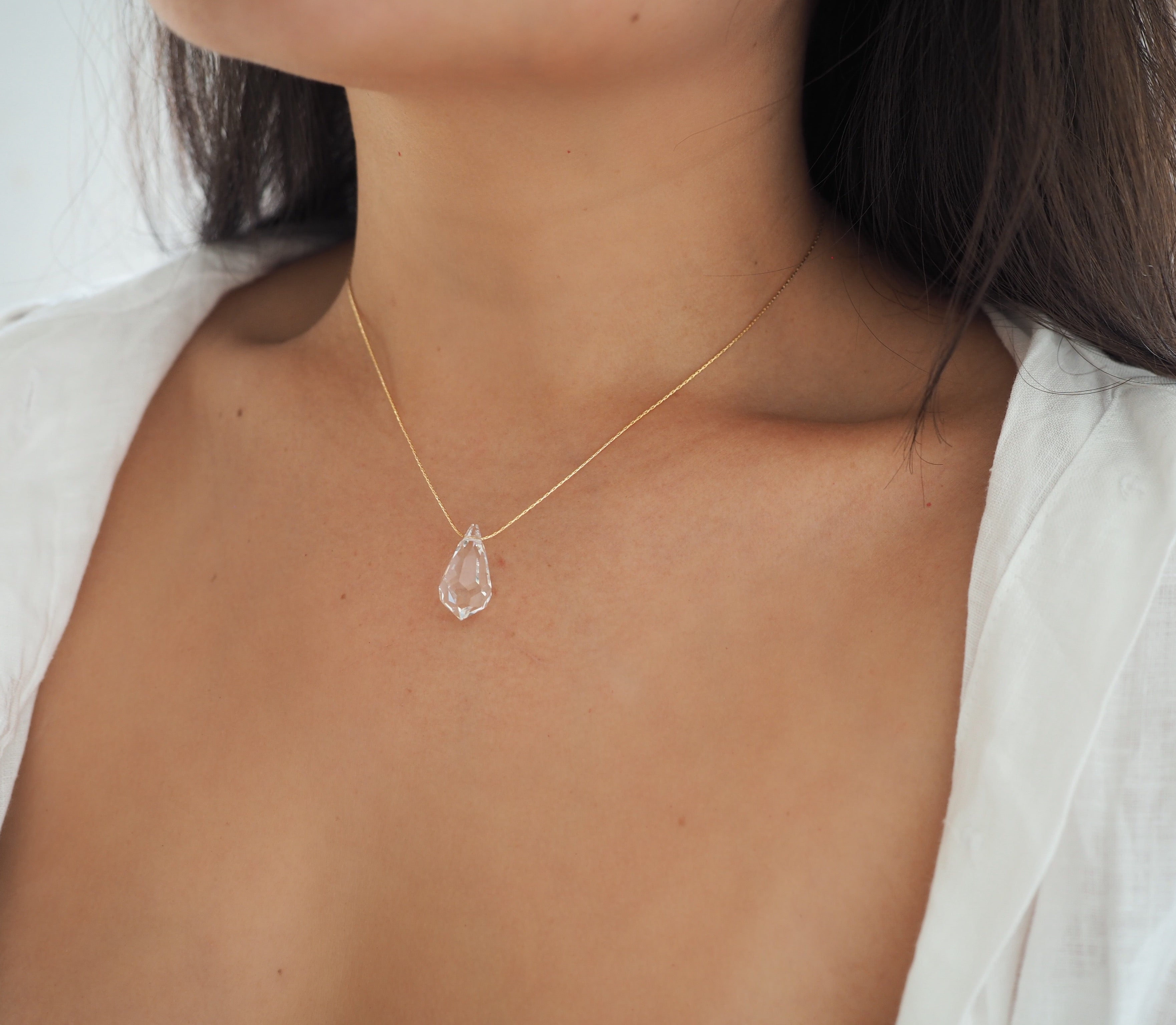 14k Gold Filled Floating Crystal Teardrop Minimalist Necklace