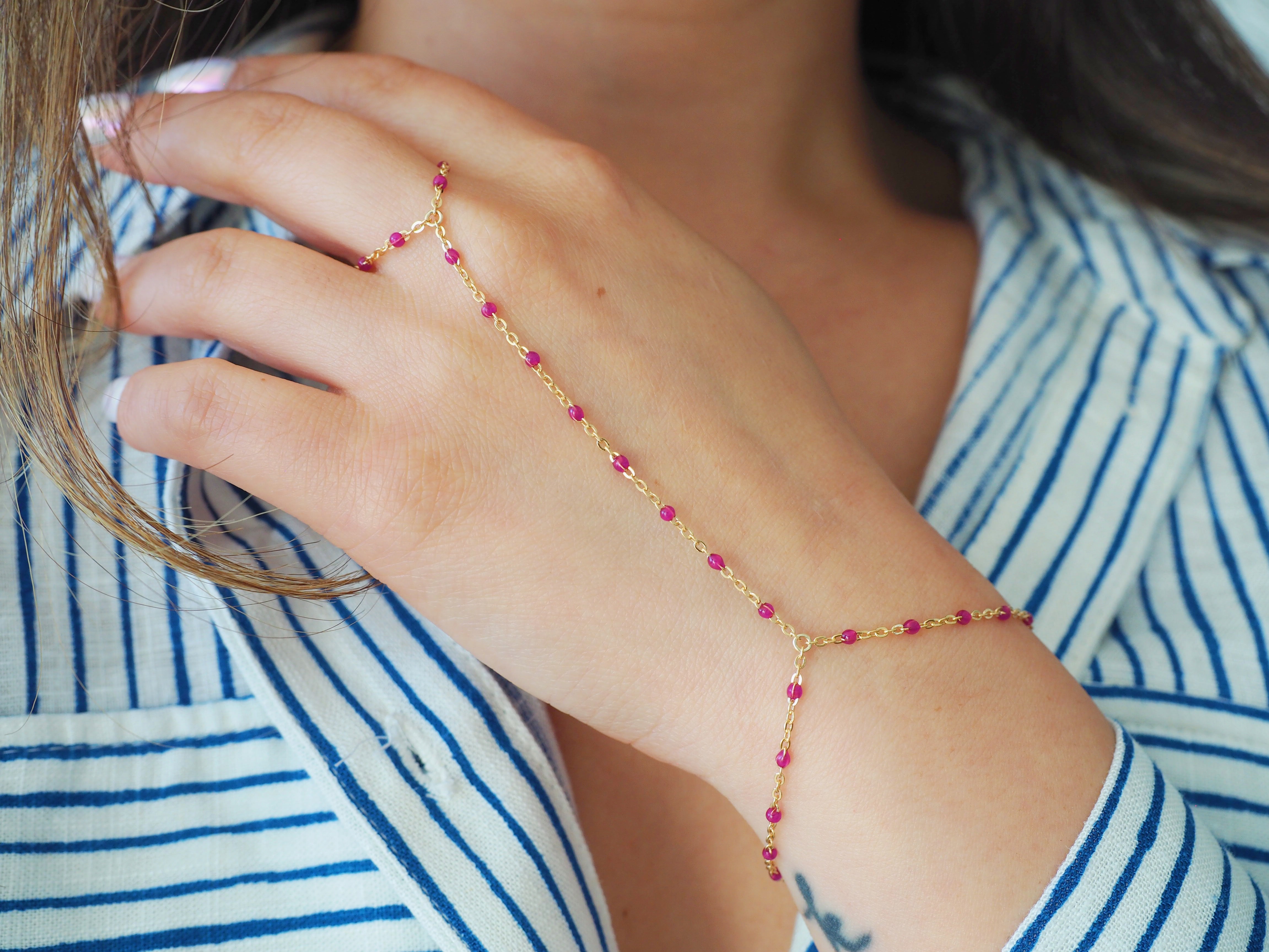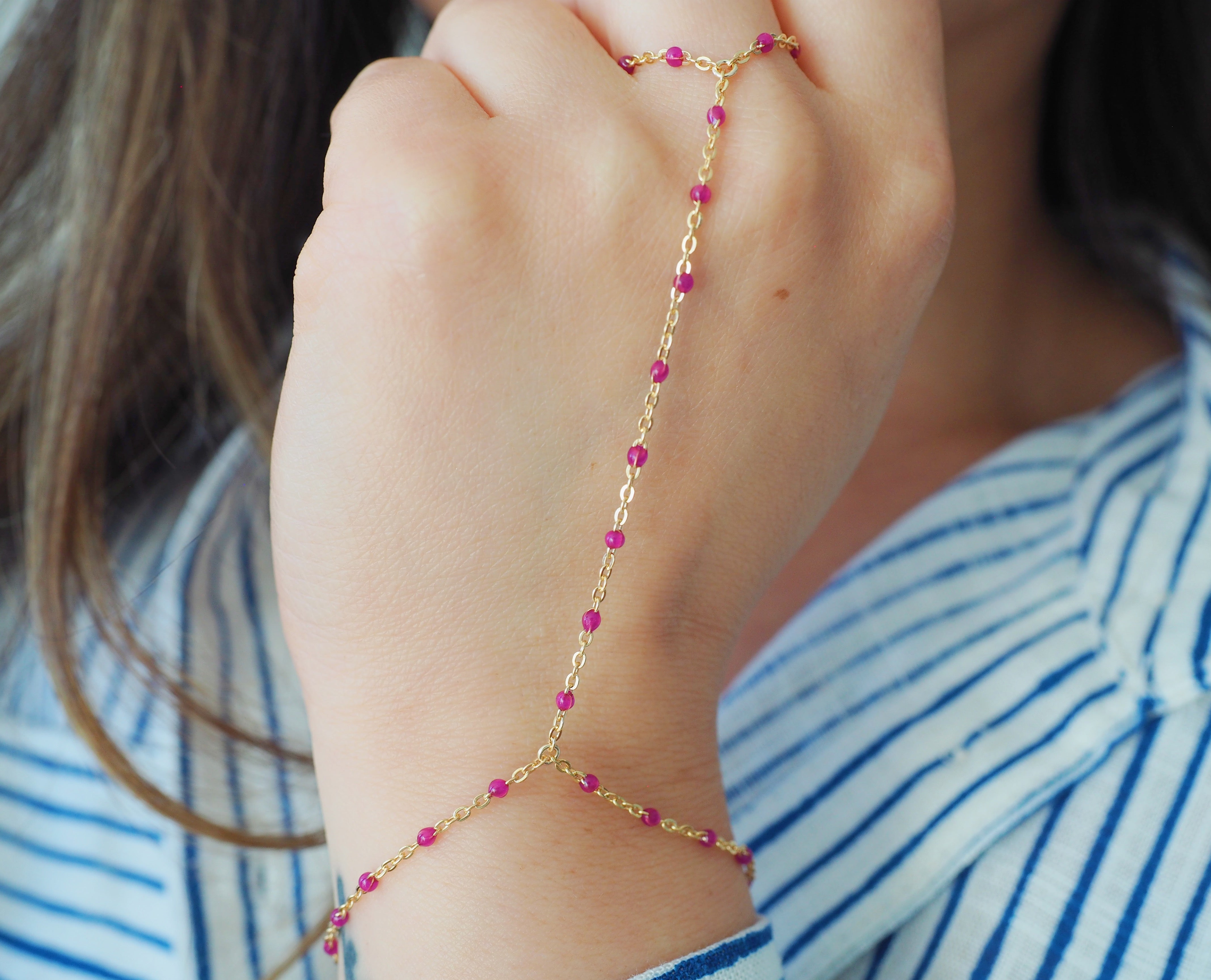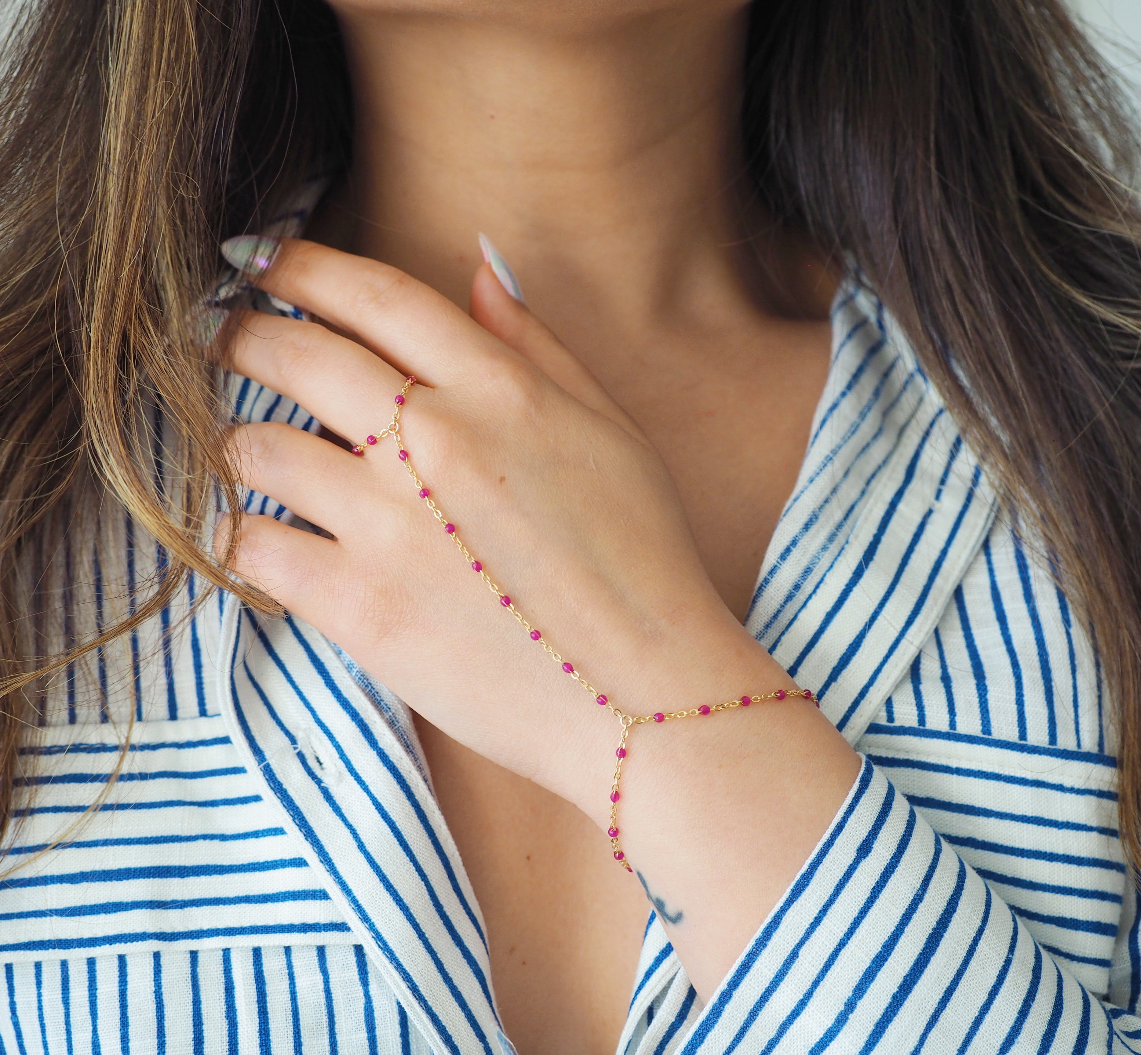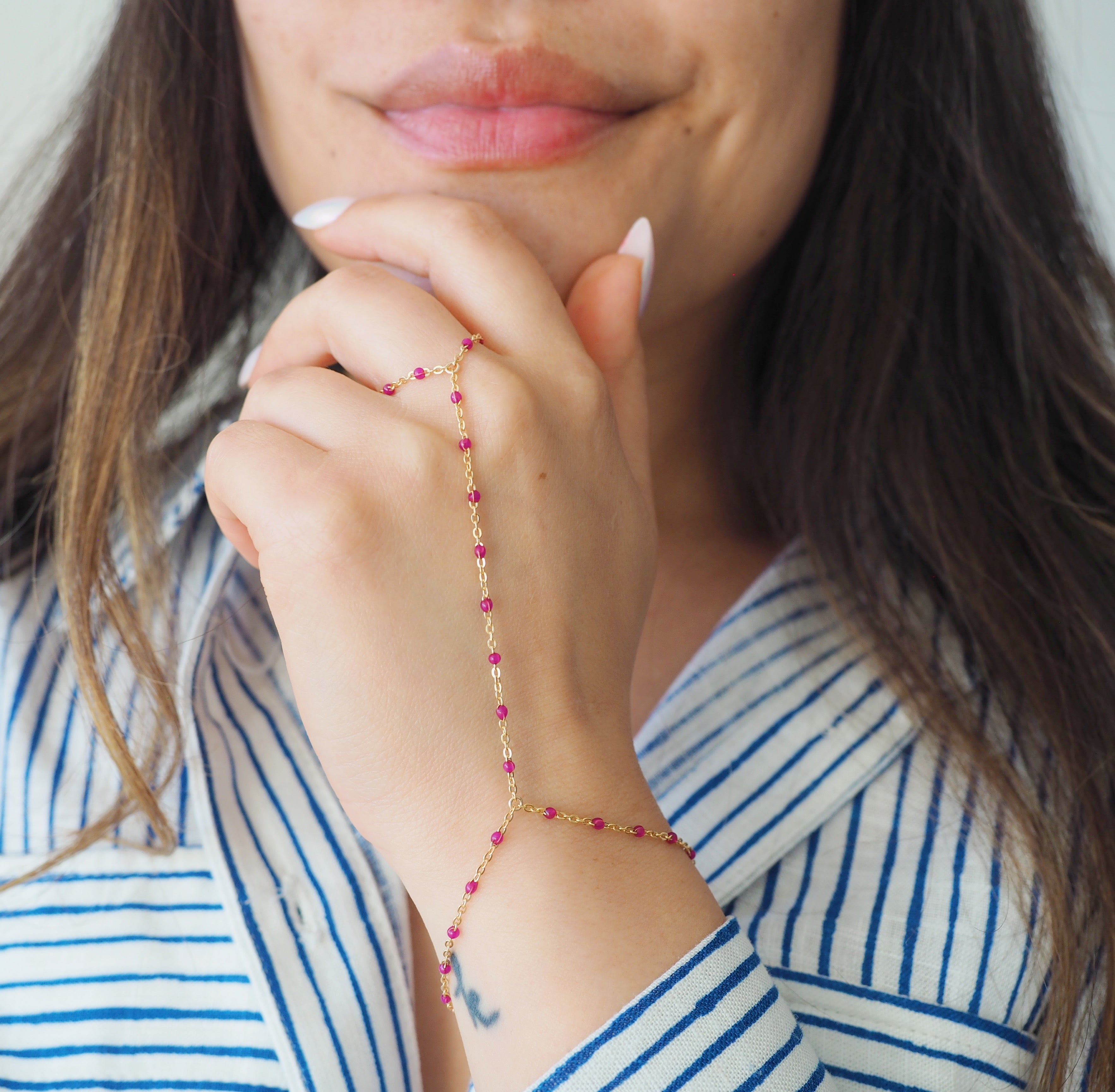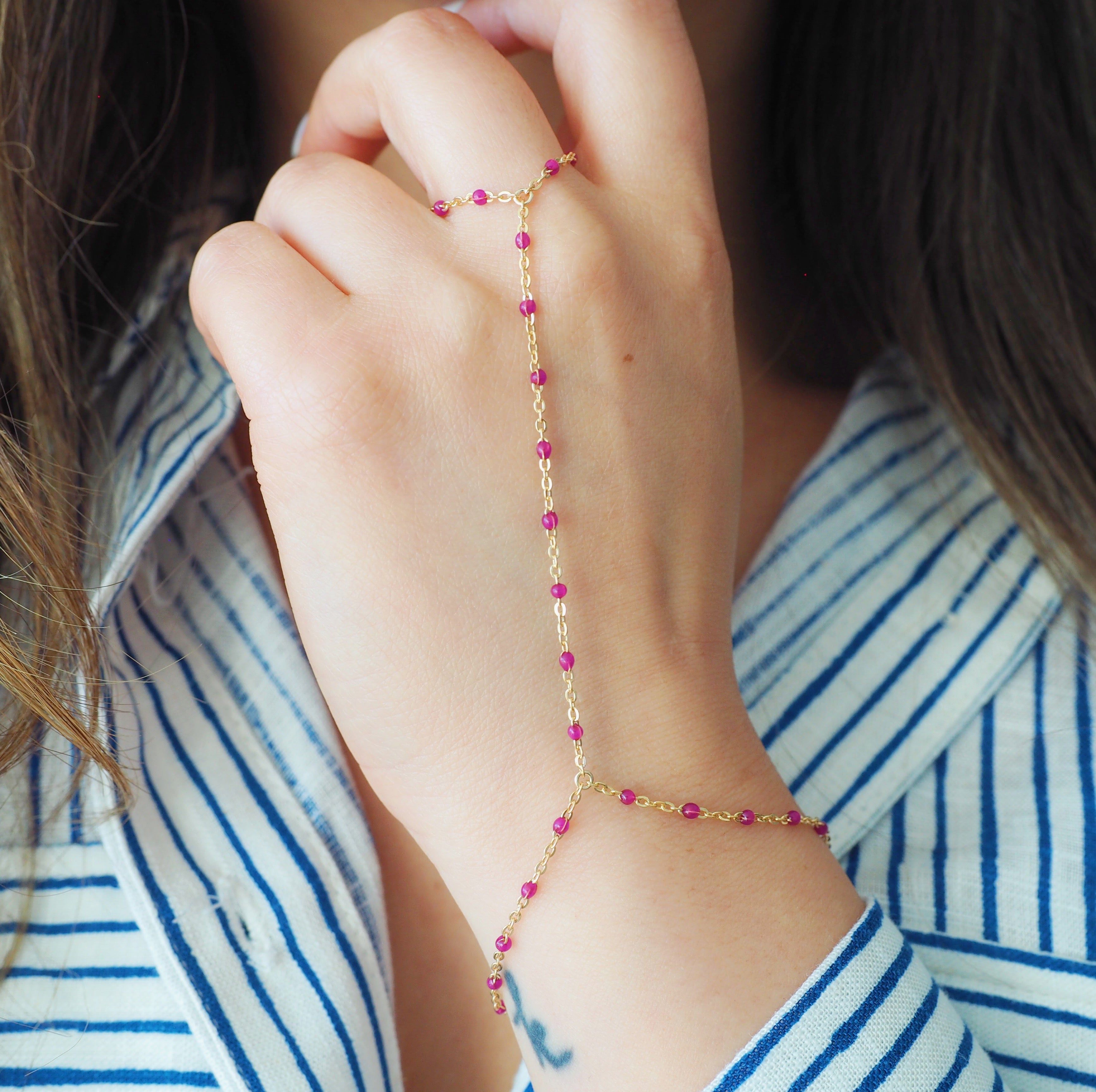 14k Gold Filled Magenta Beaded Chain Hand Piece