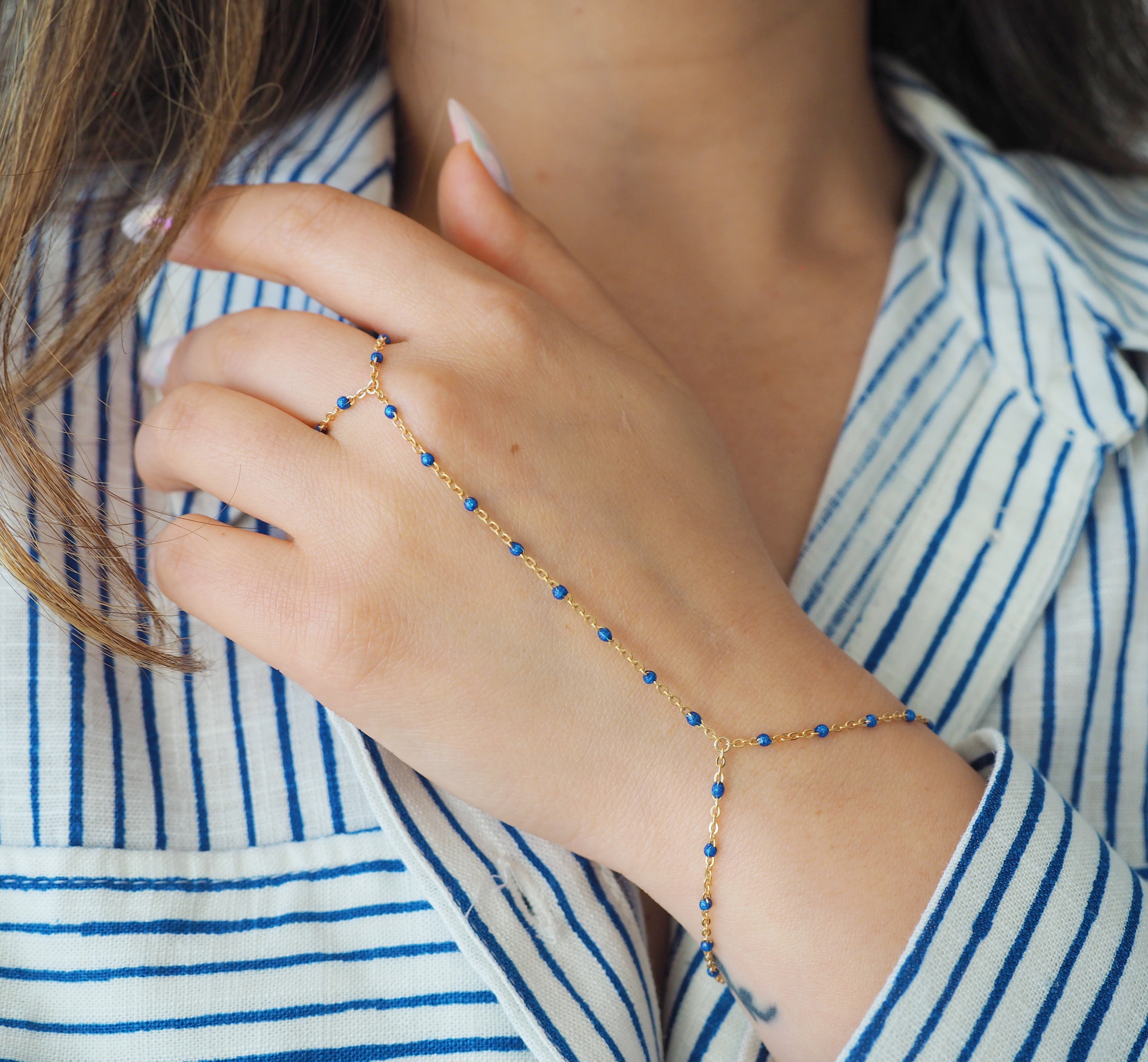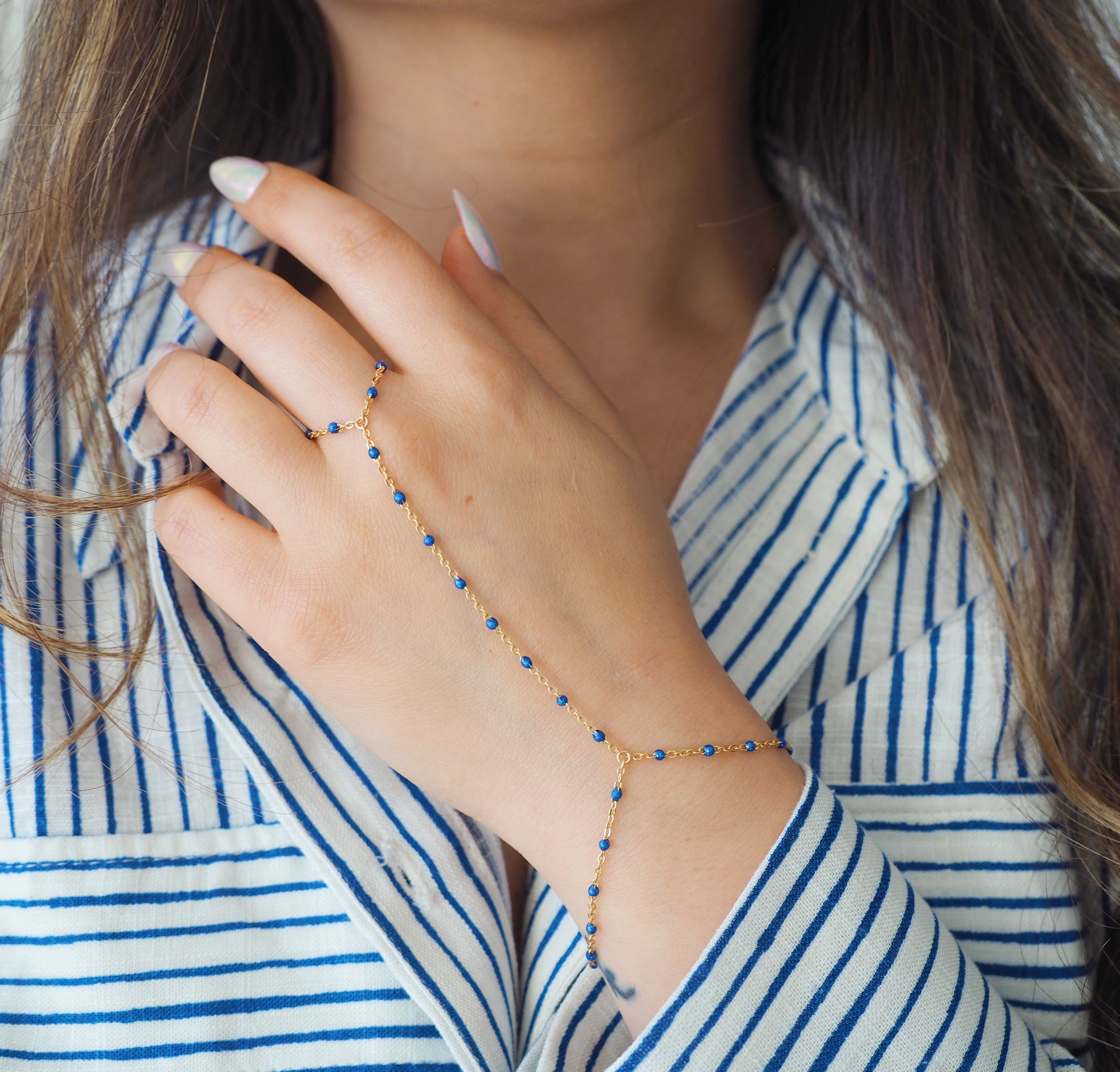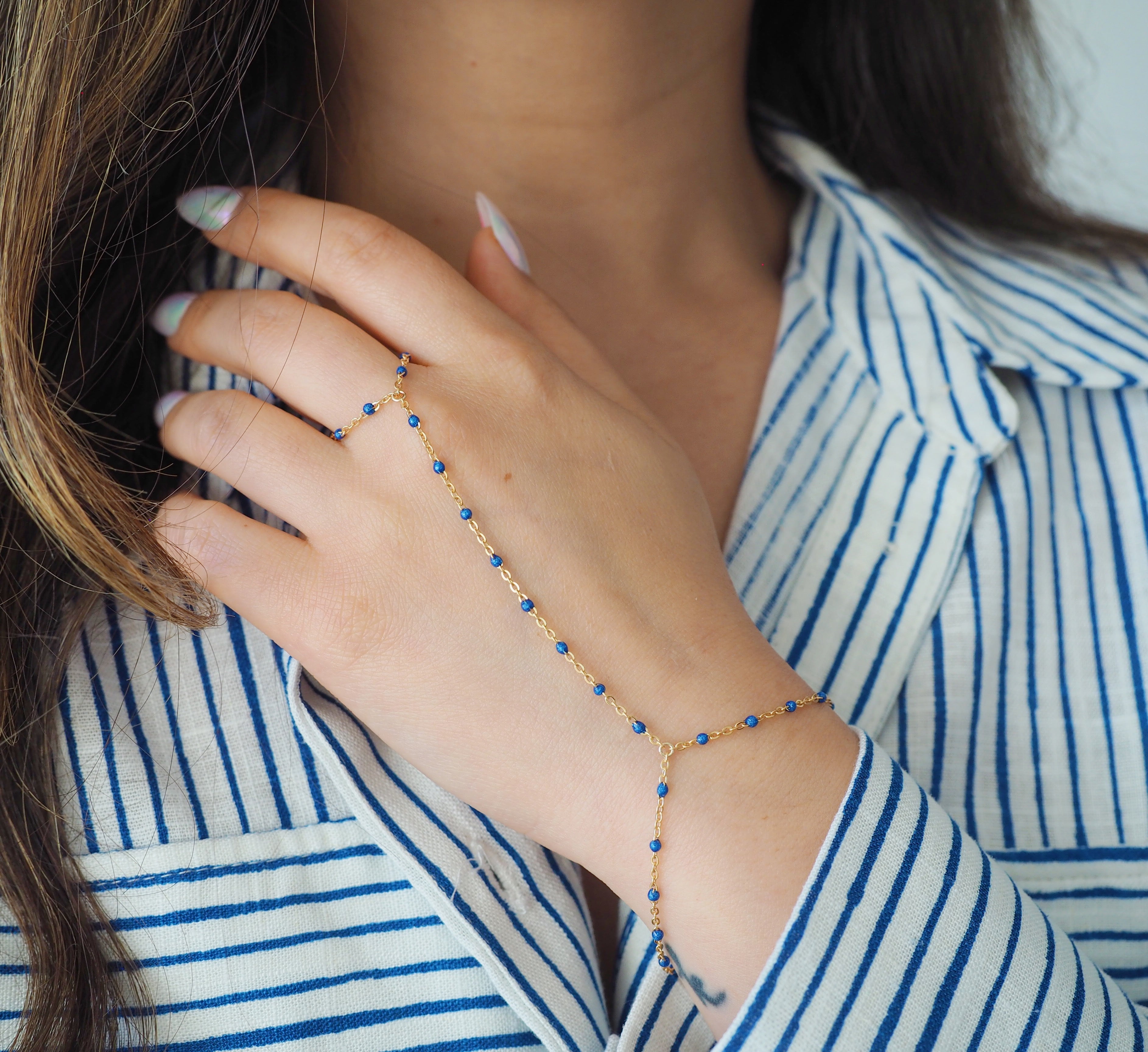 14k Gold Filled Sapphire Beaded Chain Hand Piece