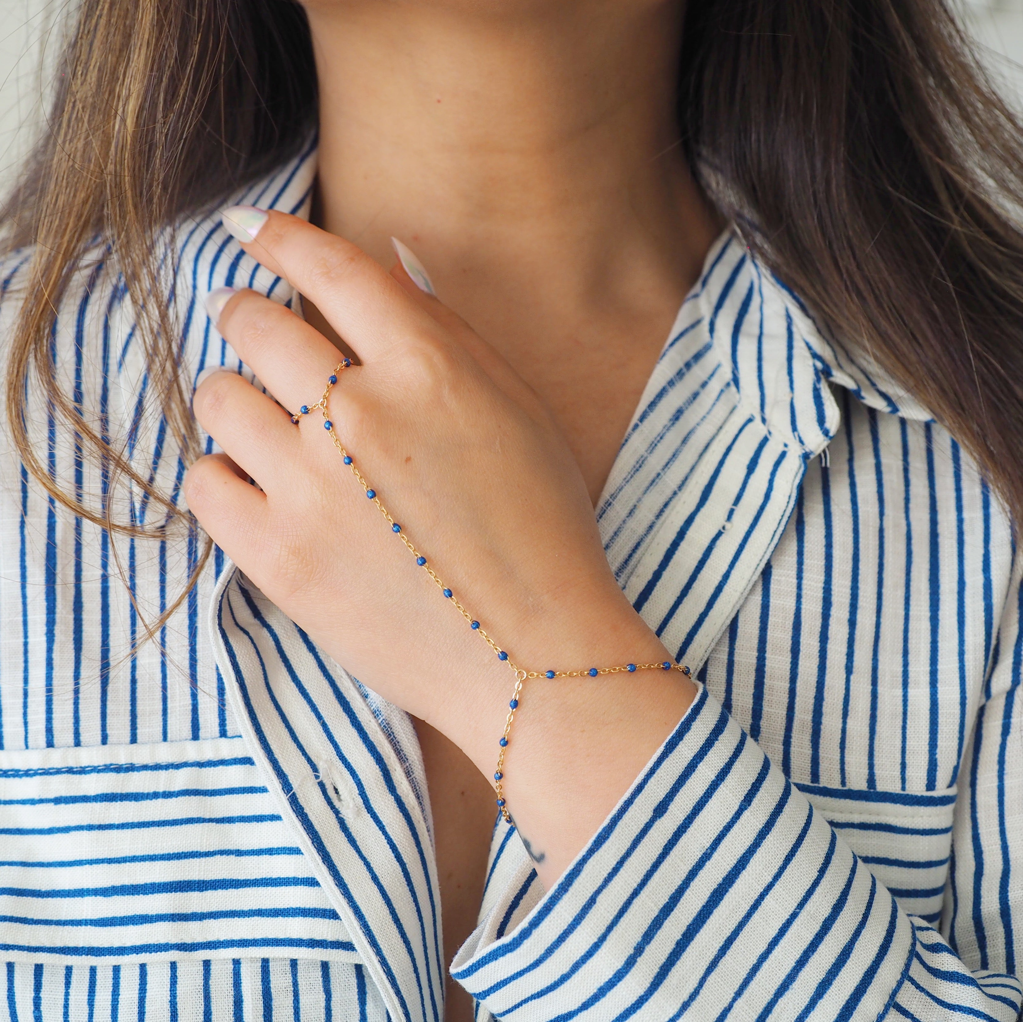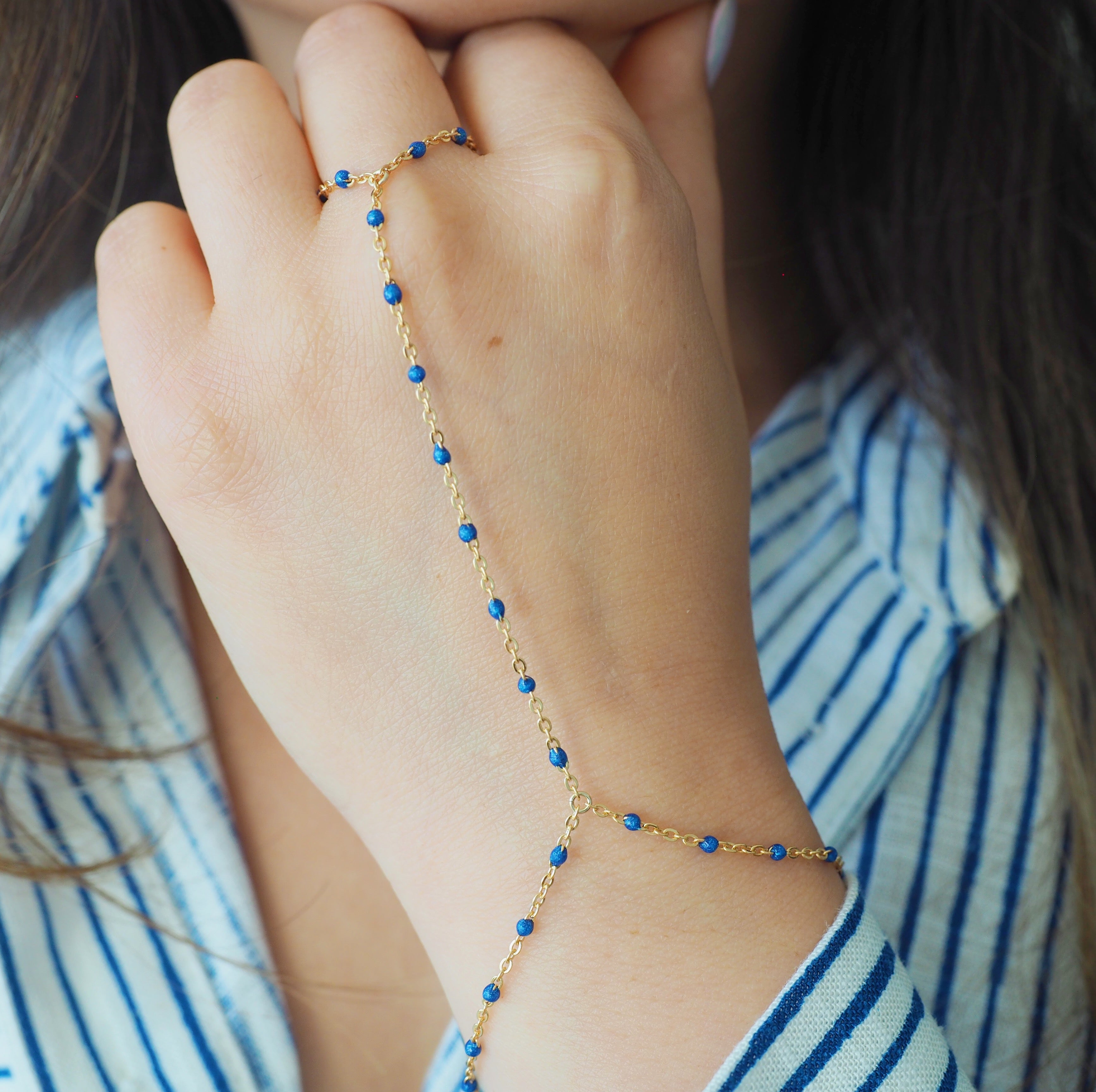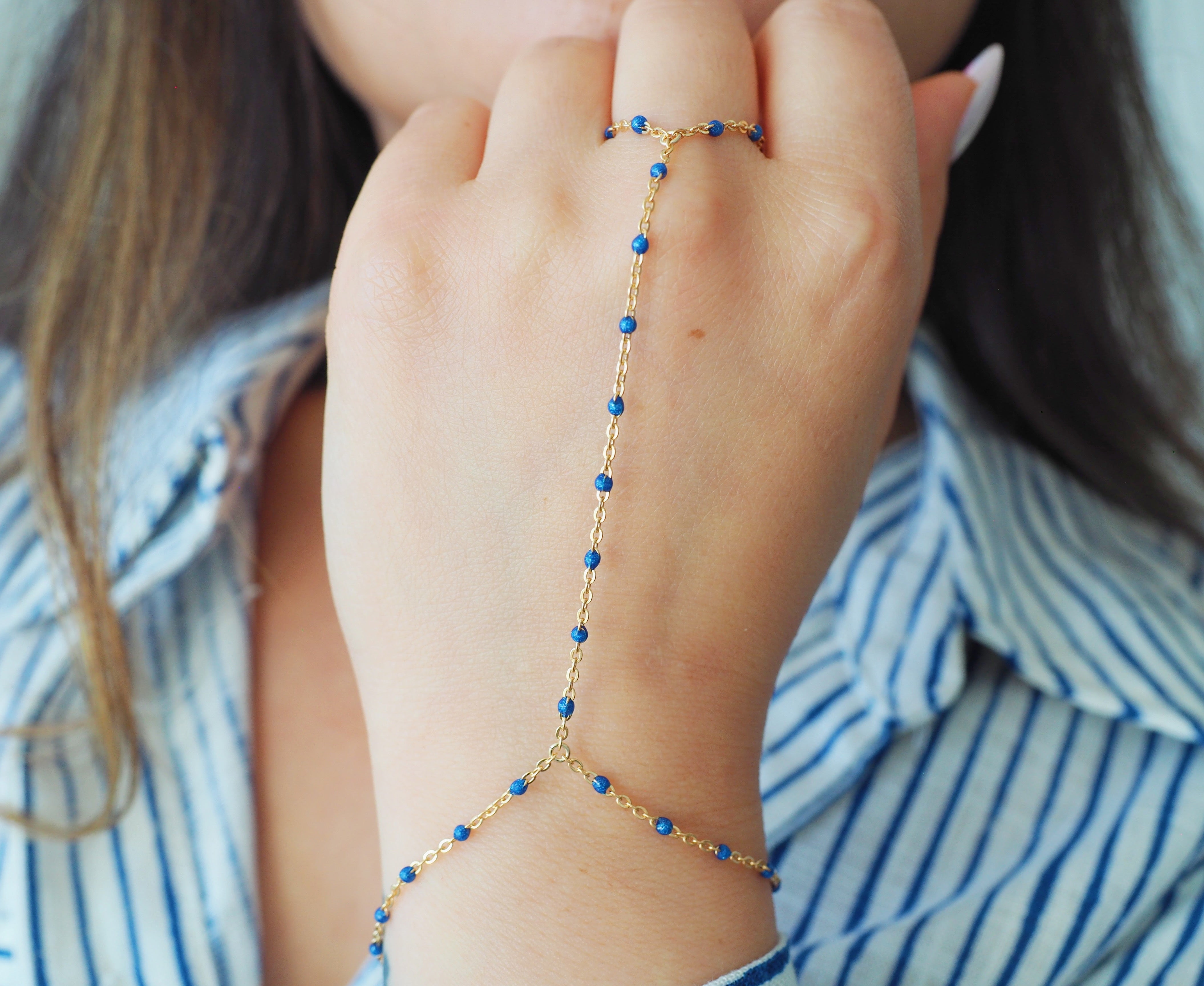 14k Gold Filled Sapphire Beaded Chain Hand Piece