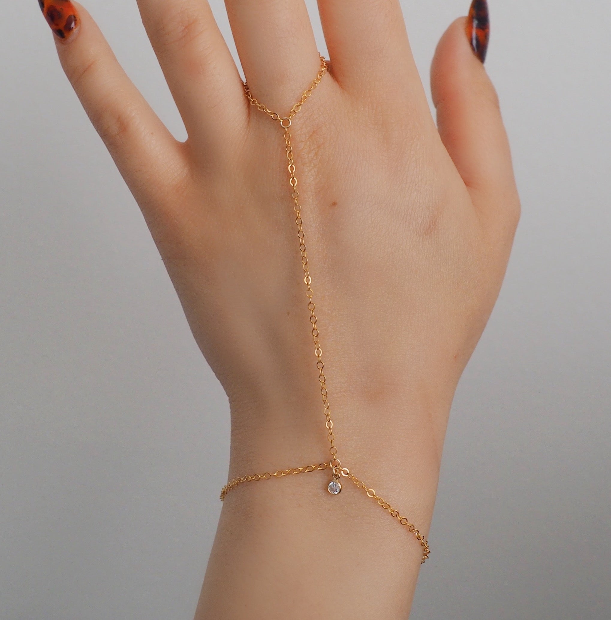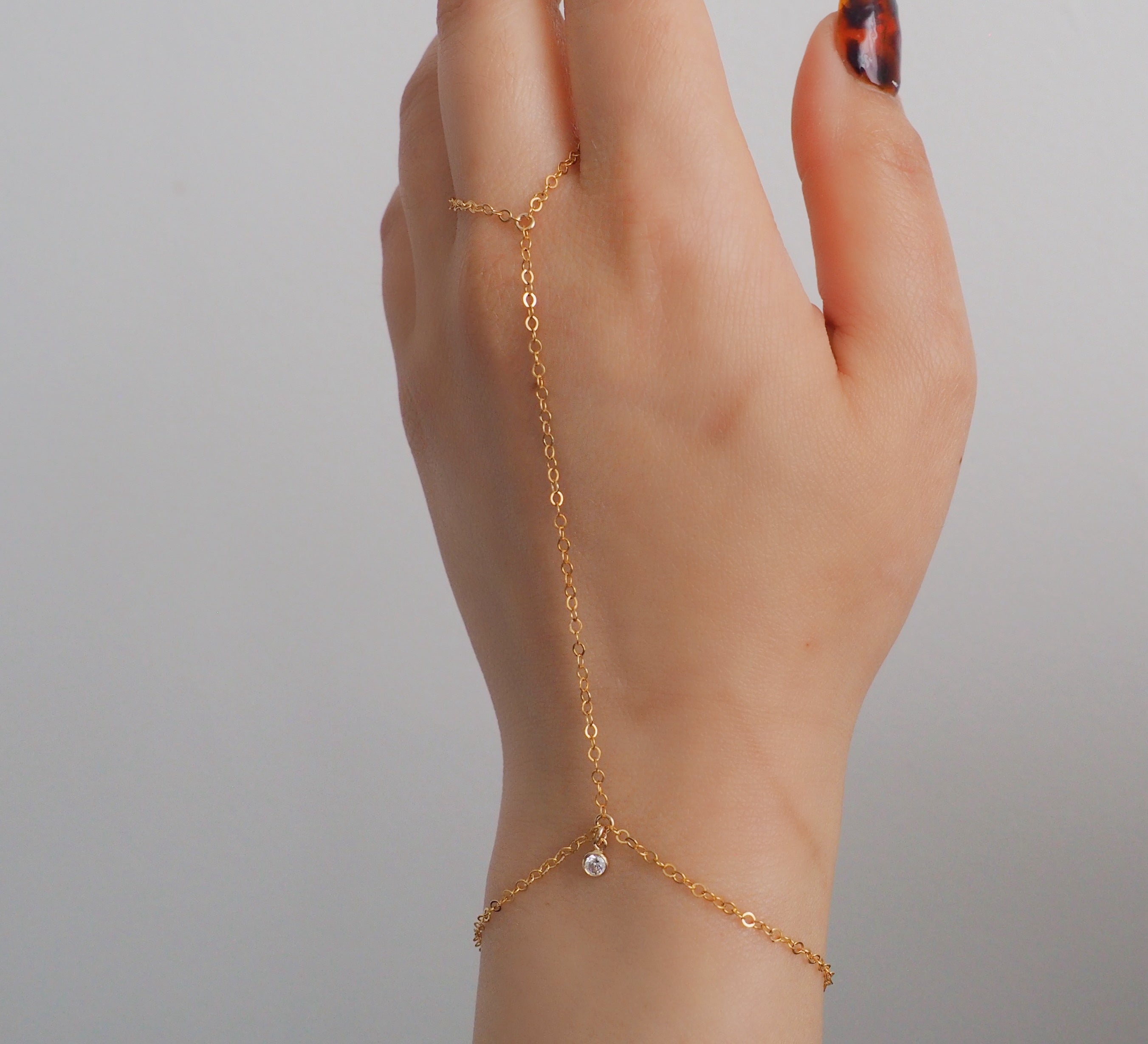 14k Gold Filled Tiny CZ DIAMOND Dainty Classic Hand Chain