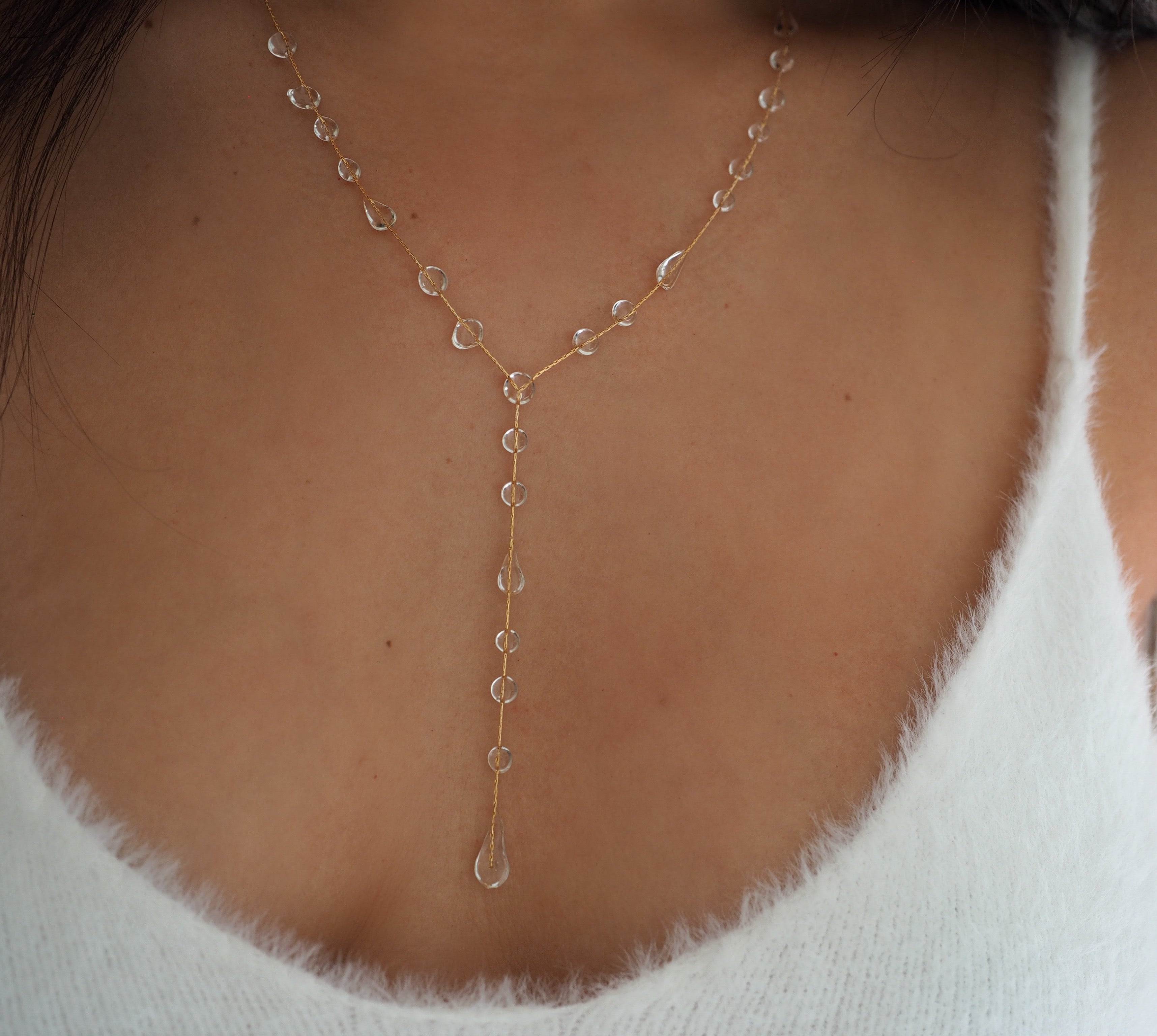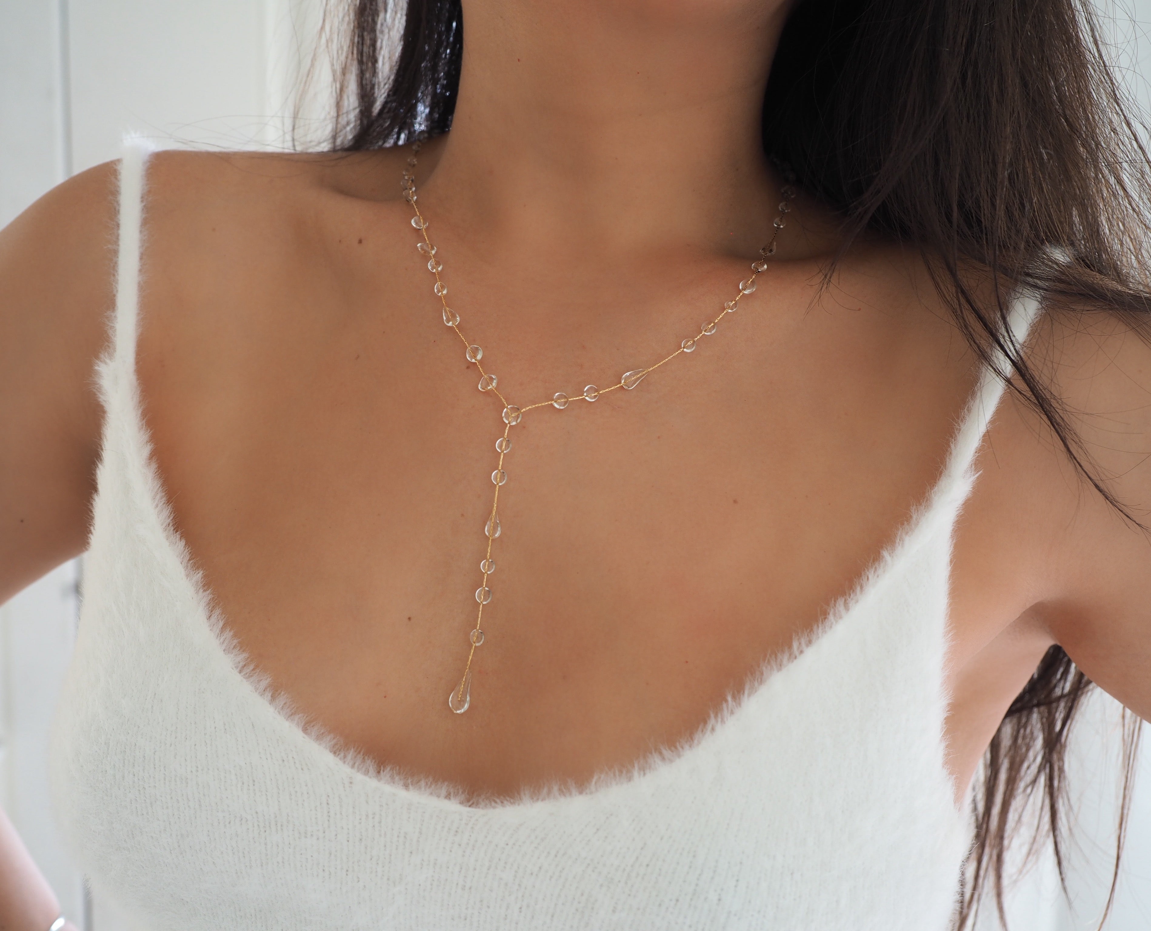 Dew Drop Raindrop Lariat Y Necklace 14k Gold Filled