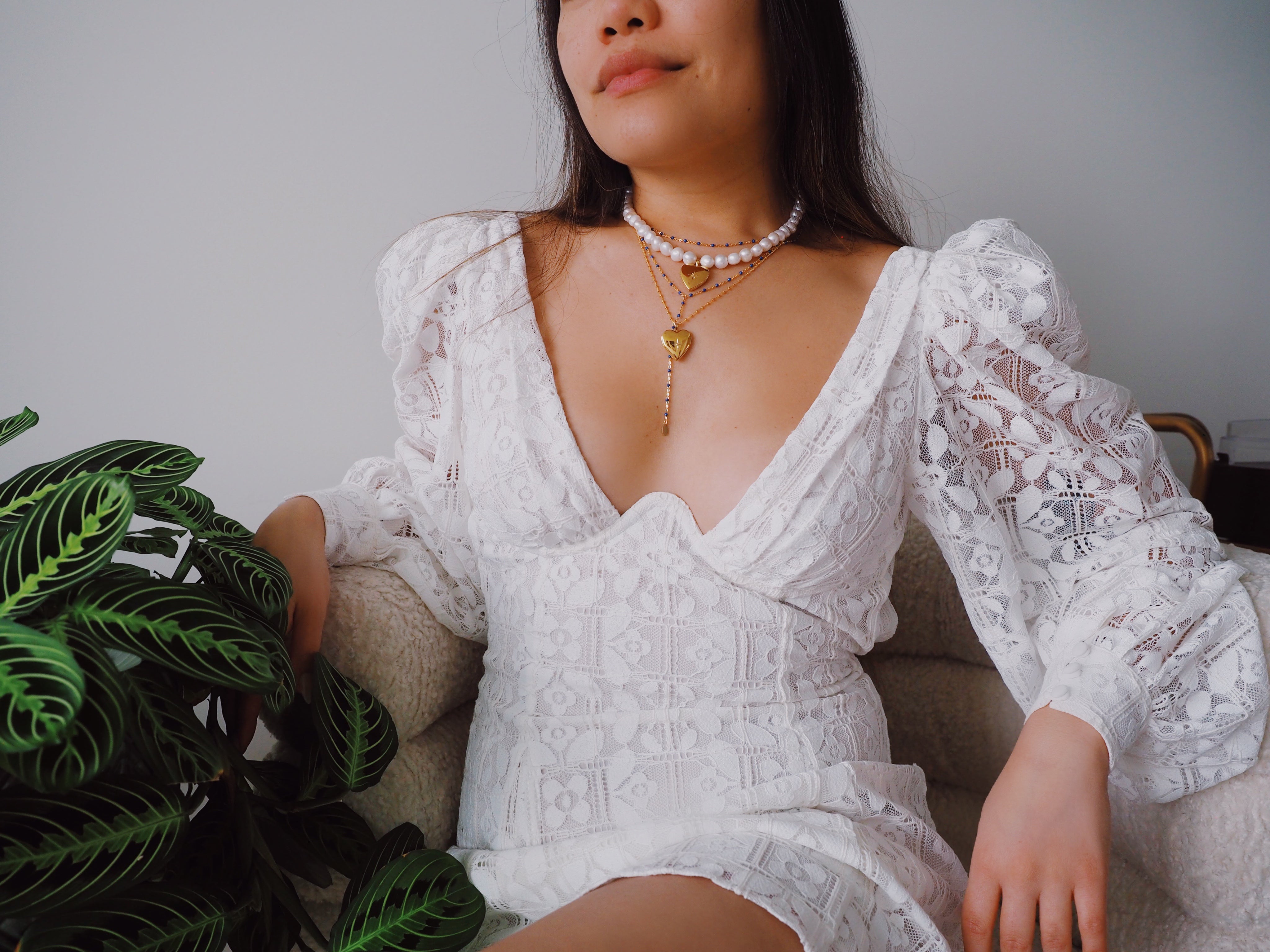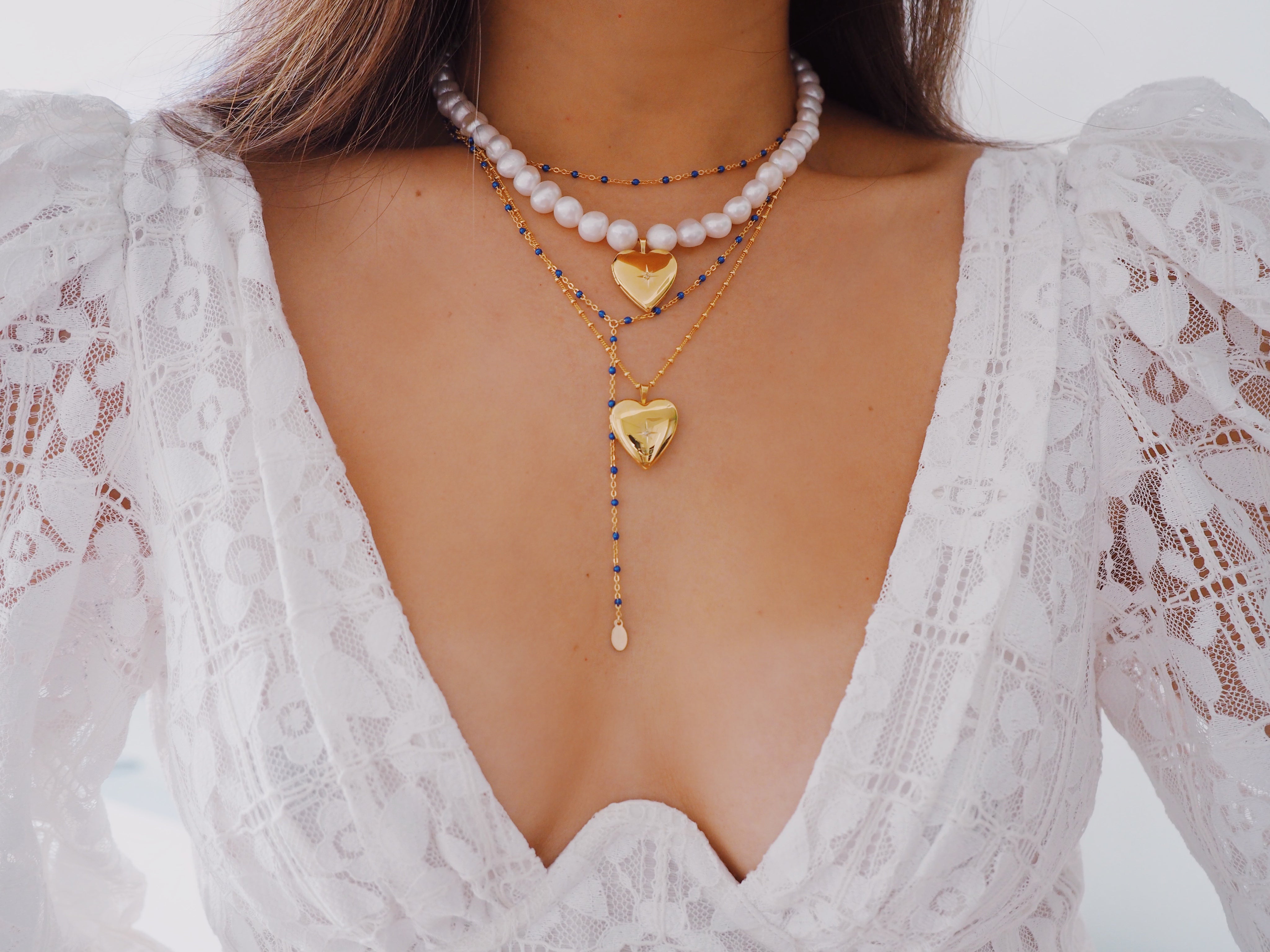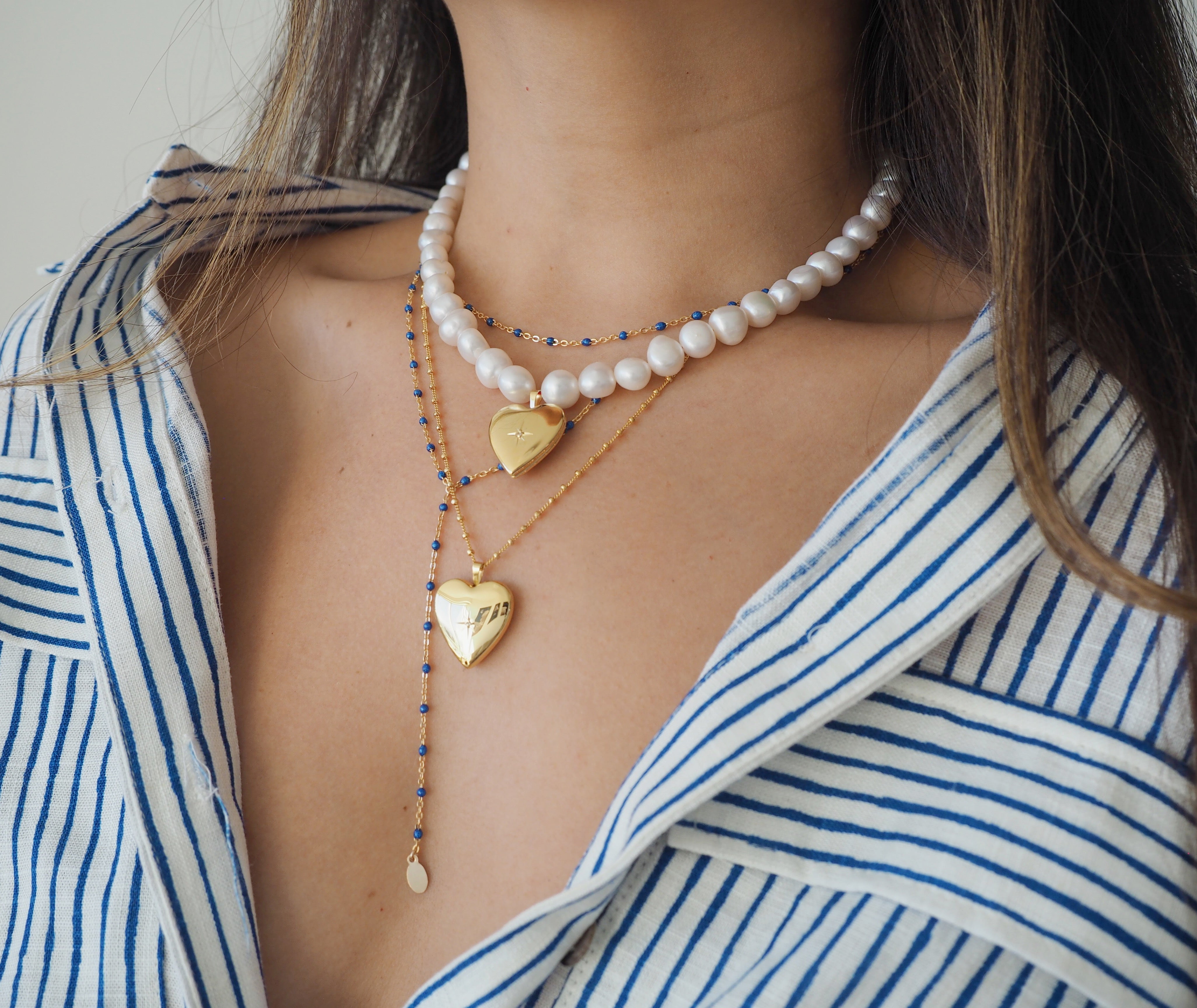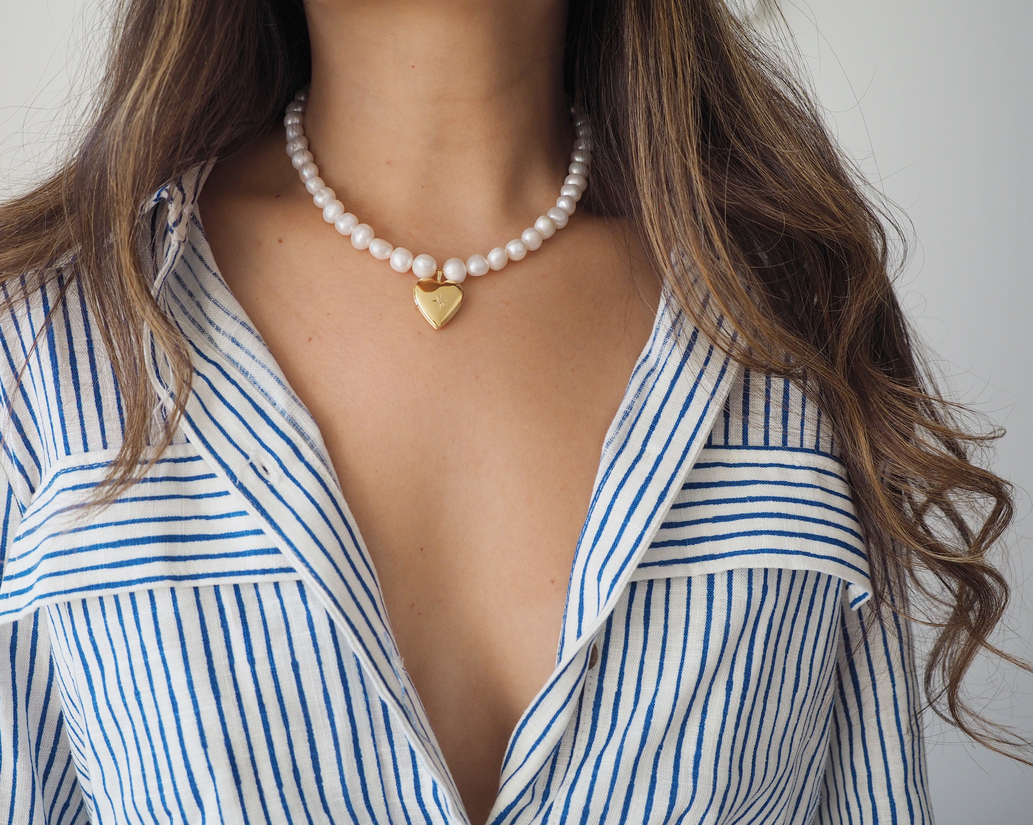 Freshwater Pearl and 14k Gold Filled Heart Starburst Locket Necklace